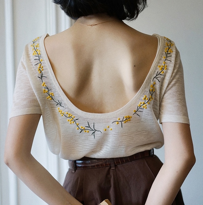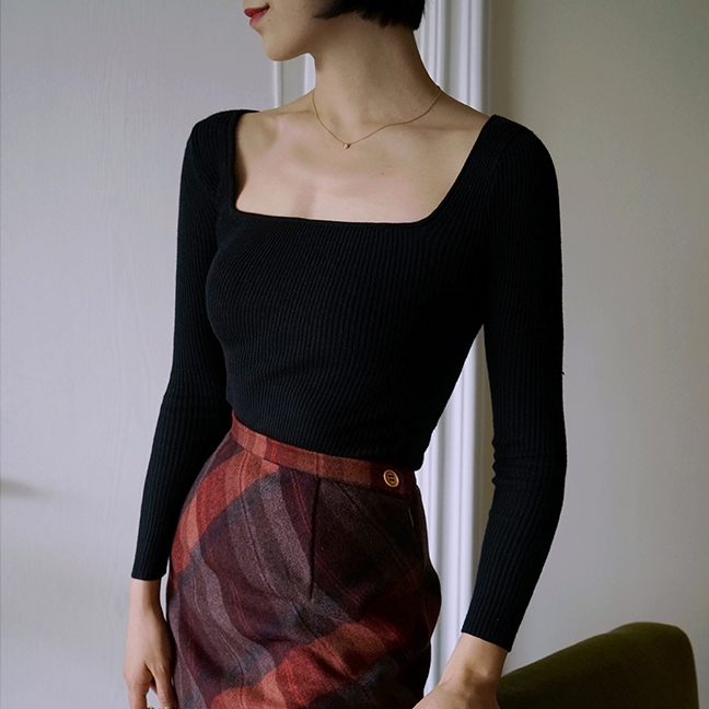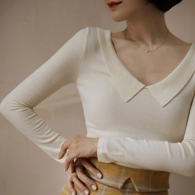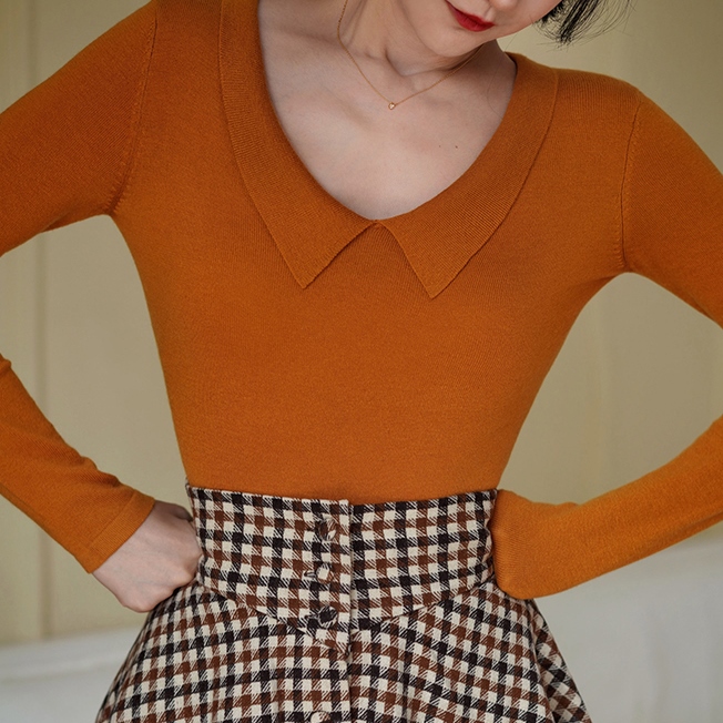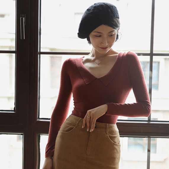 Ching's Closet V-Neck Retro Knit Long Sleeve Top
