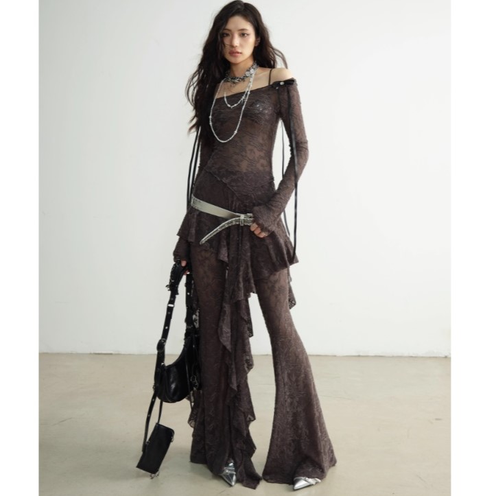 JNYLON Brown Halterneck Vest + Irregular Skirt Set