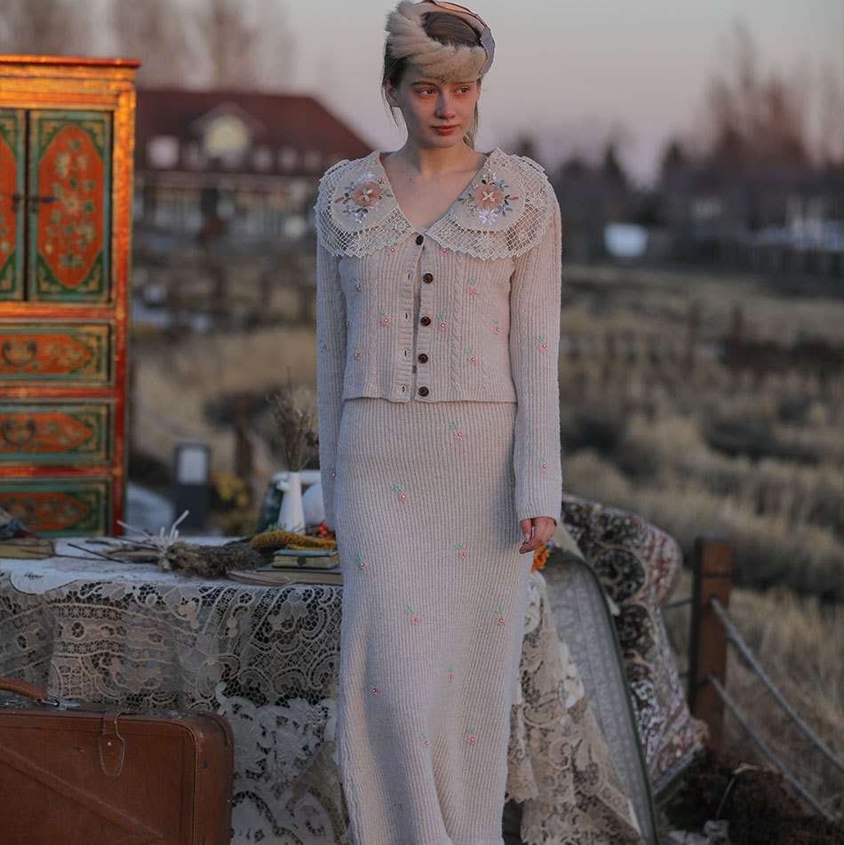 Lianer Art Brown Sequined 2Piece Skirt Set