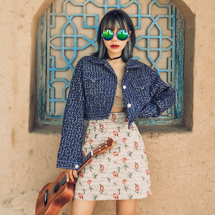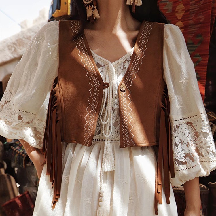 Mai Xu Western Cowboy Style Blue Embroidered Vest