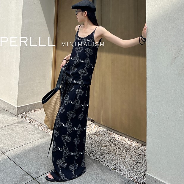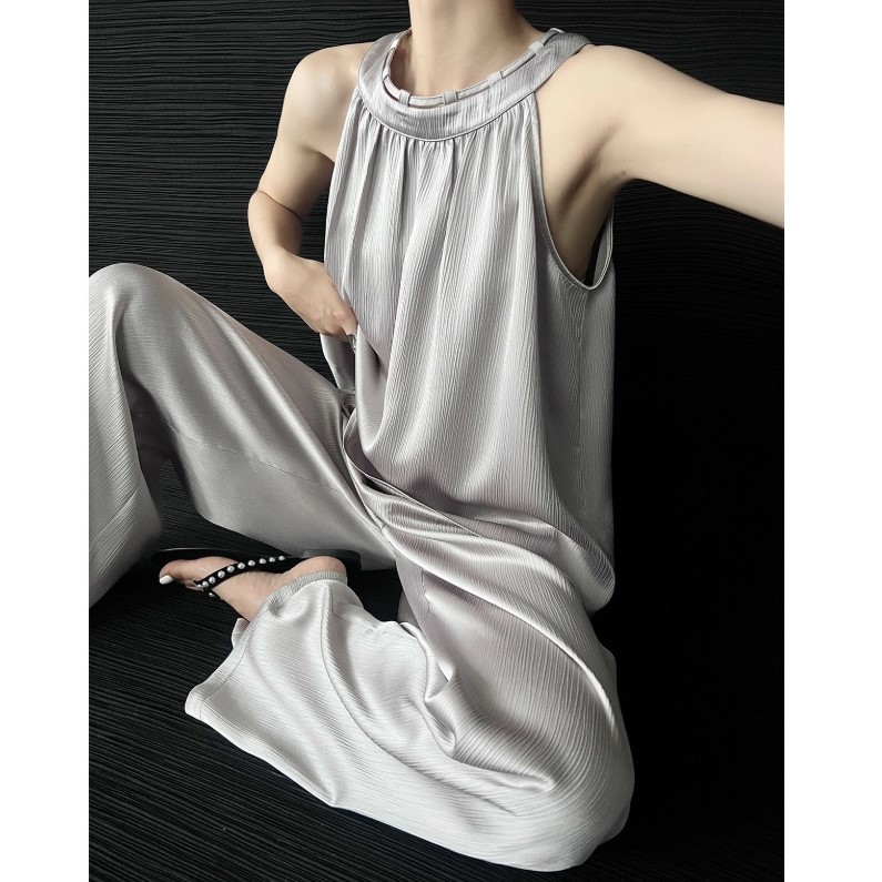 PAPERLLL Backless Strap Top With Wide-Leg Pants Black Set