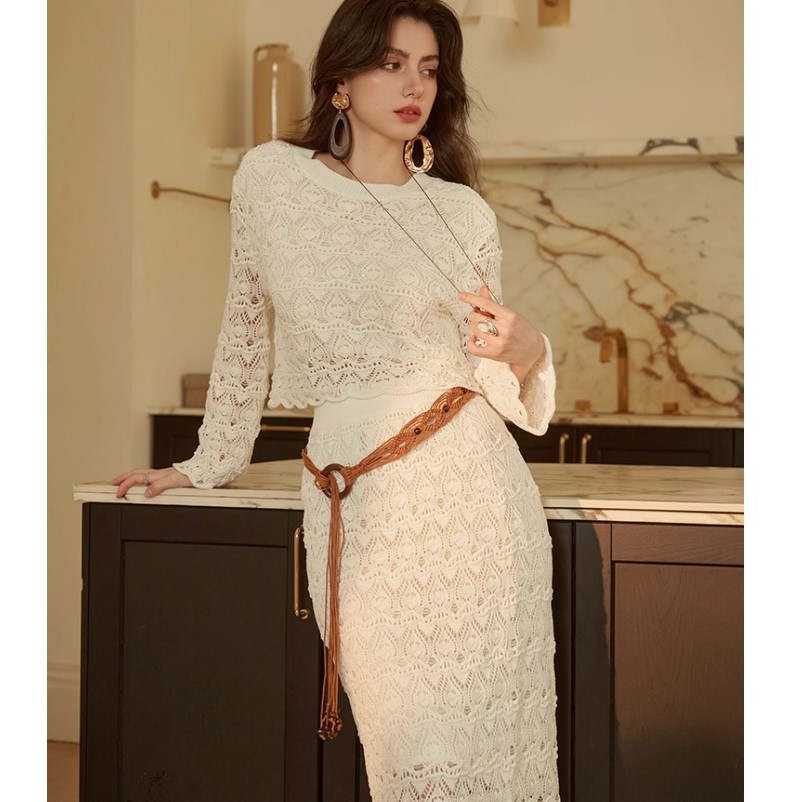 ReVe Bohemian Crochet Knitted Skirt Set