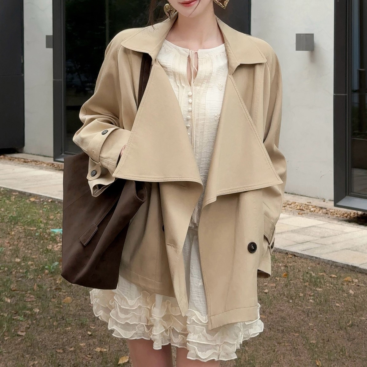 XIAOLI Beige Short Trench Coat