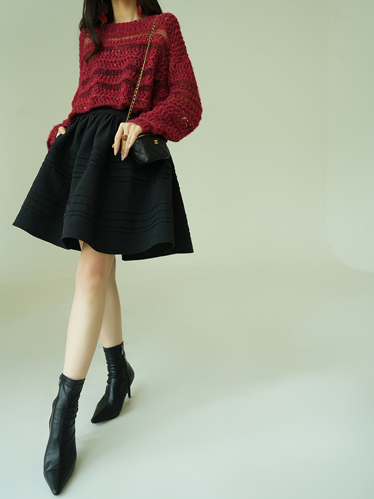 fabric: 7% wool 4% sequins 16% acrylic 35% nylon 38% polyester