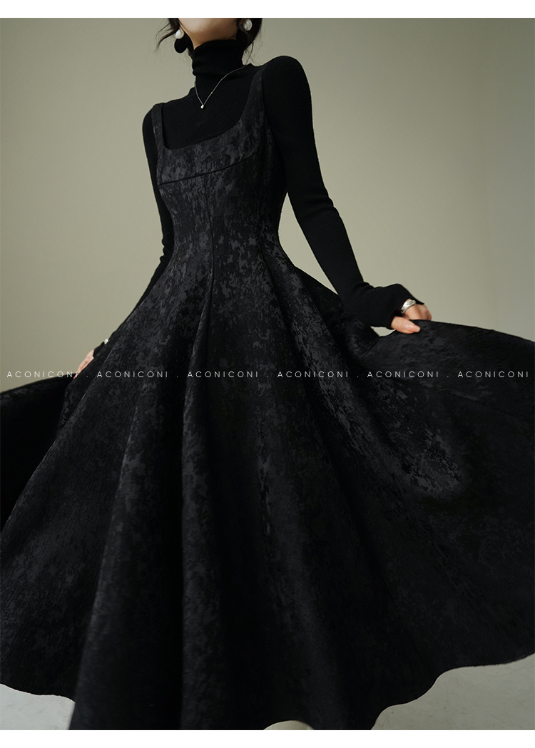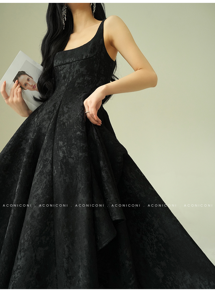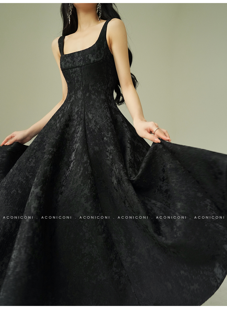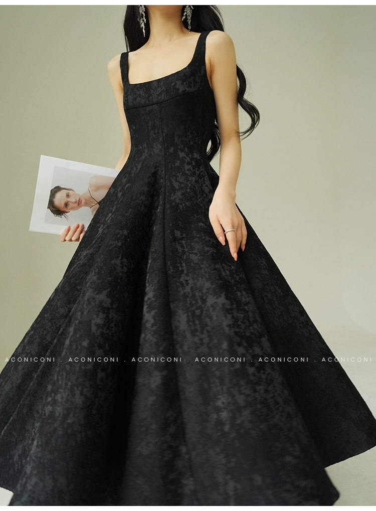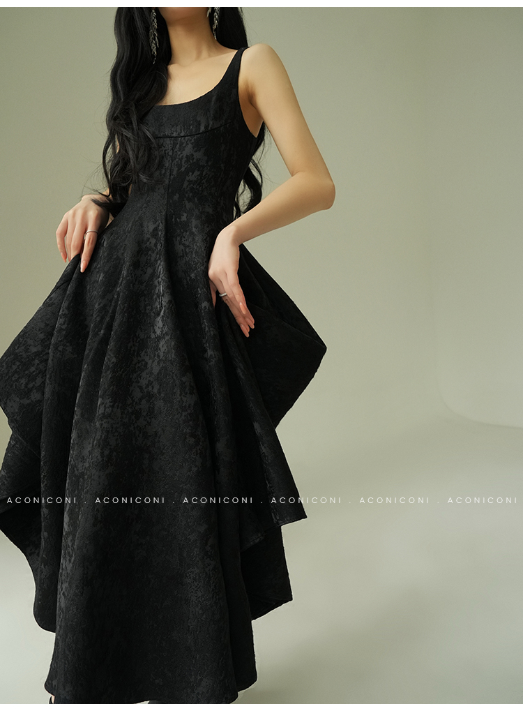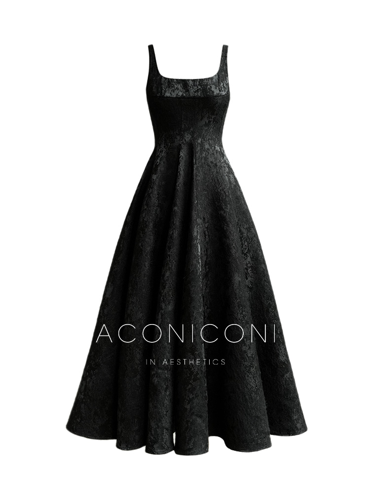 Aconiconi Black A-Line Long Dress