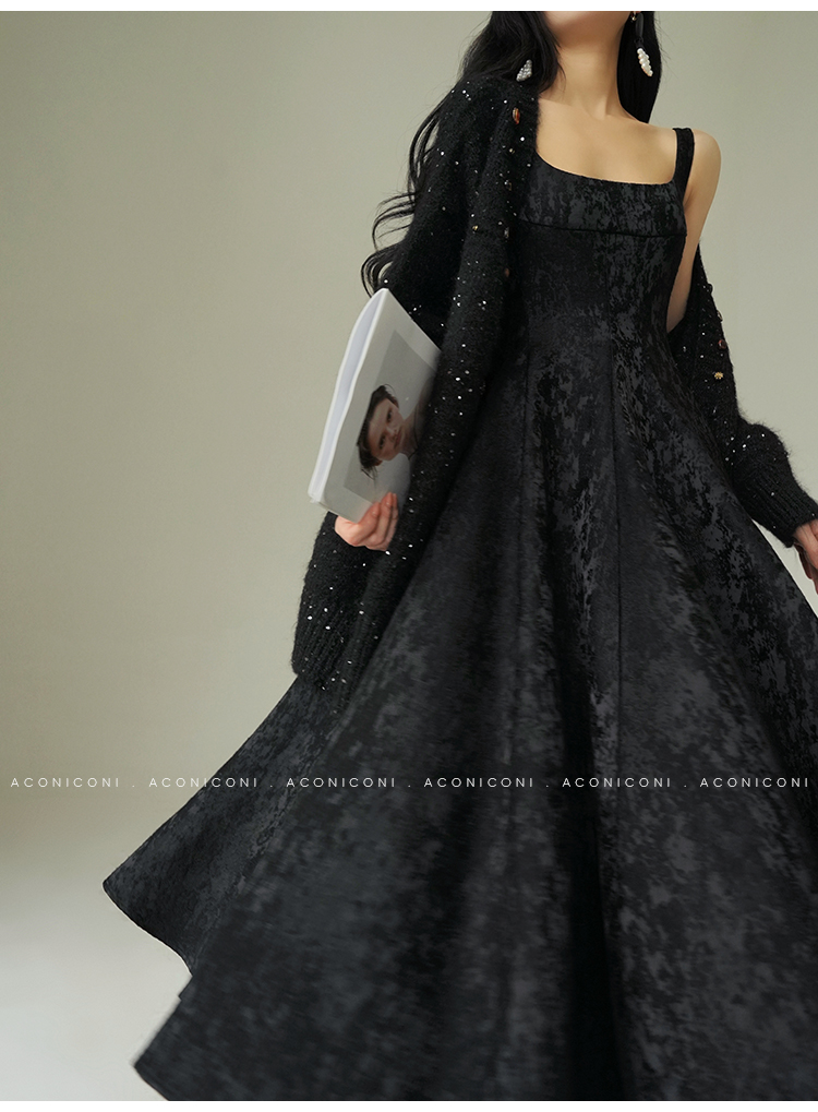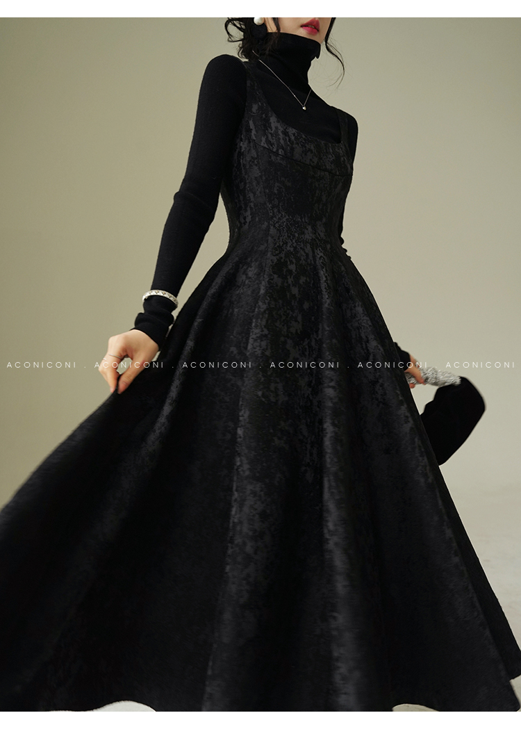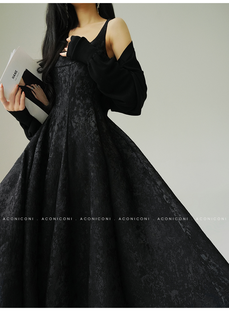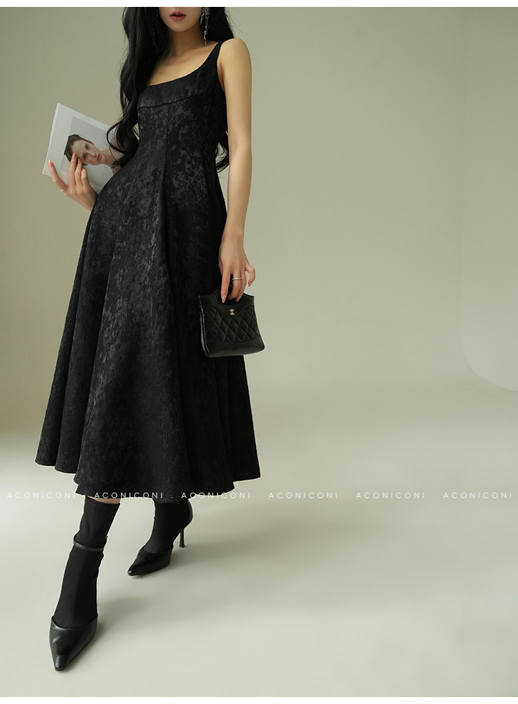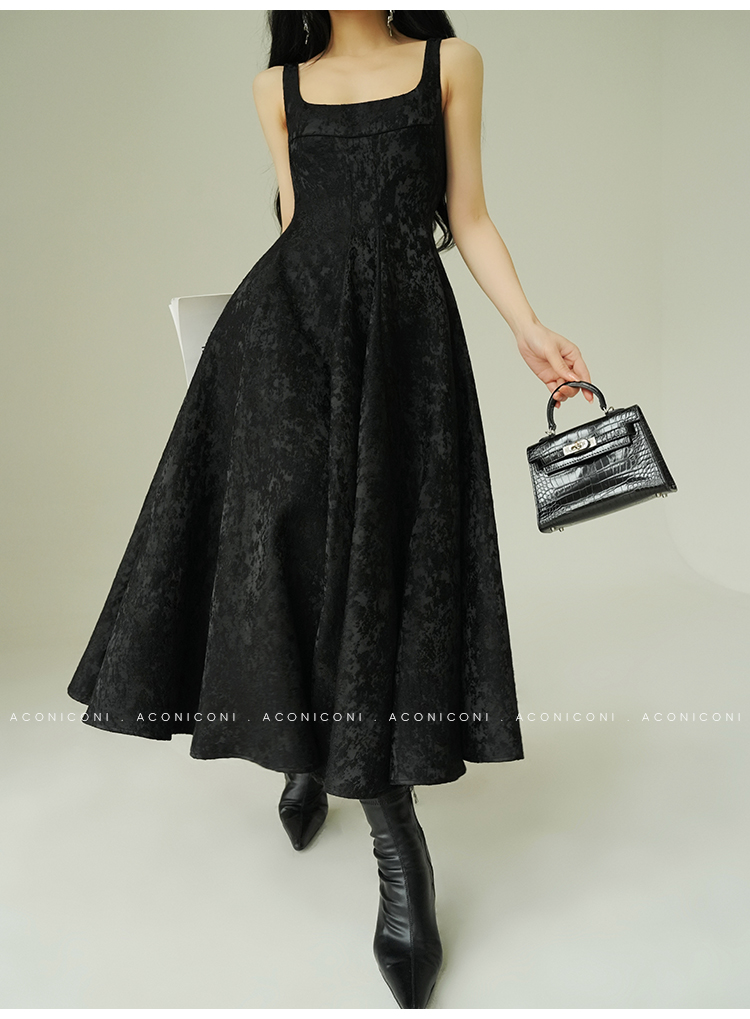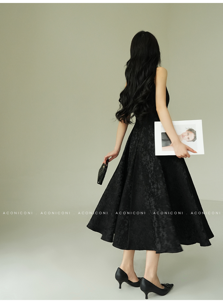Aconiconi Black A-Line Long Dress