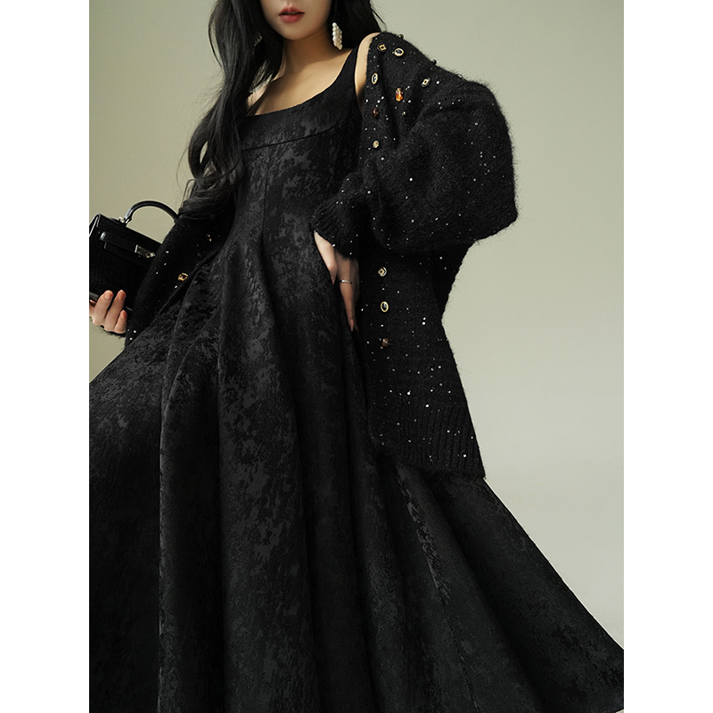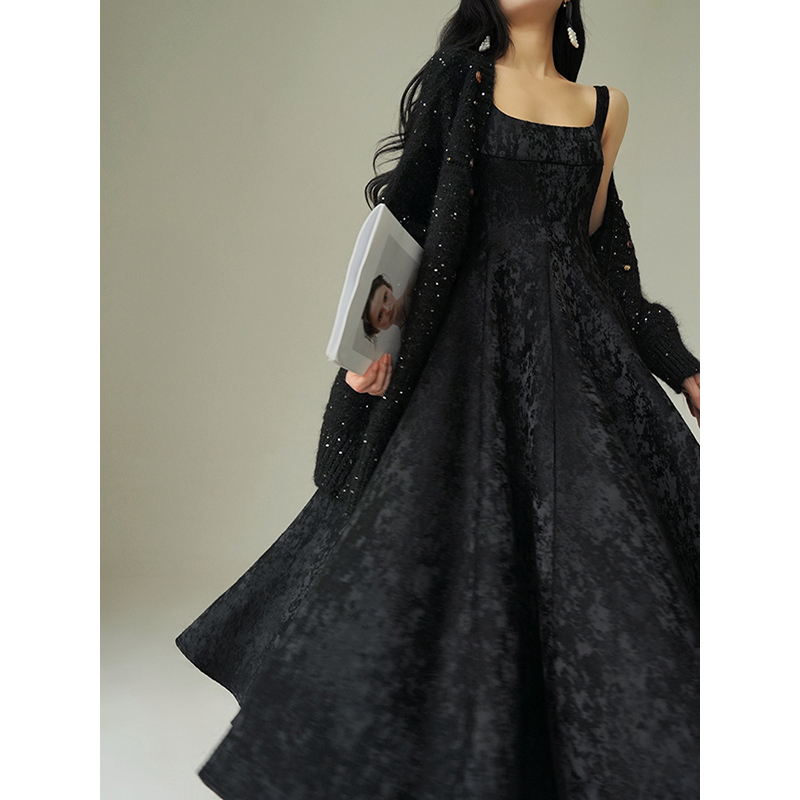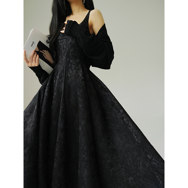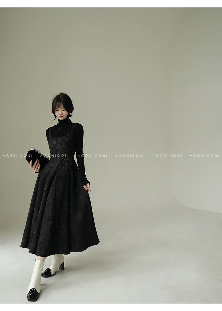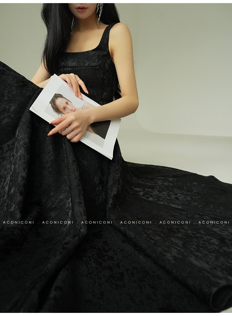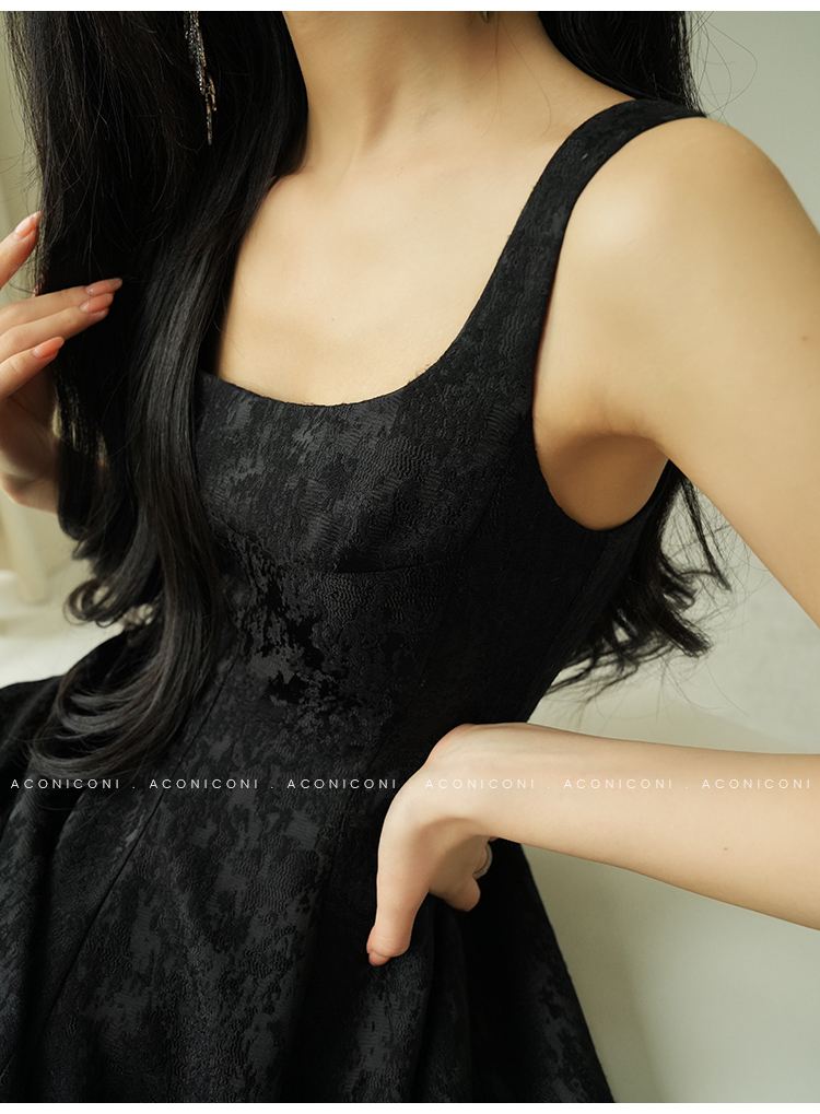 Aconiconi Black A-Line Long Dress