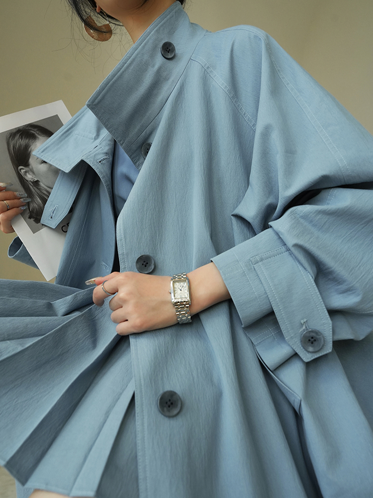 Aconiconi Blue Trench Coat With Pleated Skirt Set