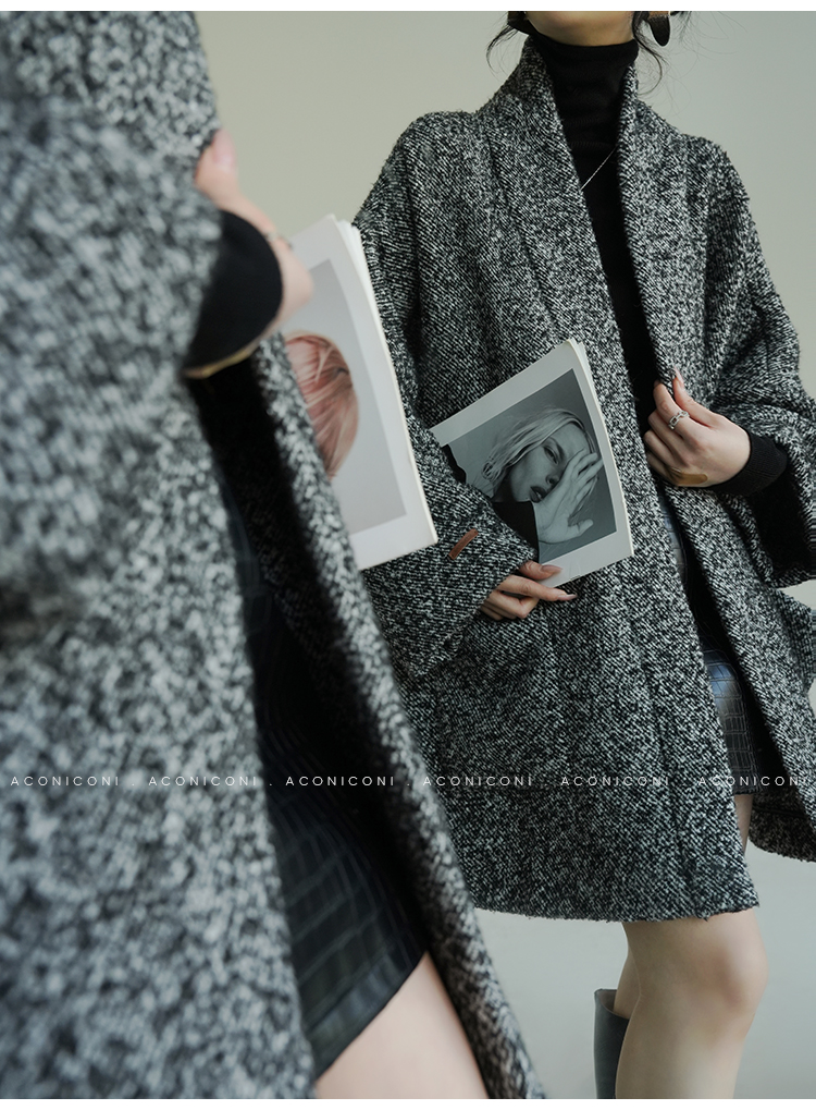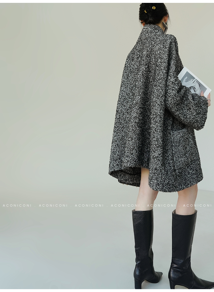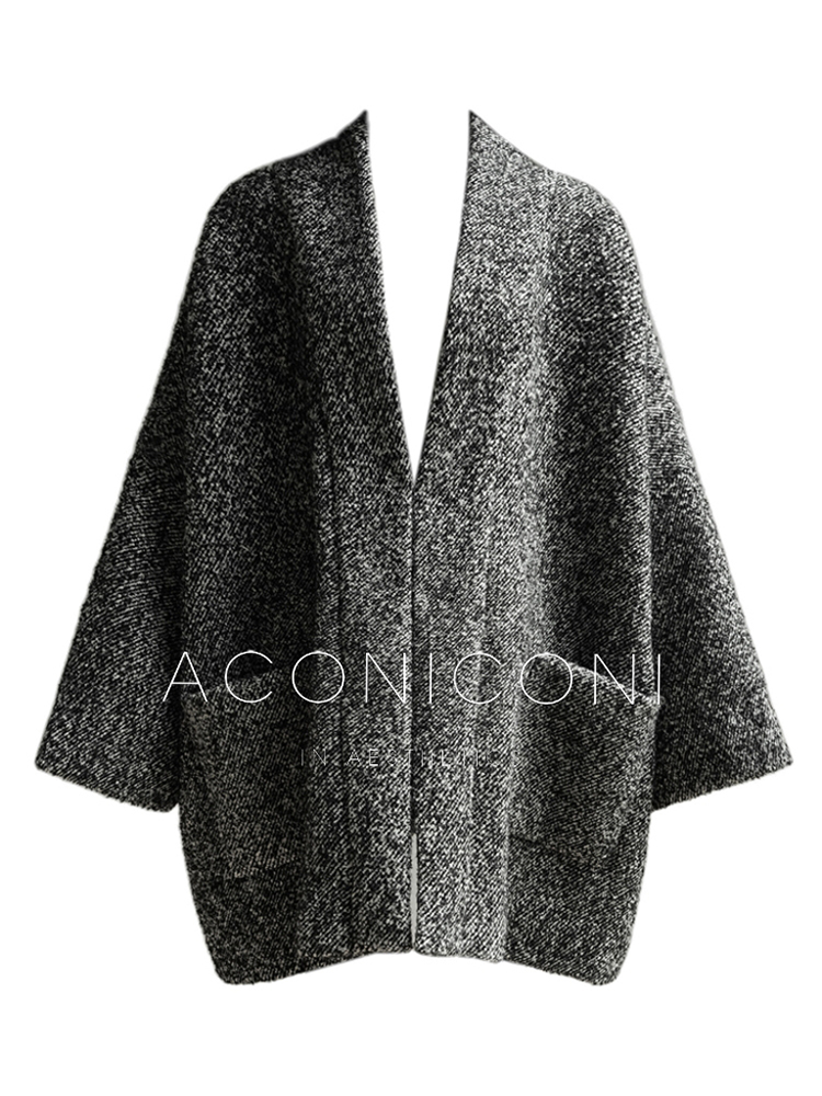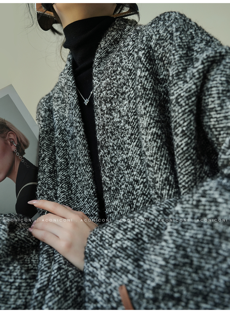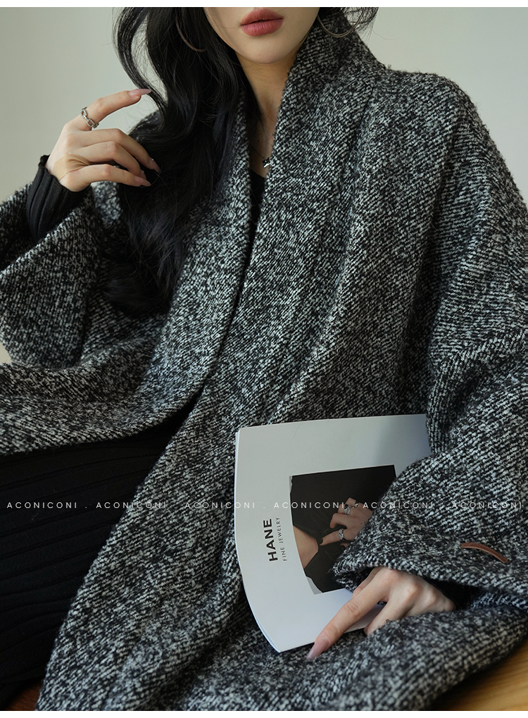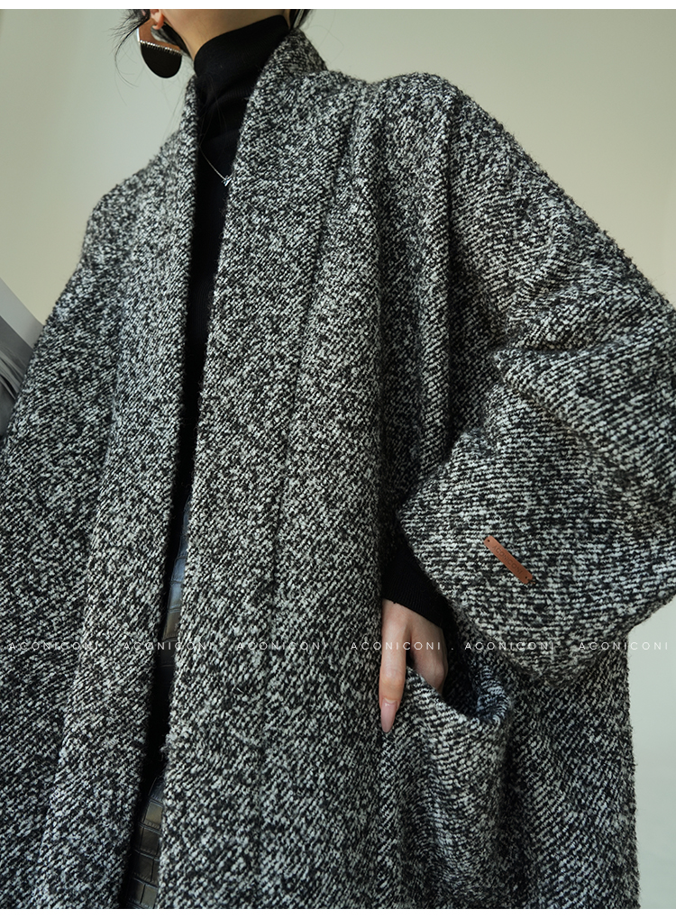 Aconiconi Grey Old Money Style Coat