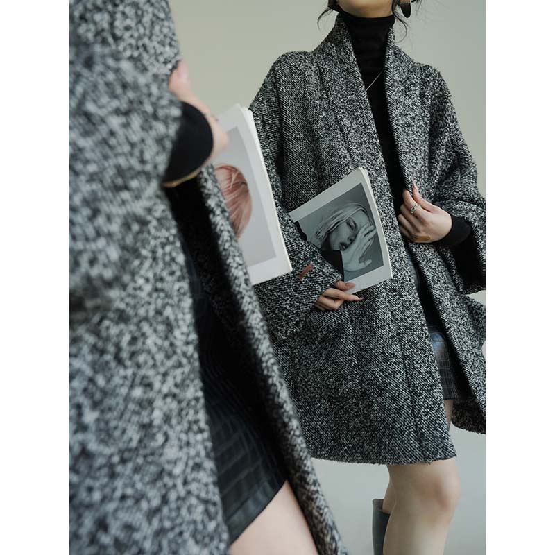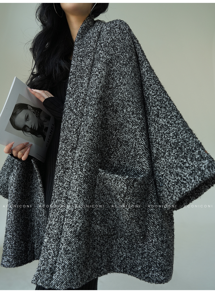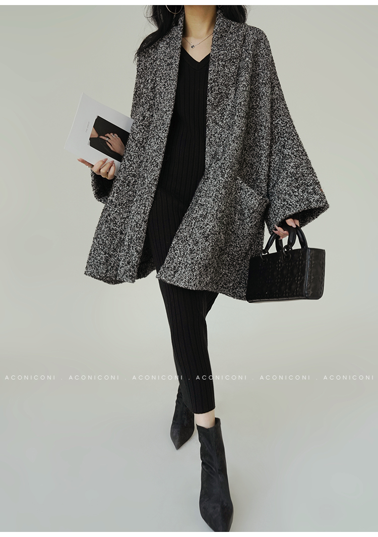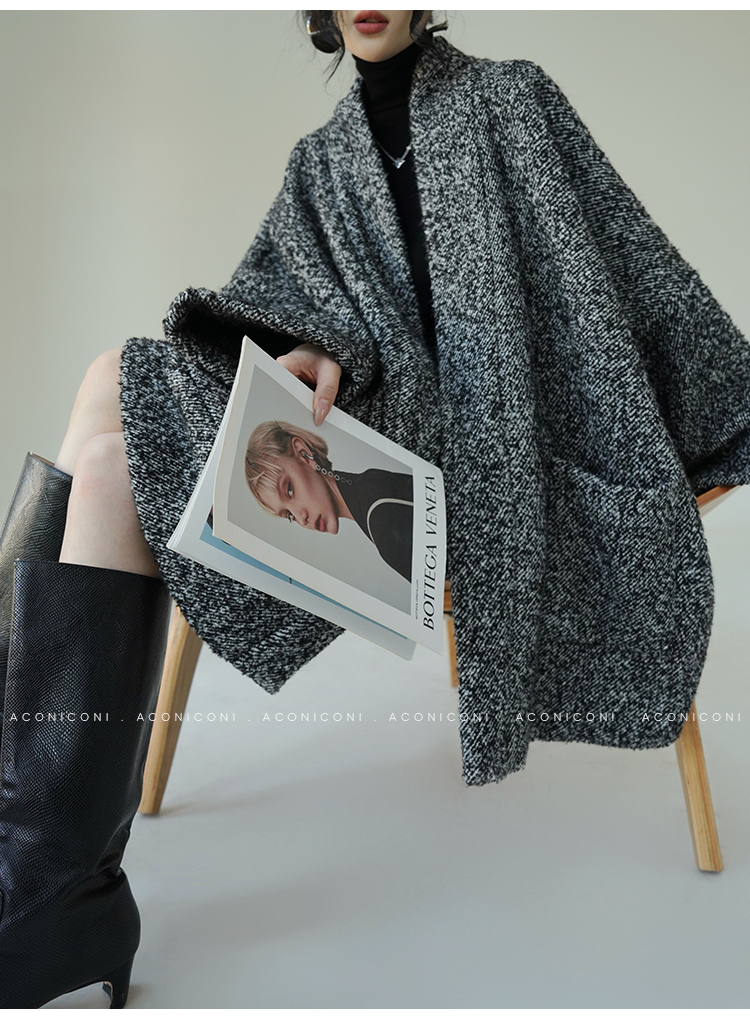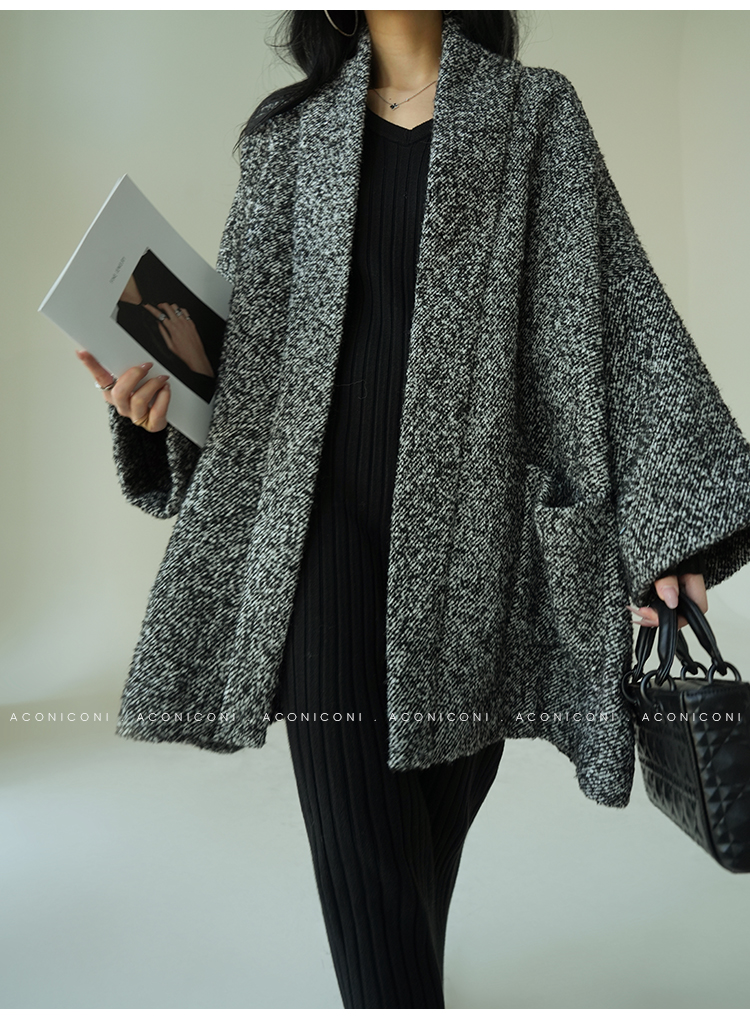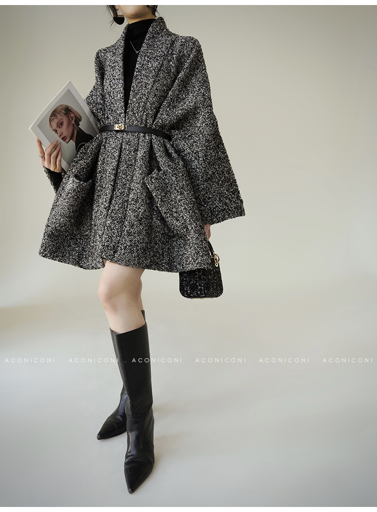 Aconiconi Grey Old Money Style Coat