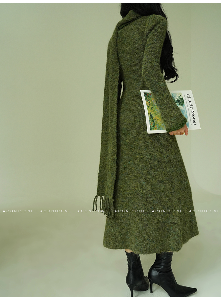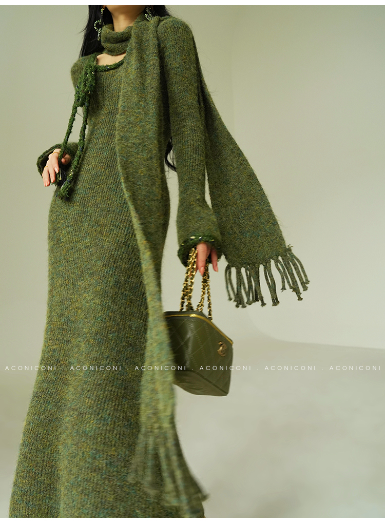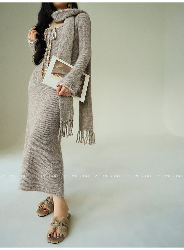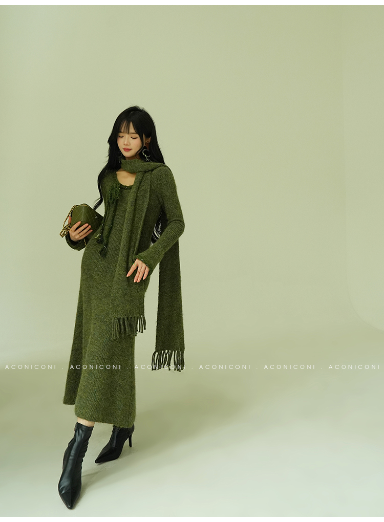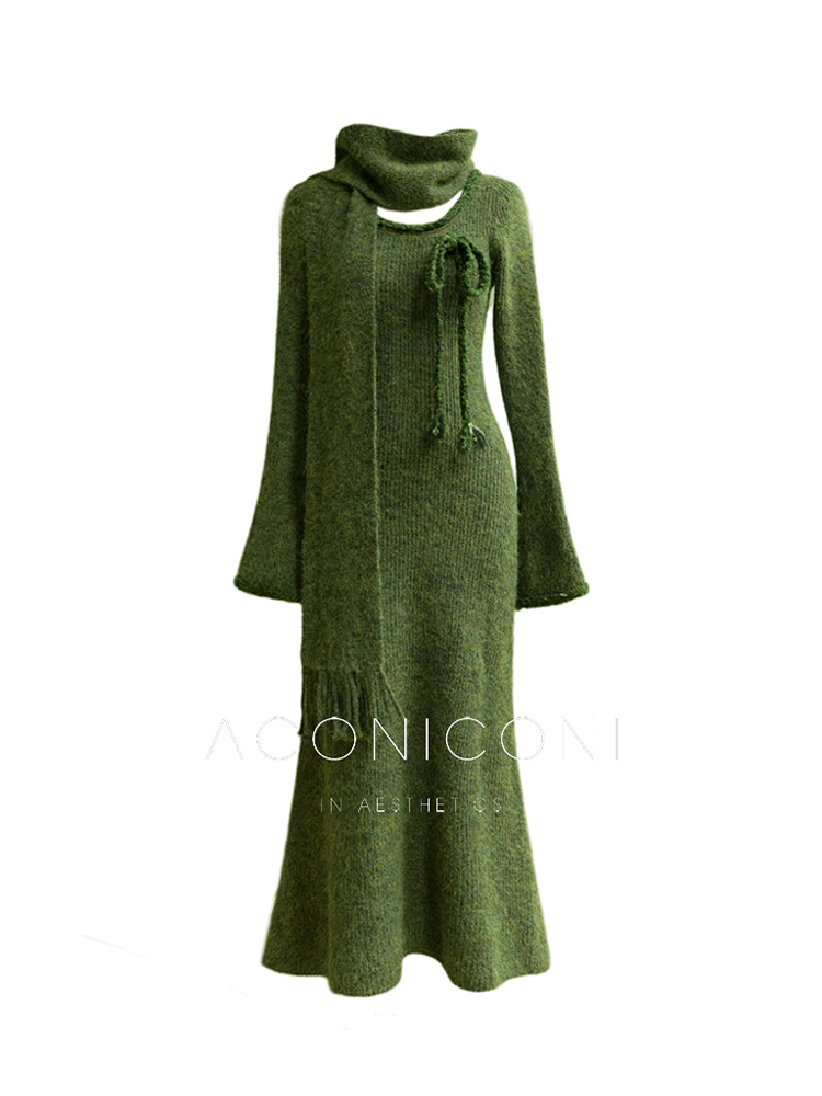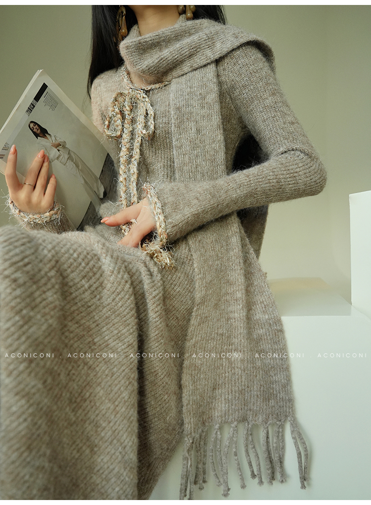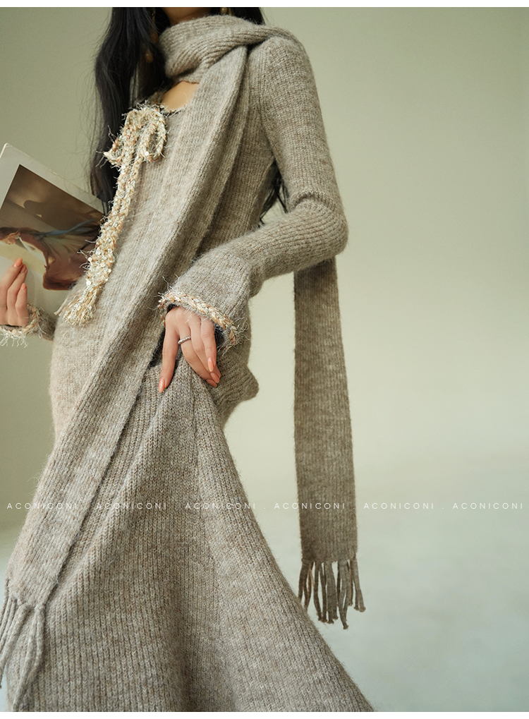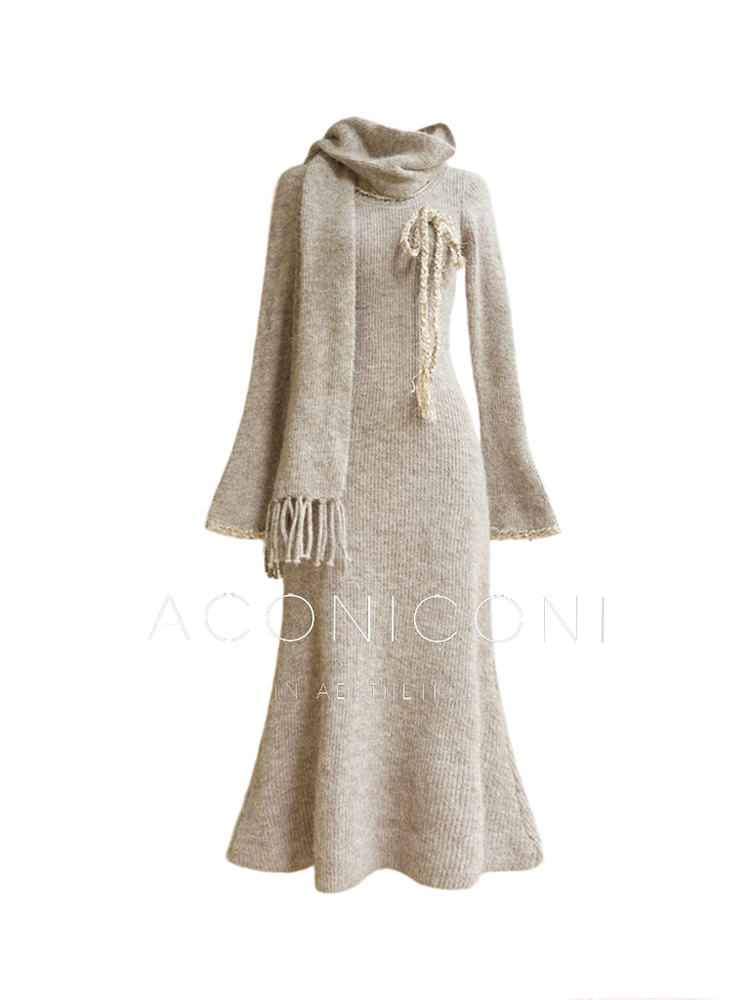 Aconiconi Knitted Dress With Scarf