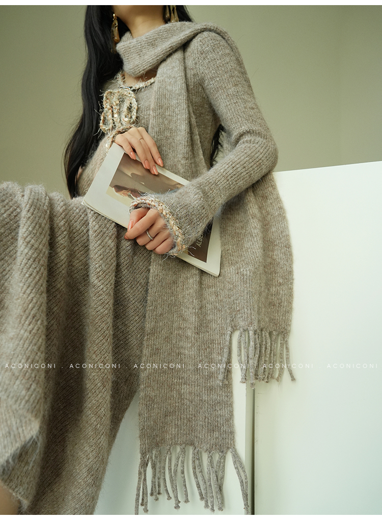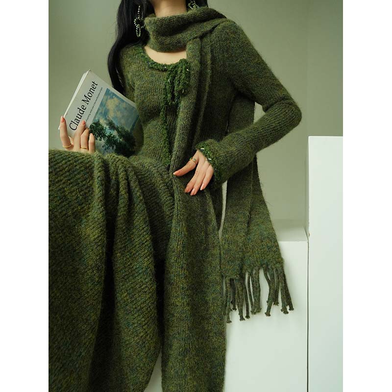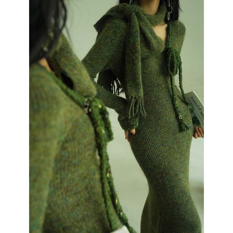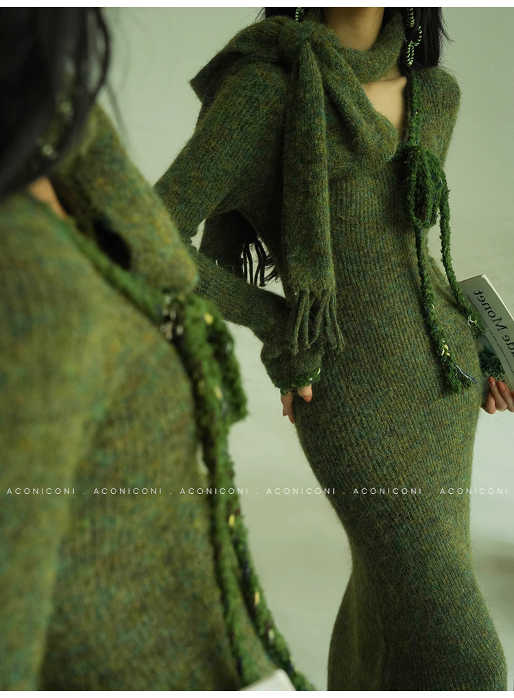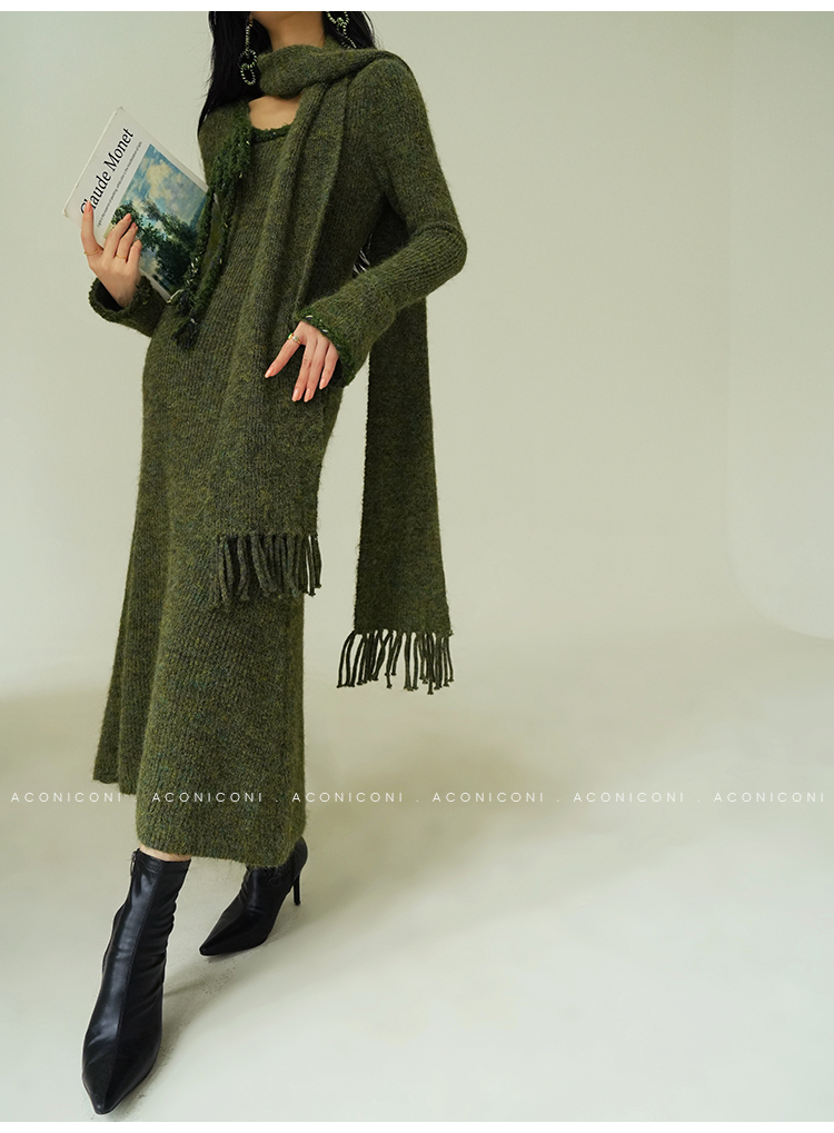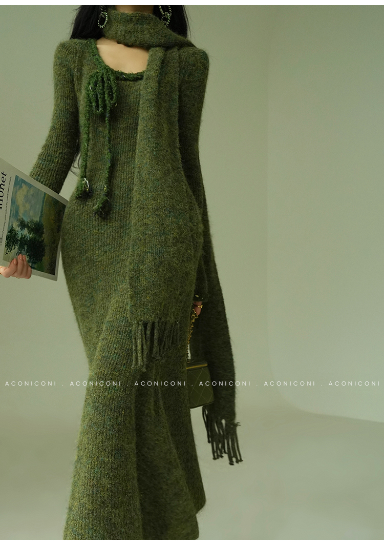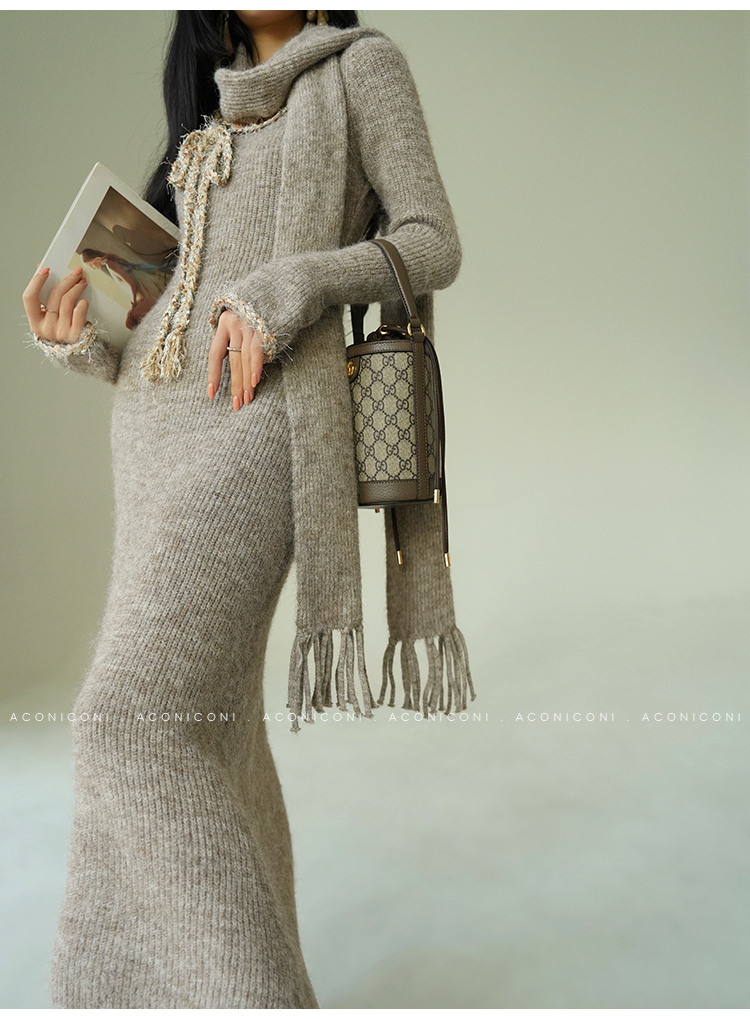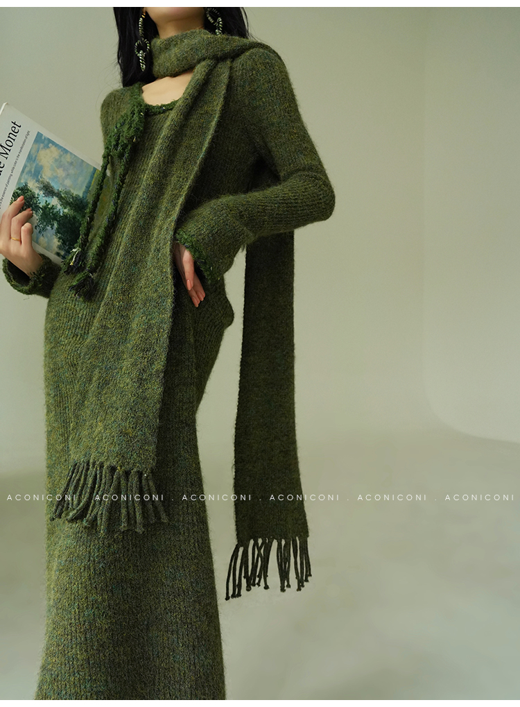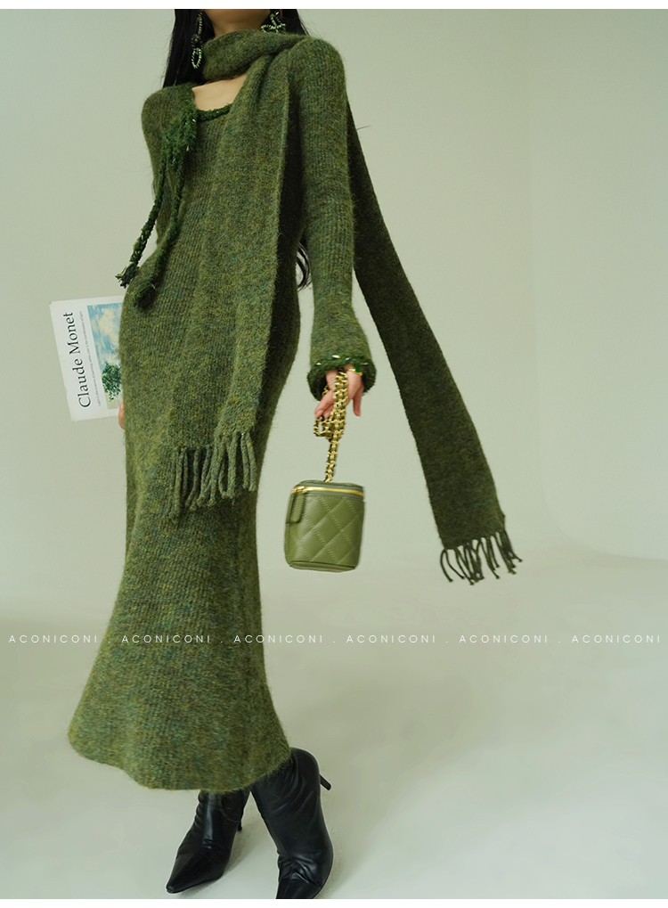 Aconiconi Knitted Dress With Scarf