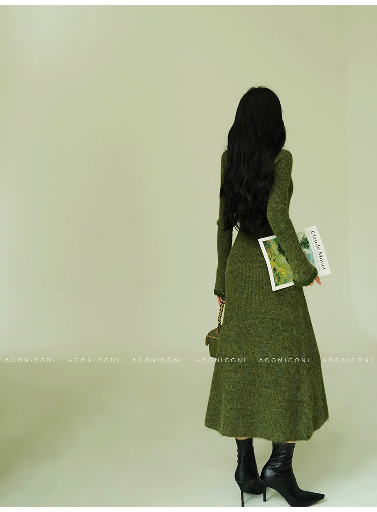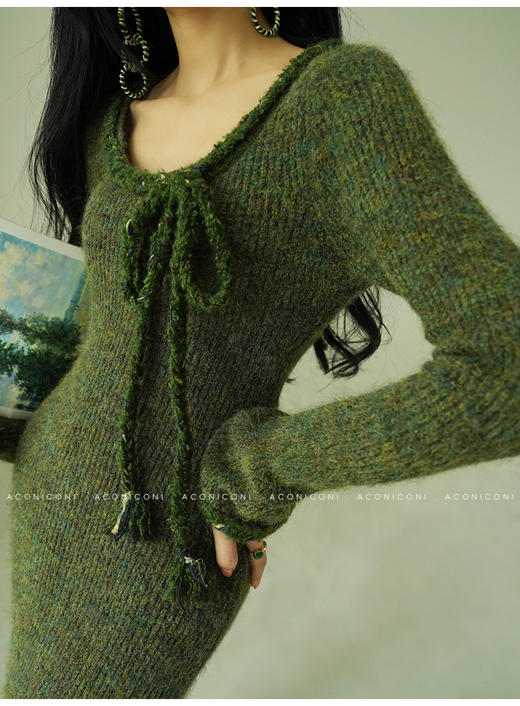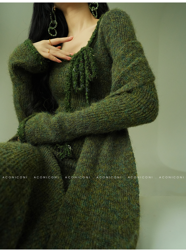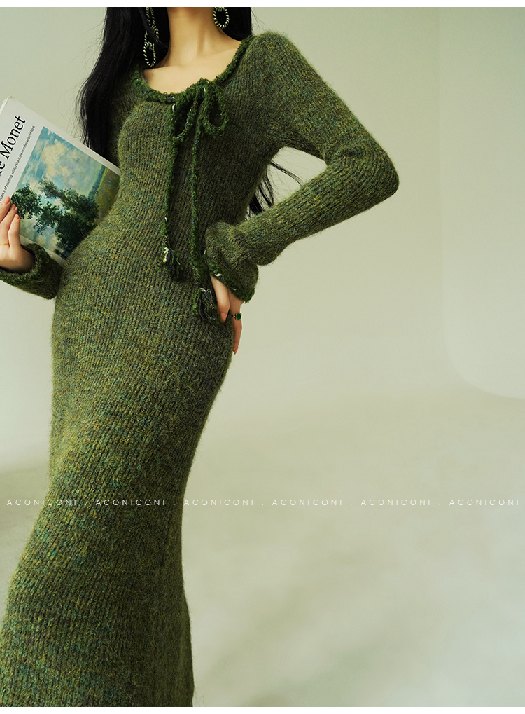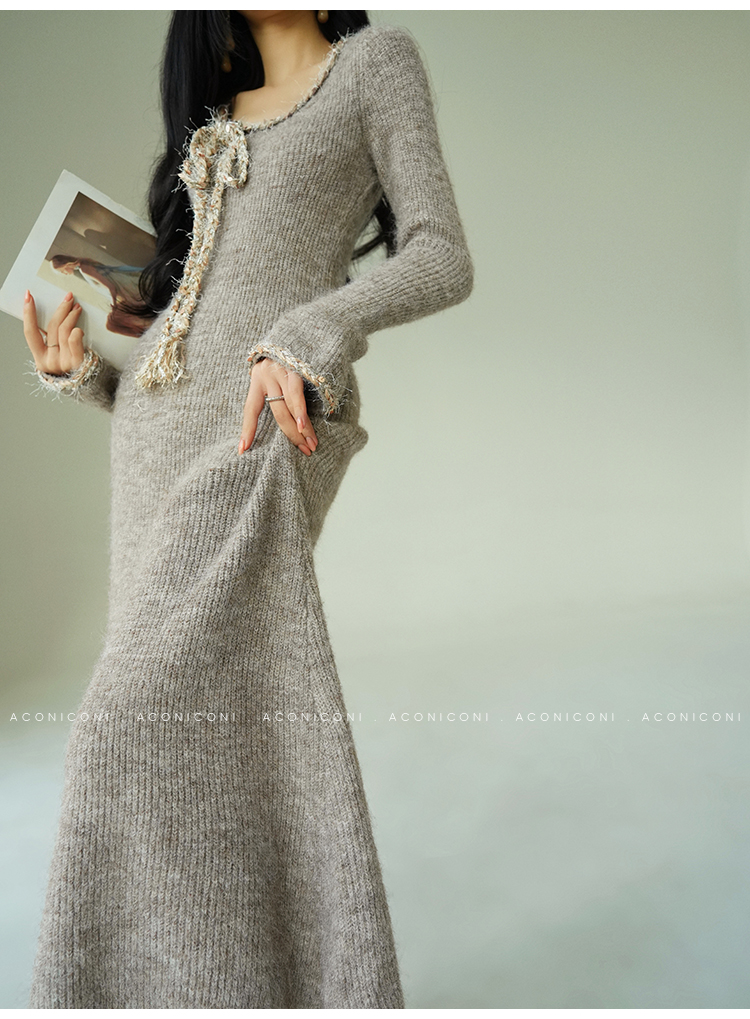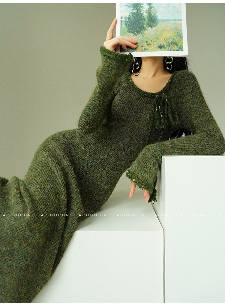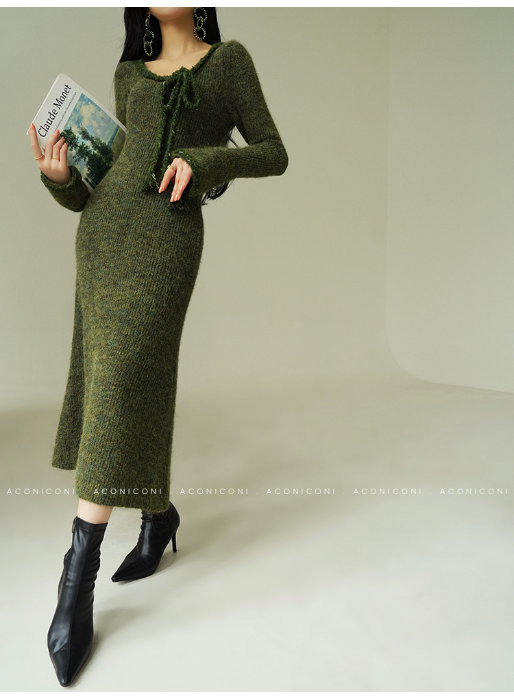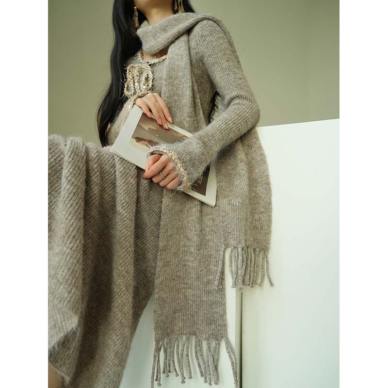 Aconiconi Knitted Dress With Scarf