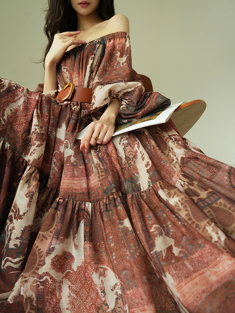 Aconiconi Off Shoulder Bohemian Style Dress