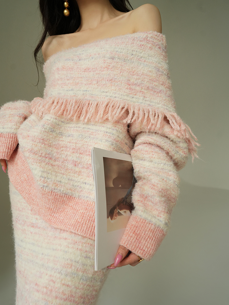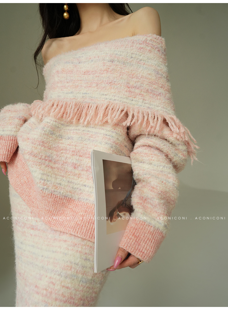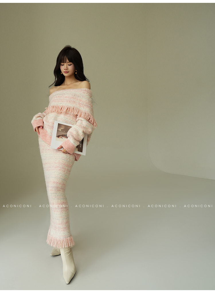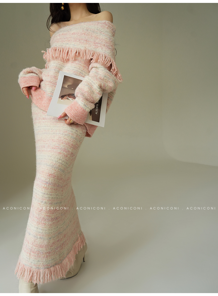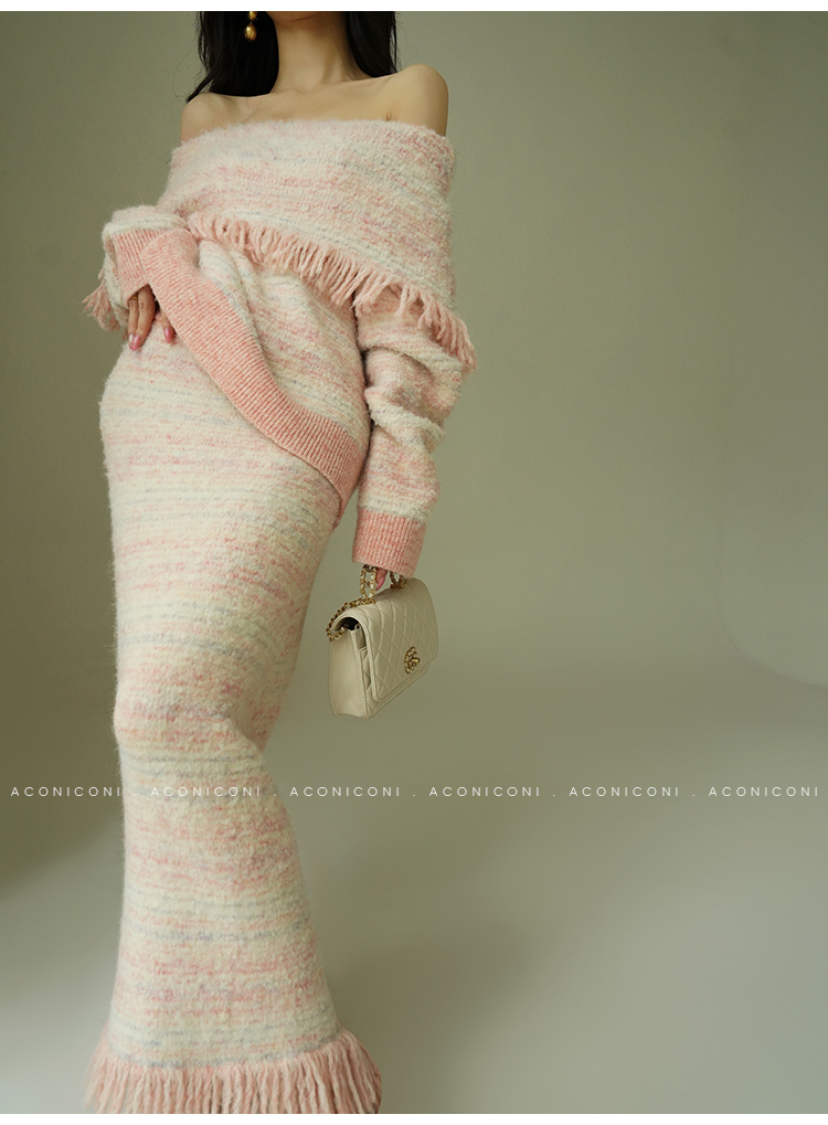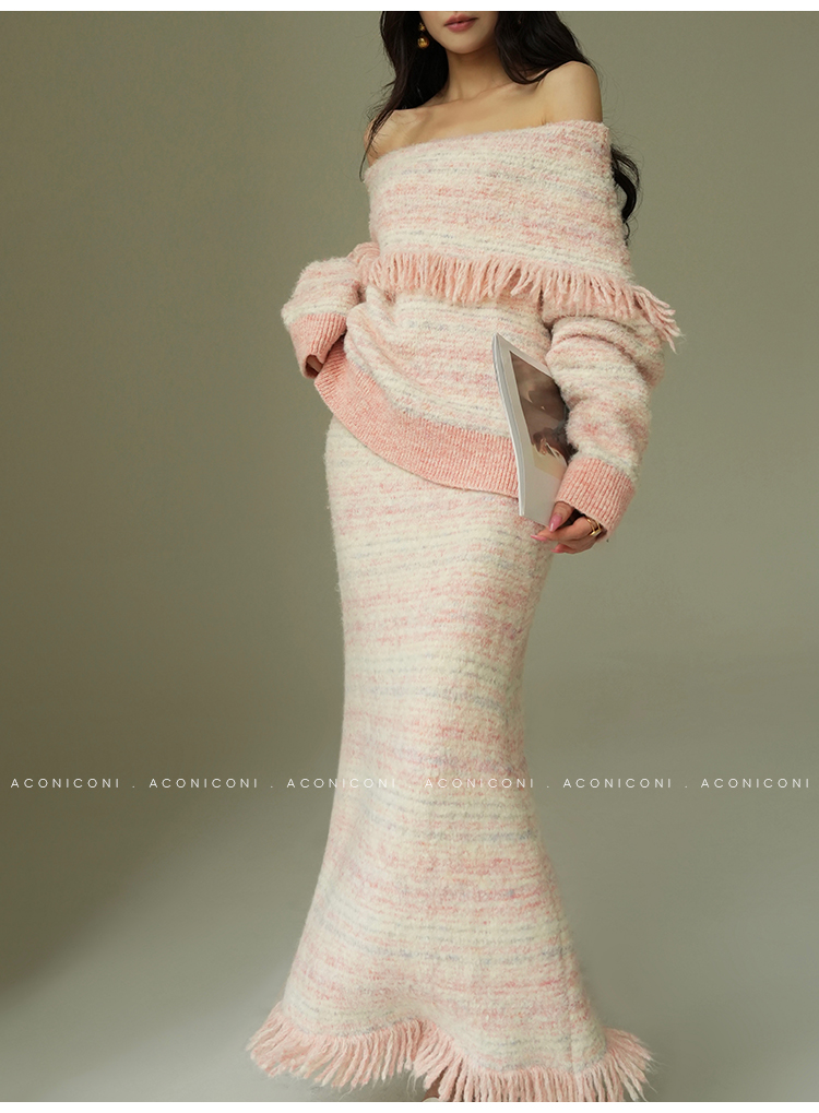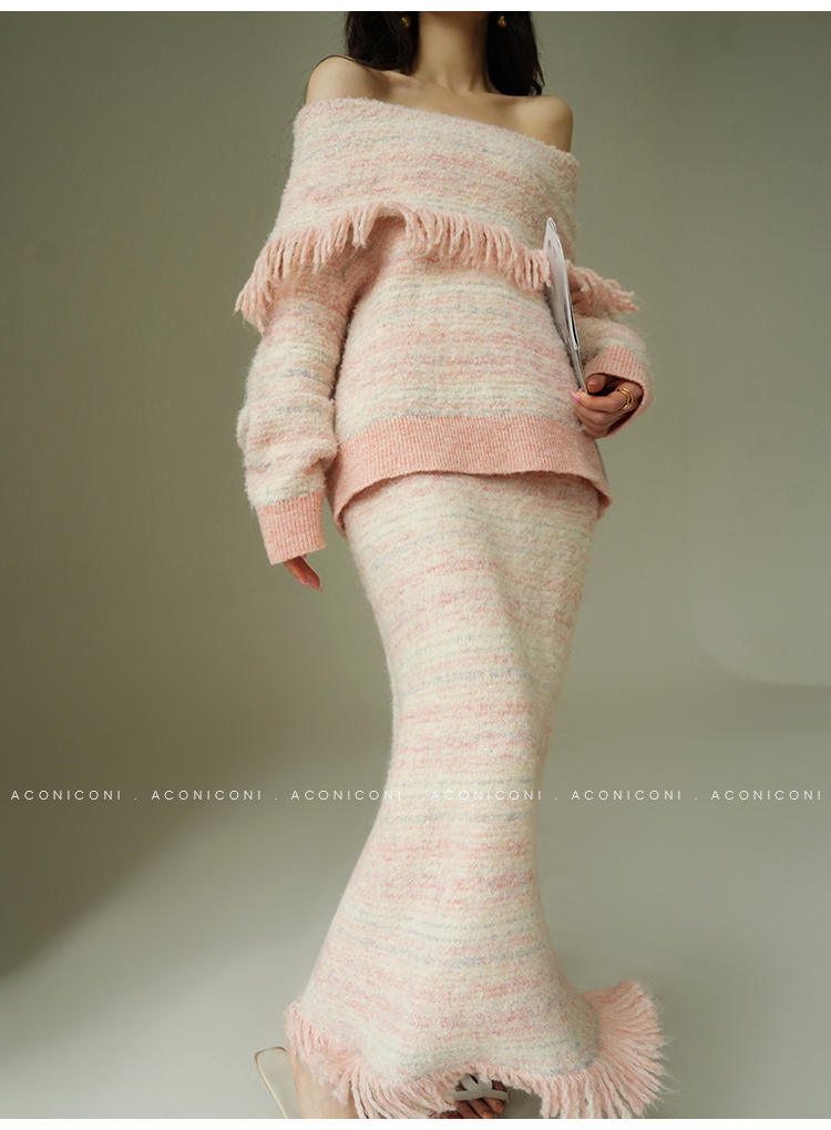 Aconiconi One Shoulder Knitted 2Piece Skirt Set