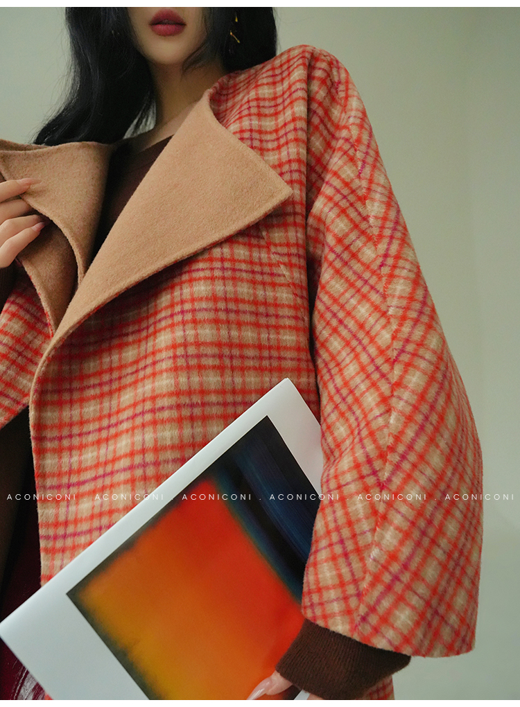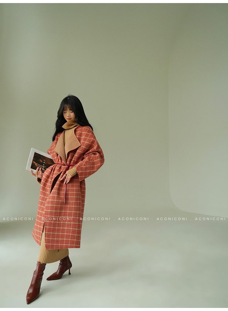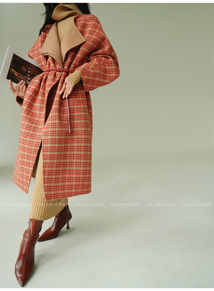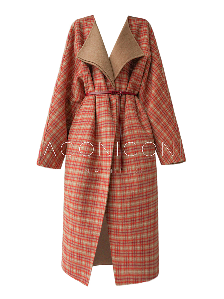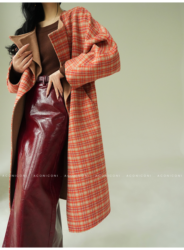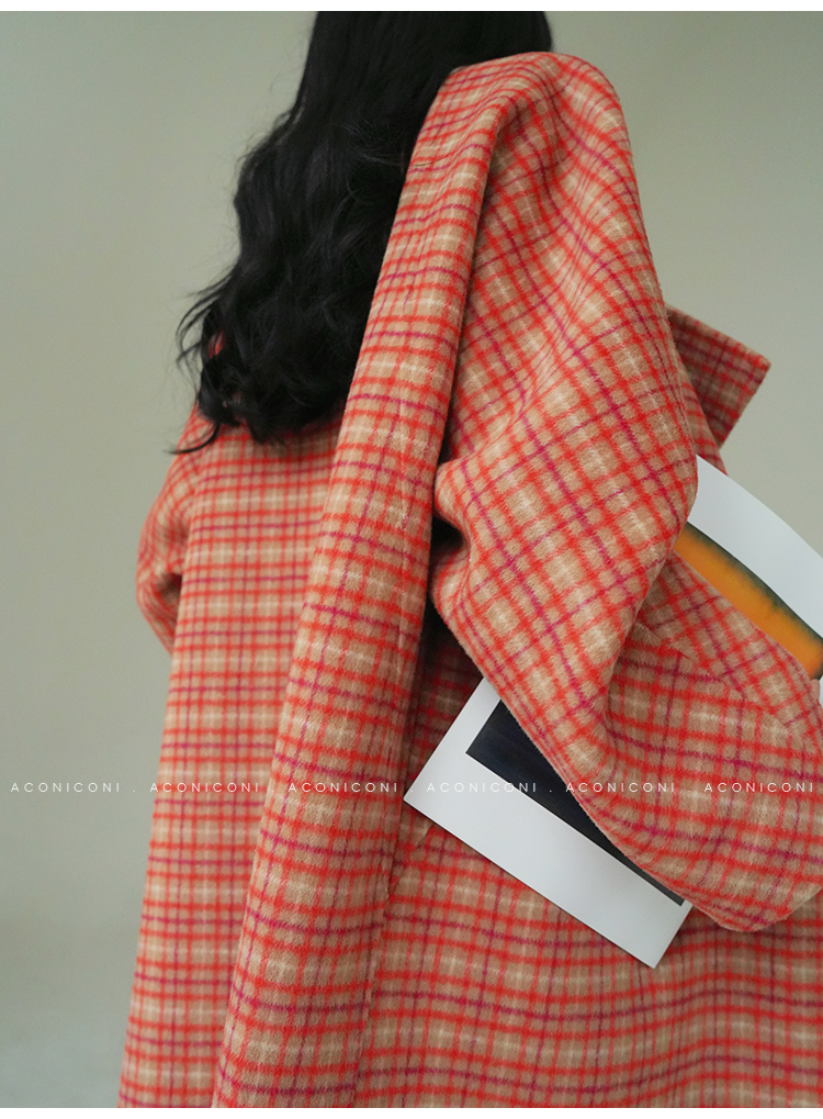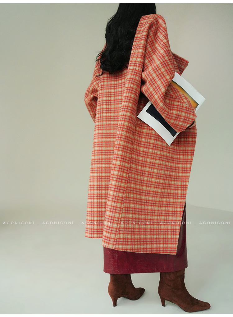 Aconiconi Orange Plaid Woolen Coat