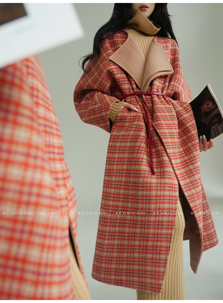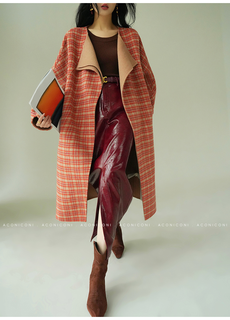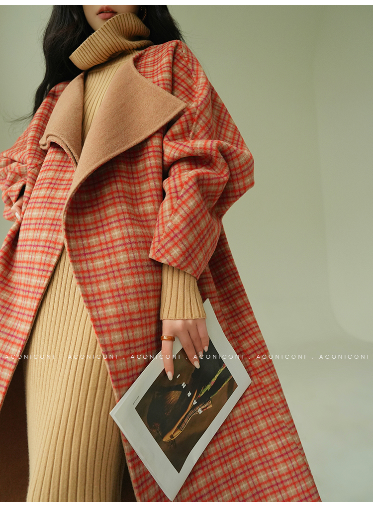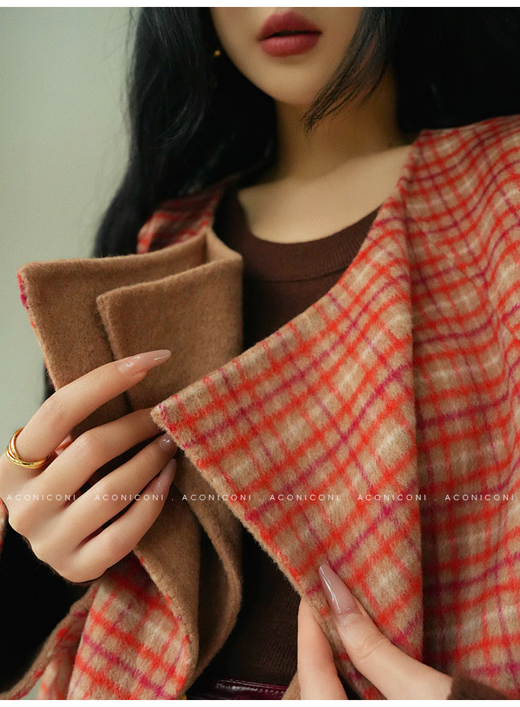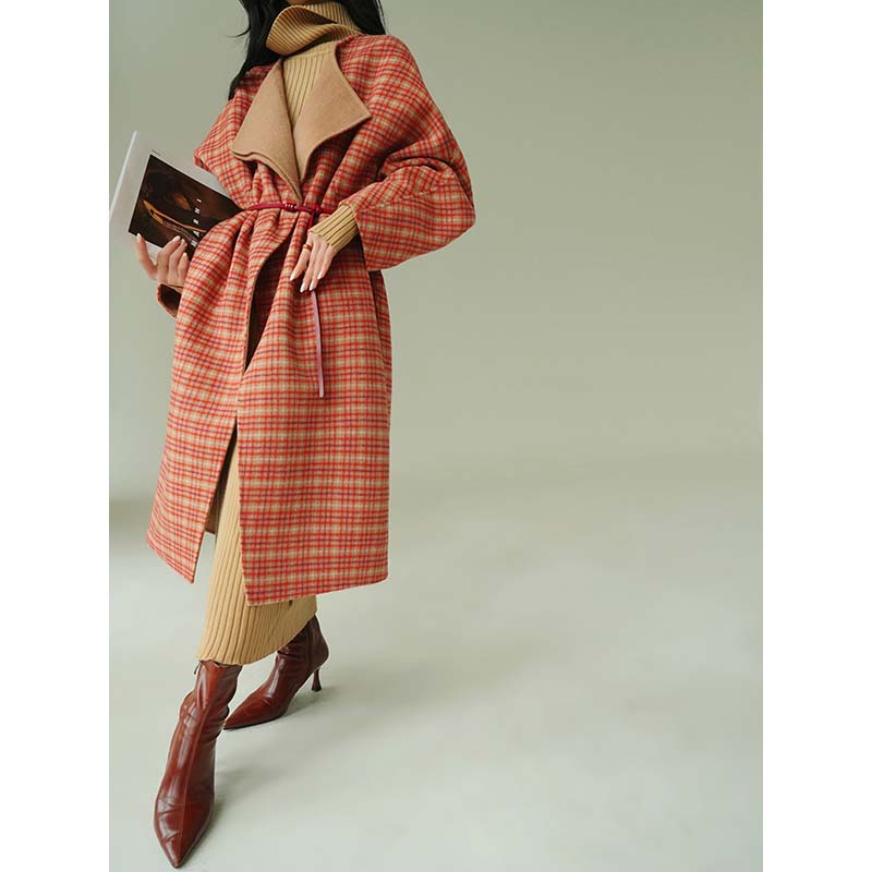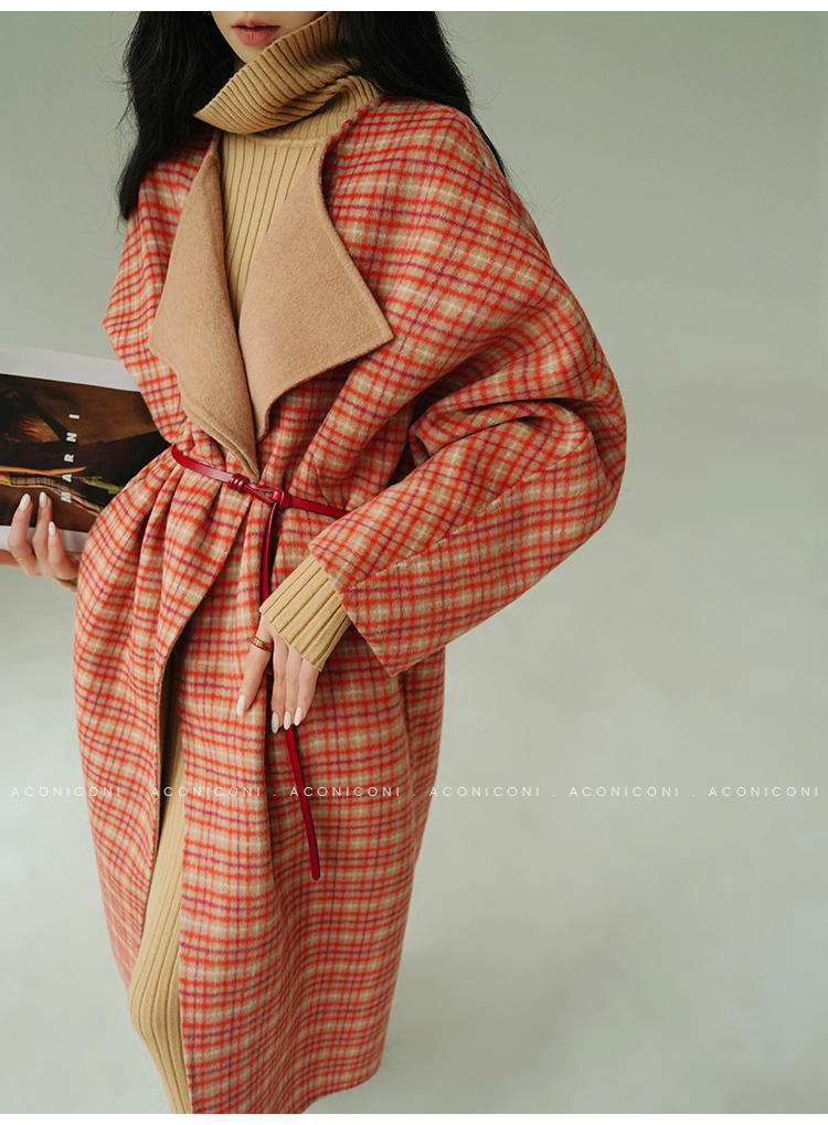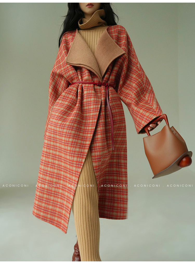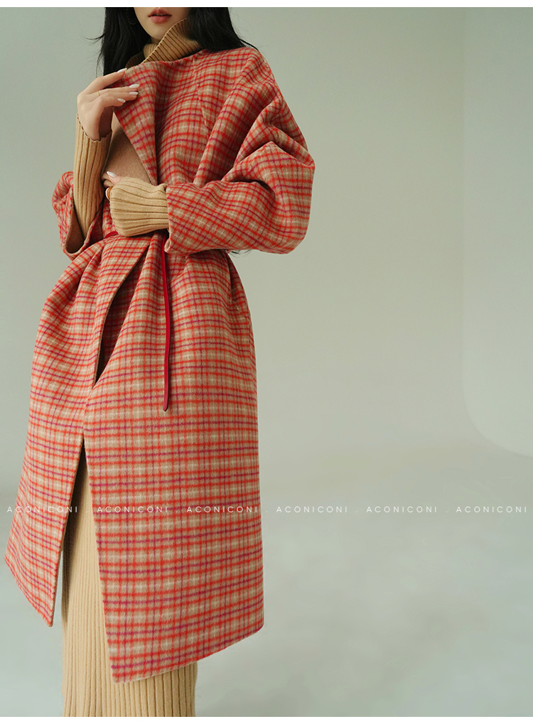 Aconiconi Orange Plaid Woolen Coat