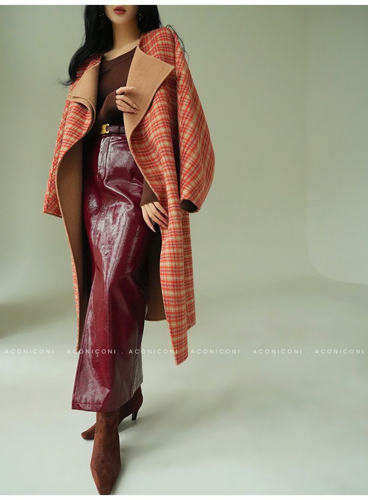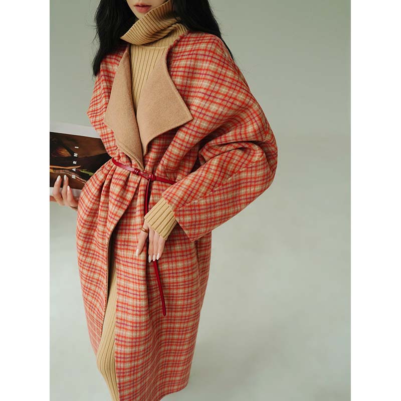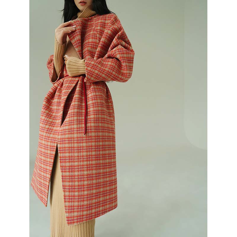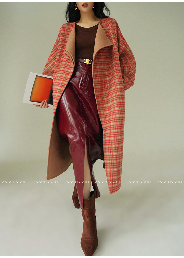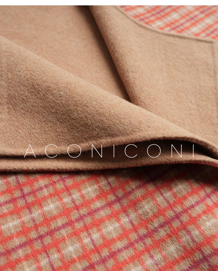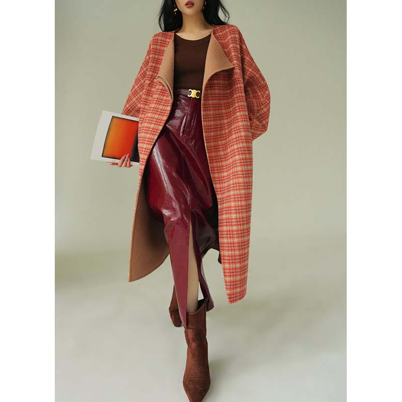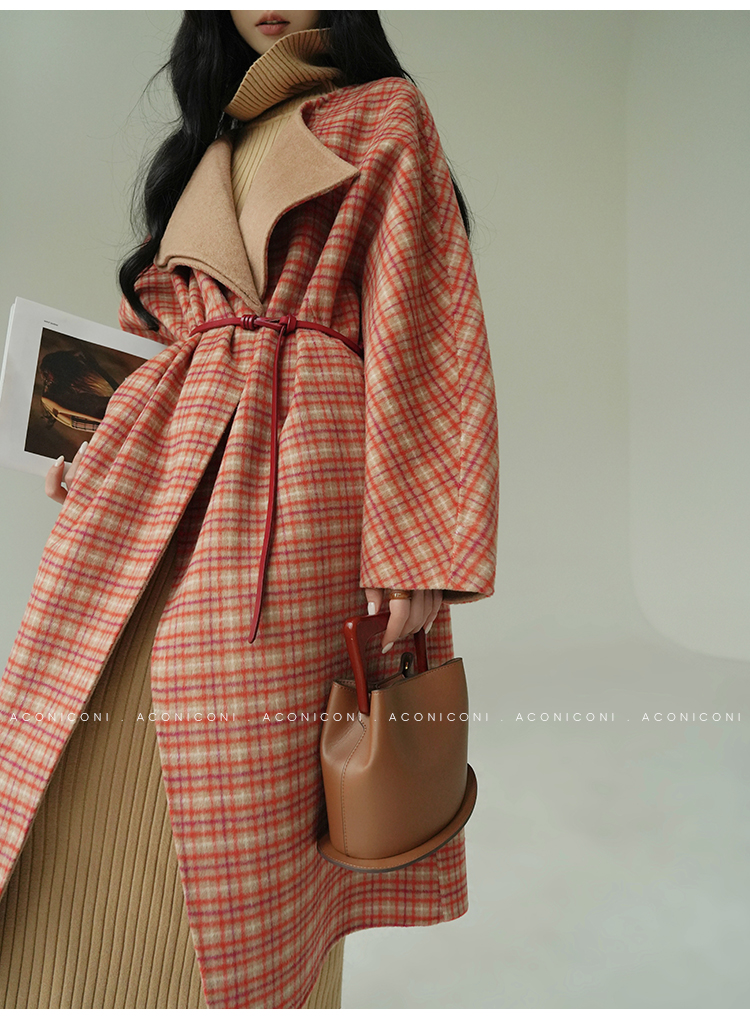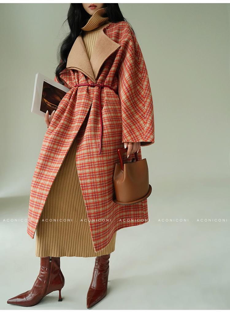 Aconiconi Orange Plaid Woolen Coat
