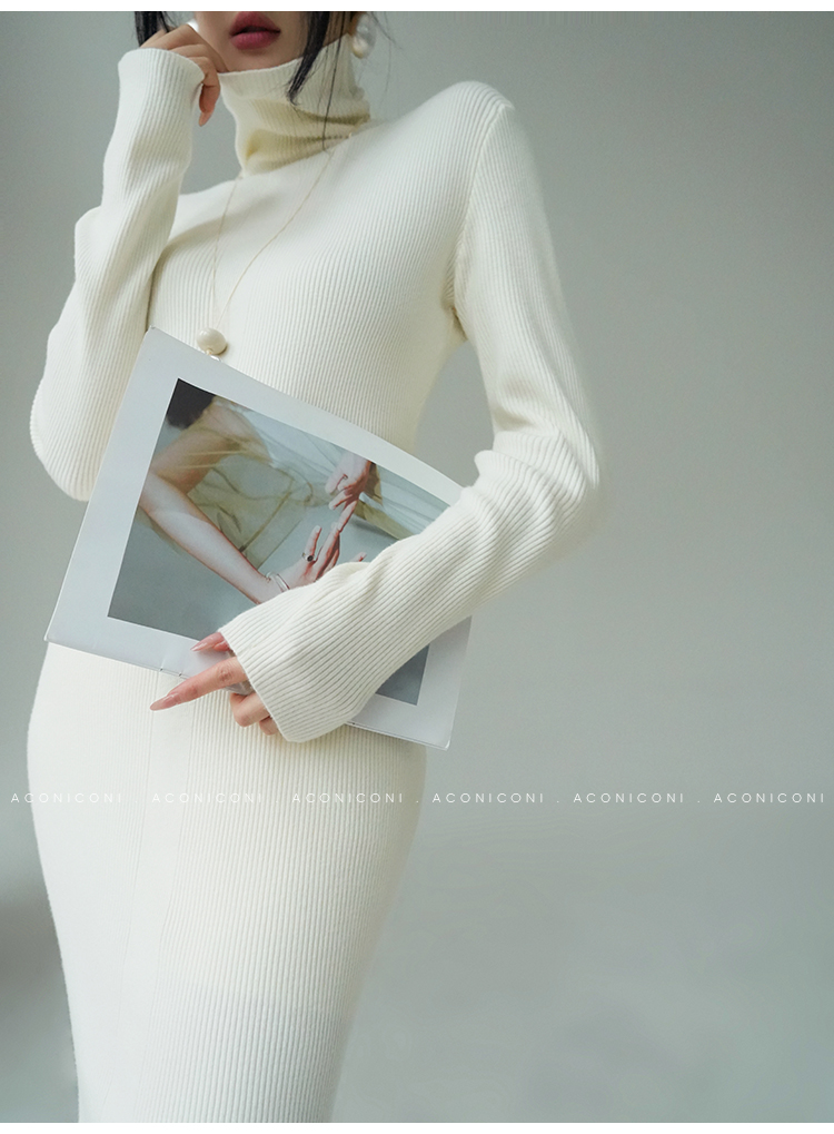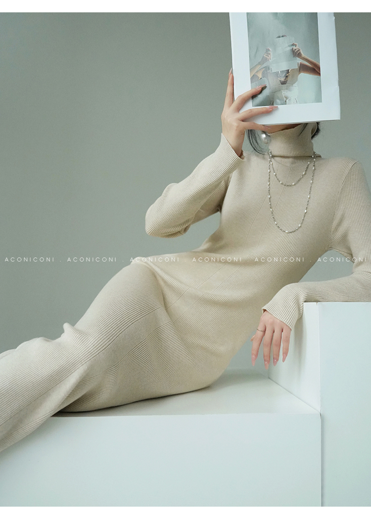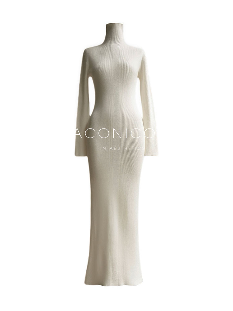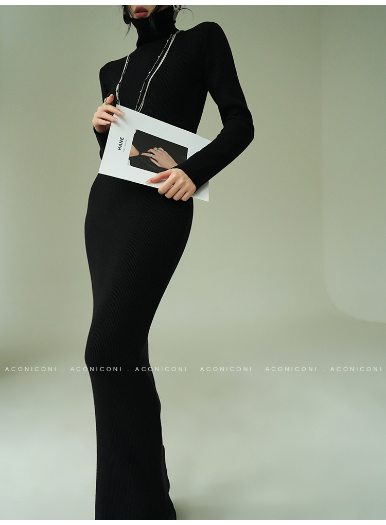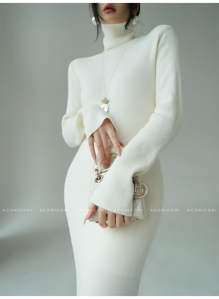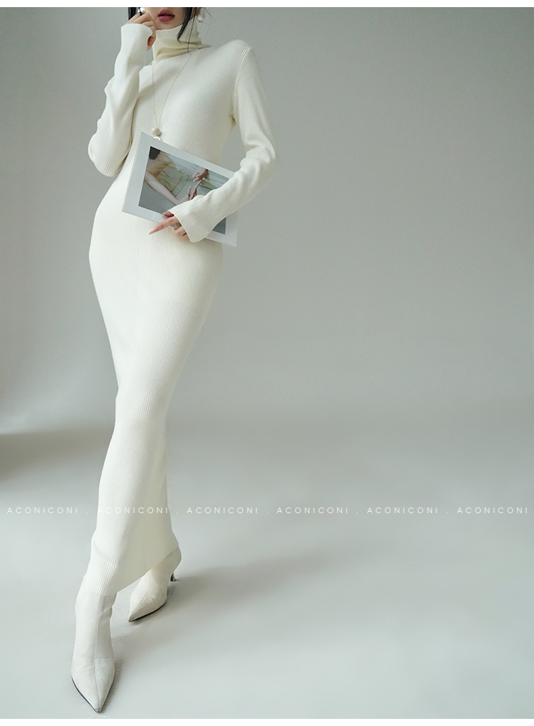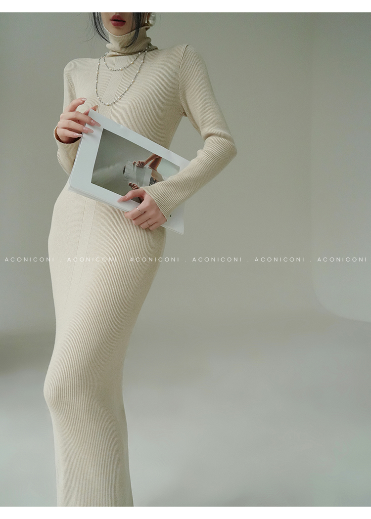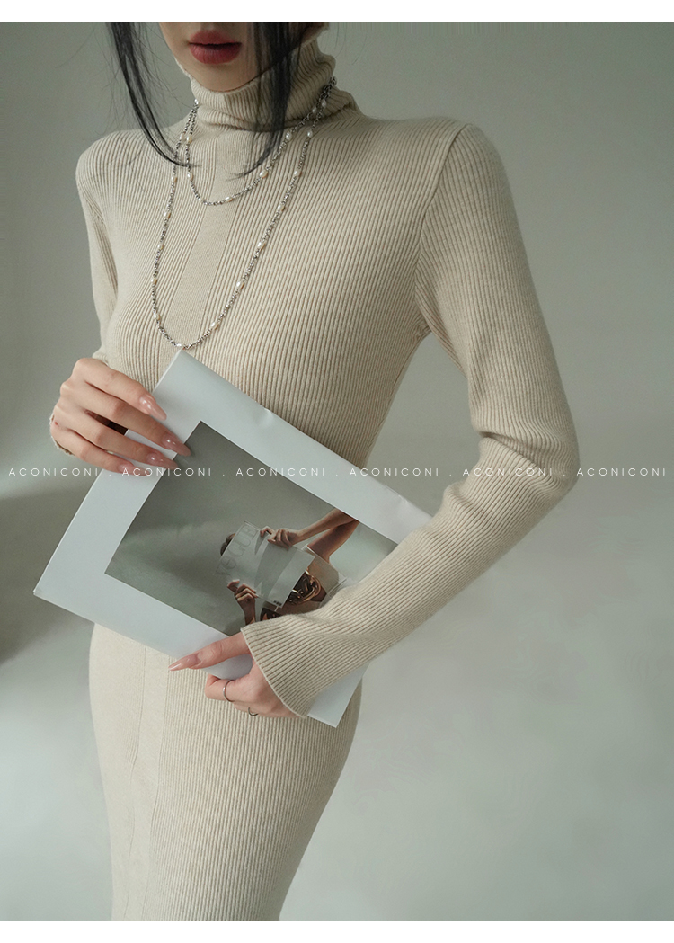 Aconiconi Turtleneck Knitted Length Dress