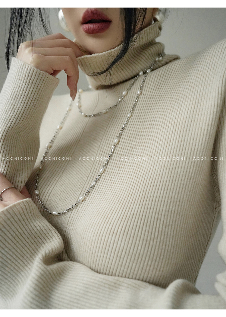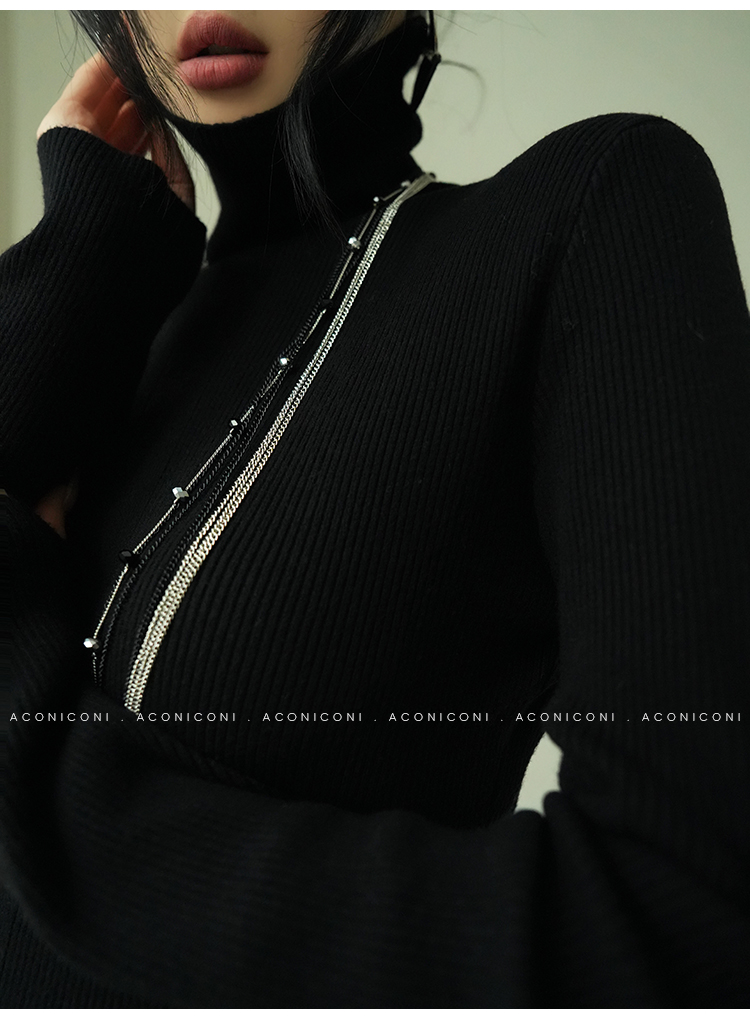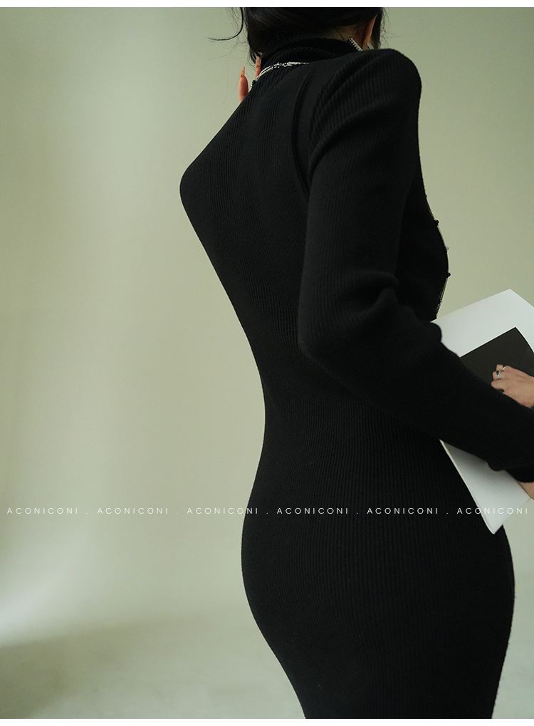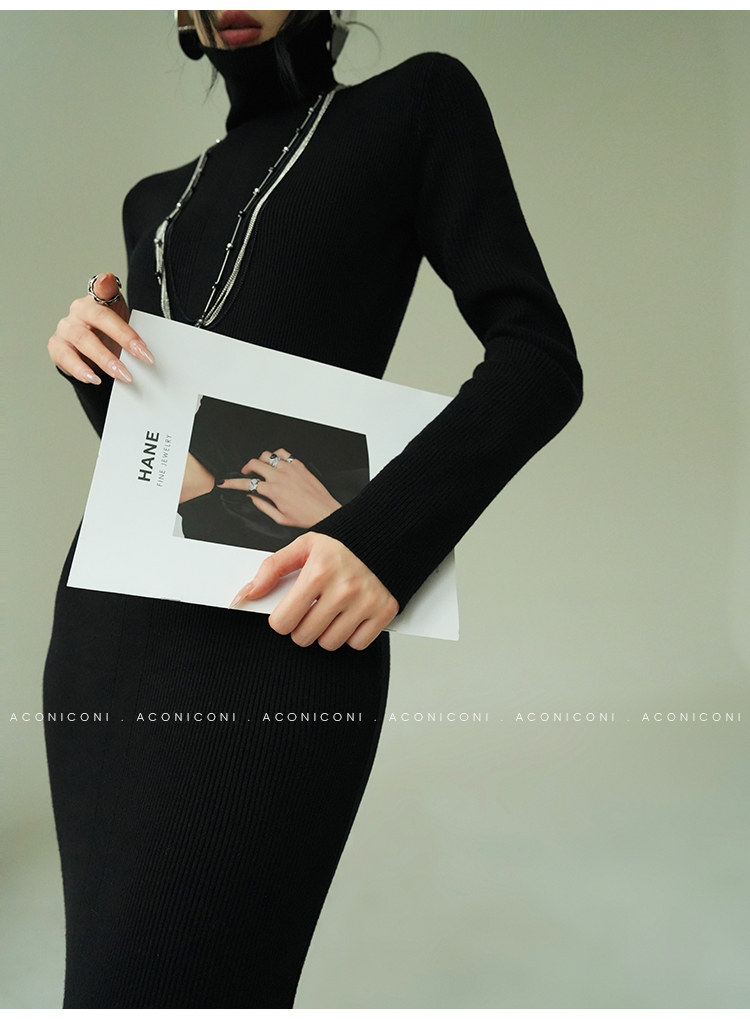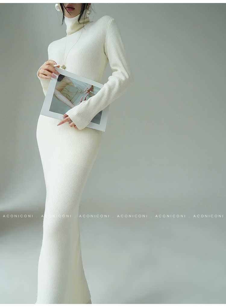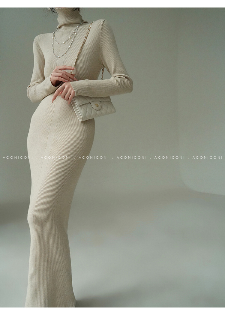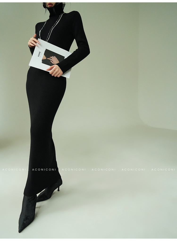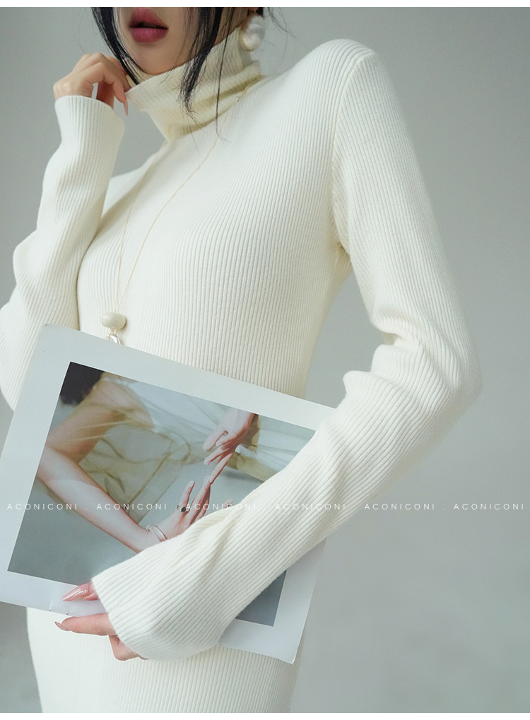 Aconiconi Turtleneck Knitted Length Dress