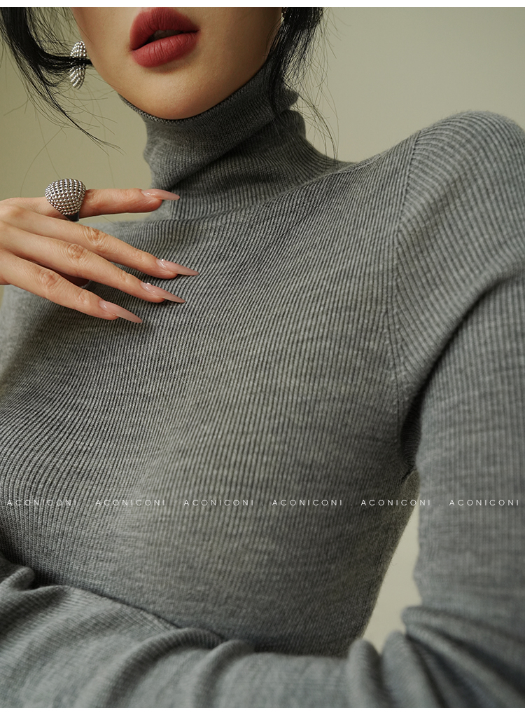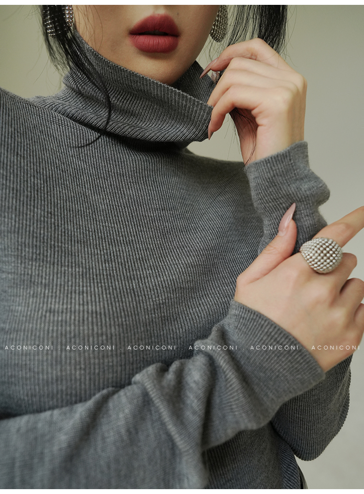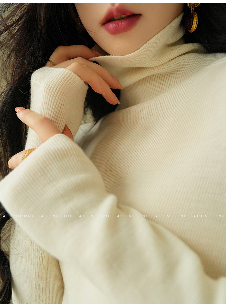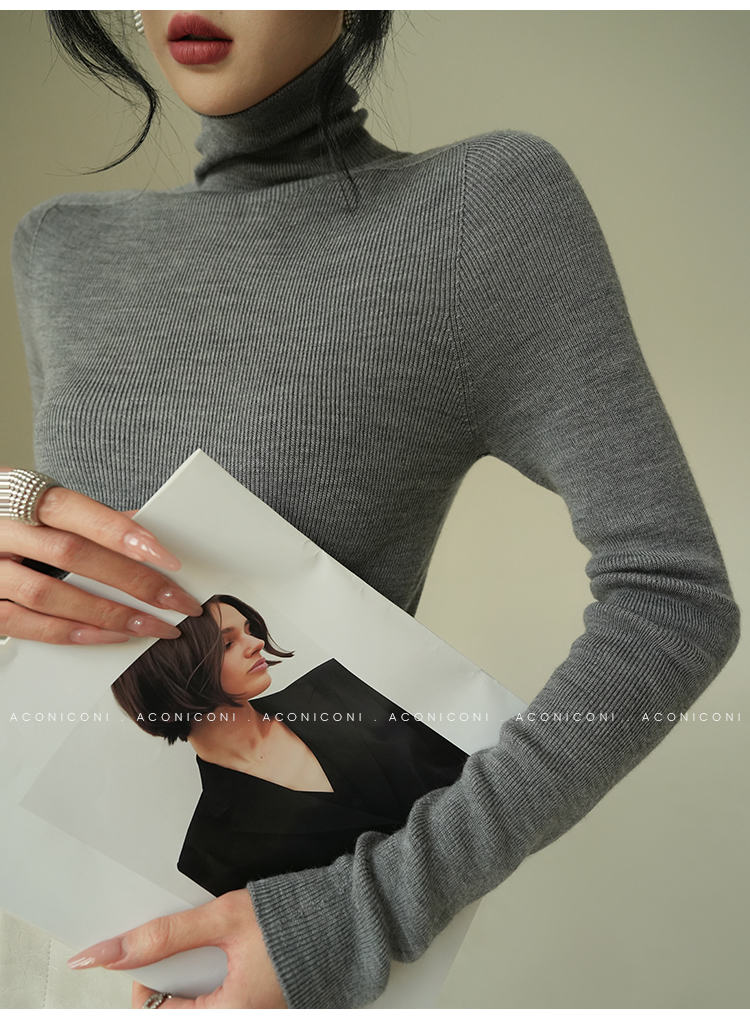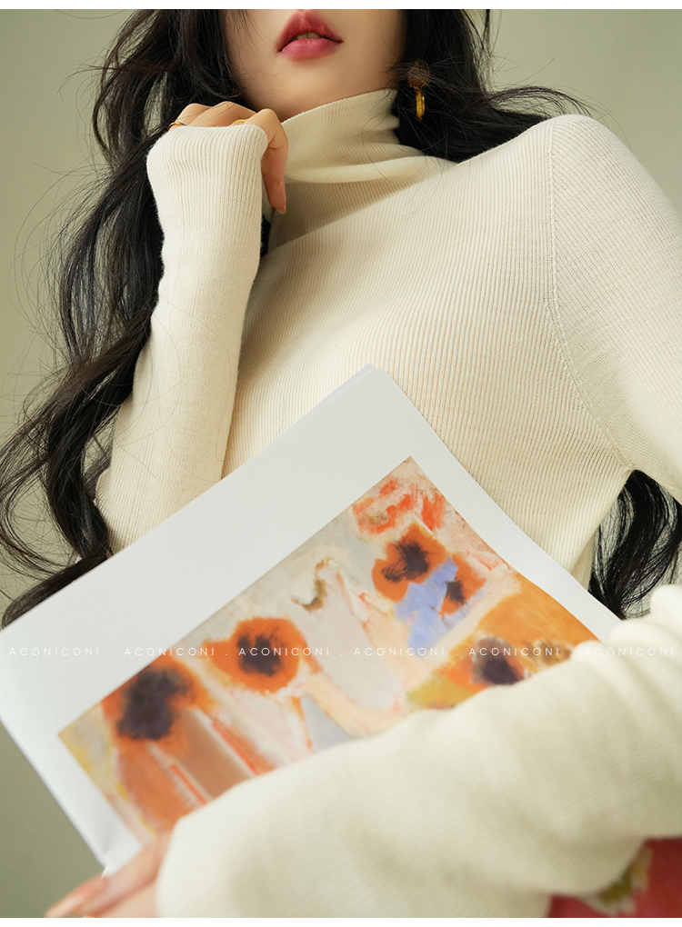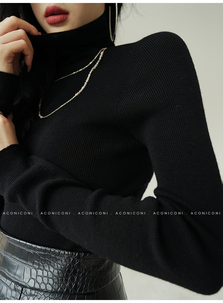 Aconiconi Turtleneck Knitted Long Sleeve Top