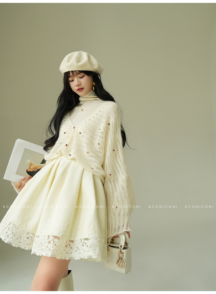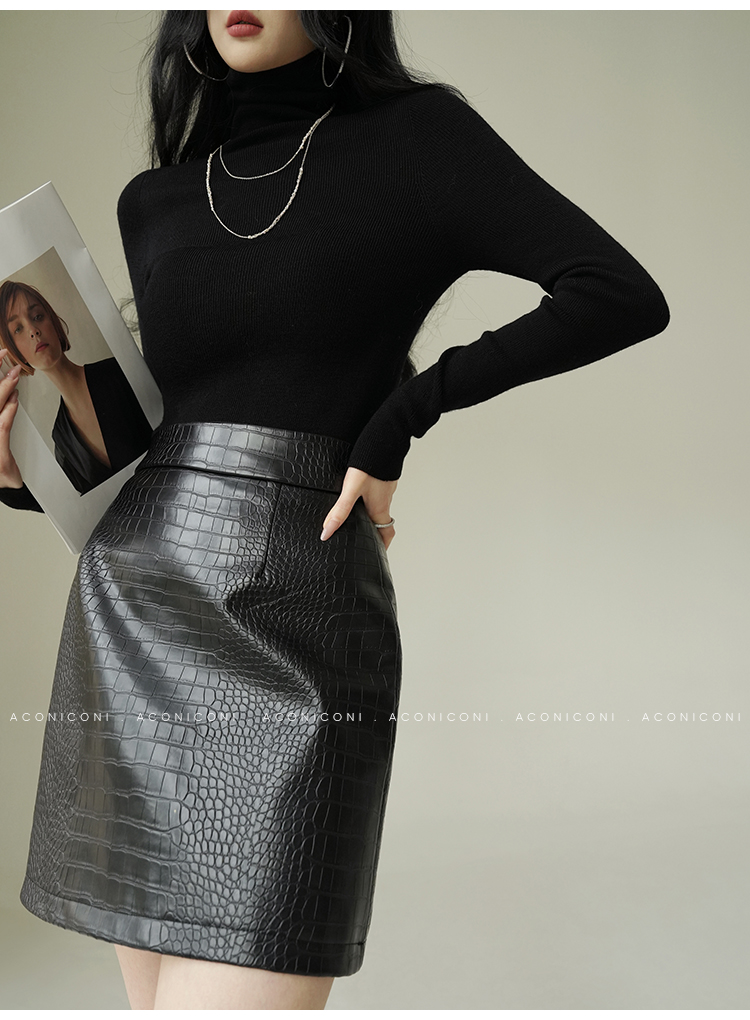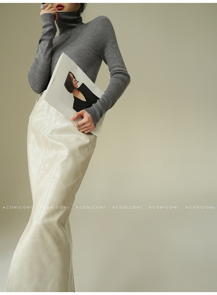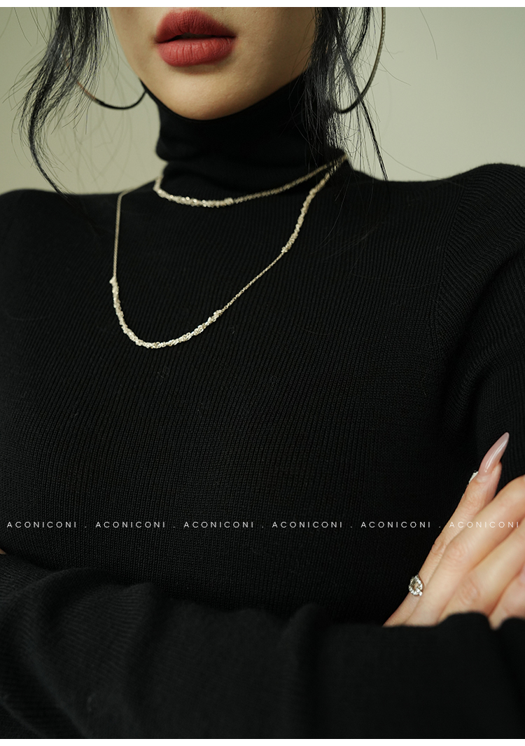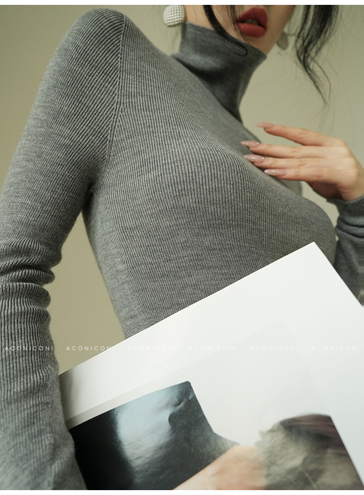 Aconiconi Turtleneck Knitted Long Sleeve Top