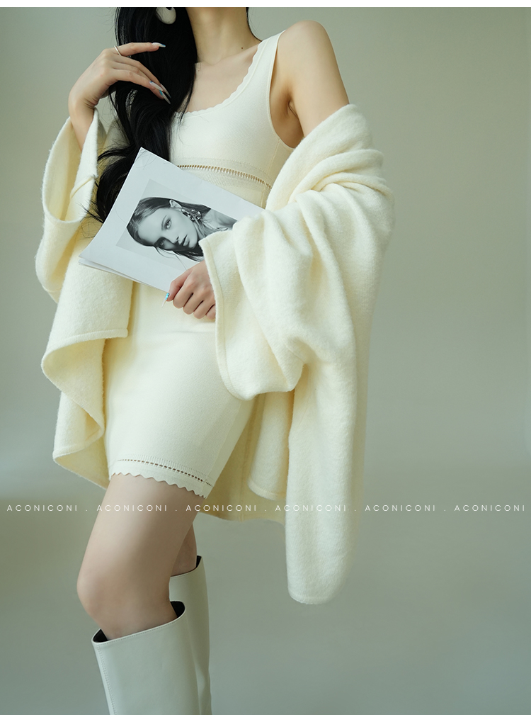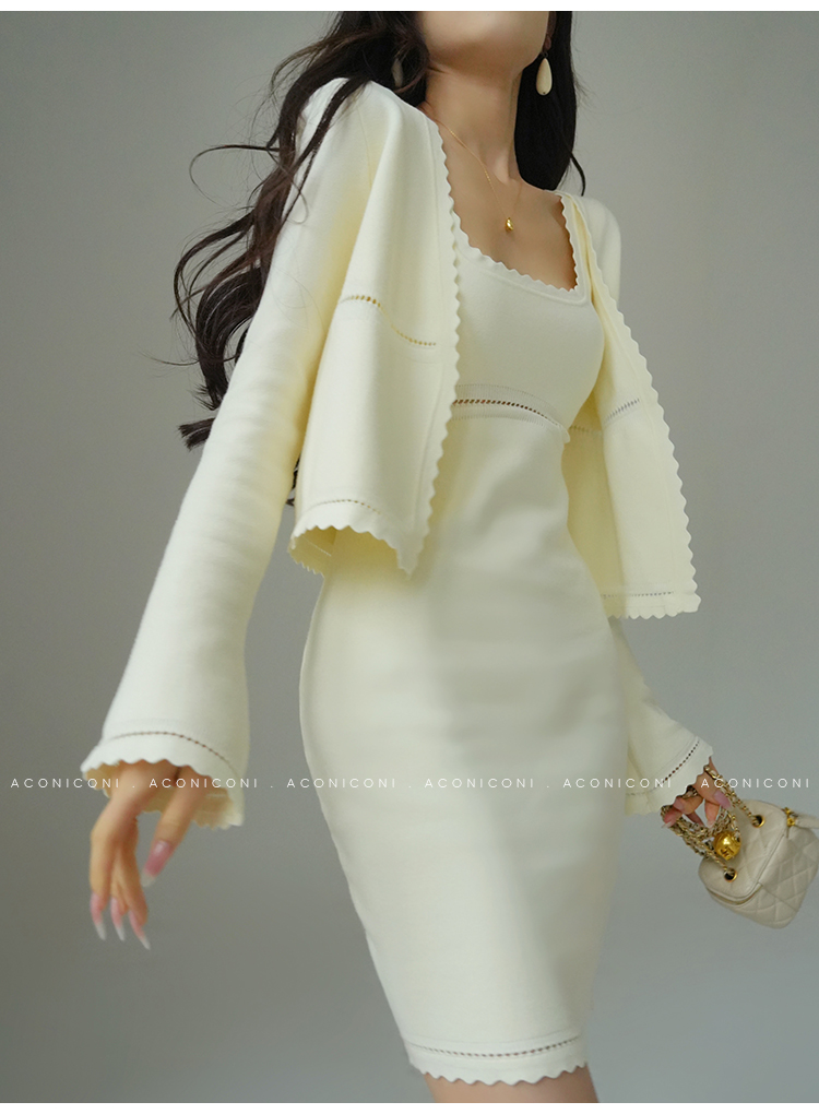 Aconiconi White Knitted Dress With Cardigan
