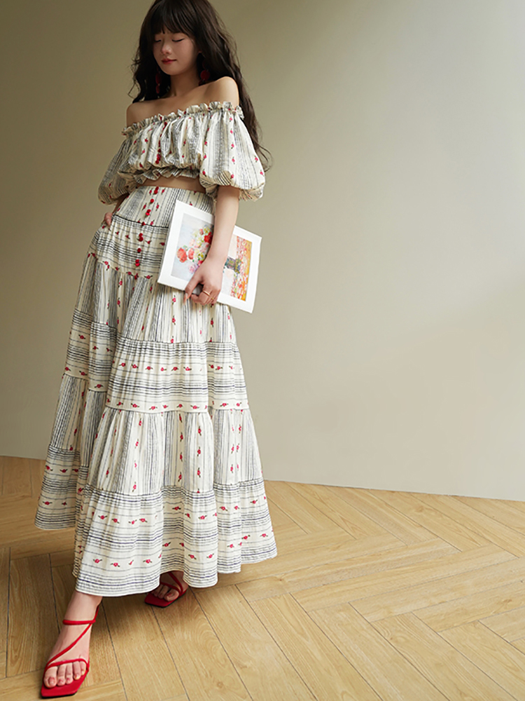 Aconiconi Boho Style 2Piece Skirt Set