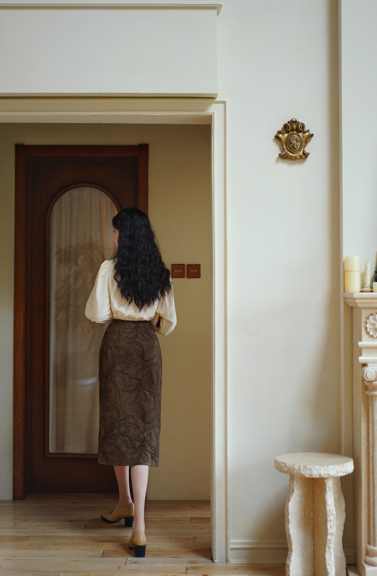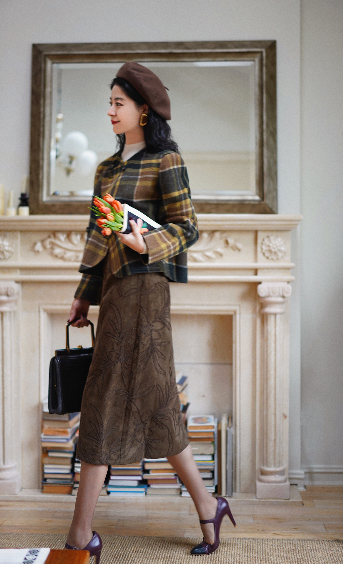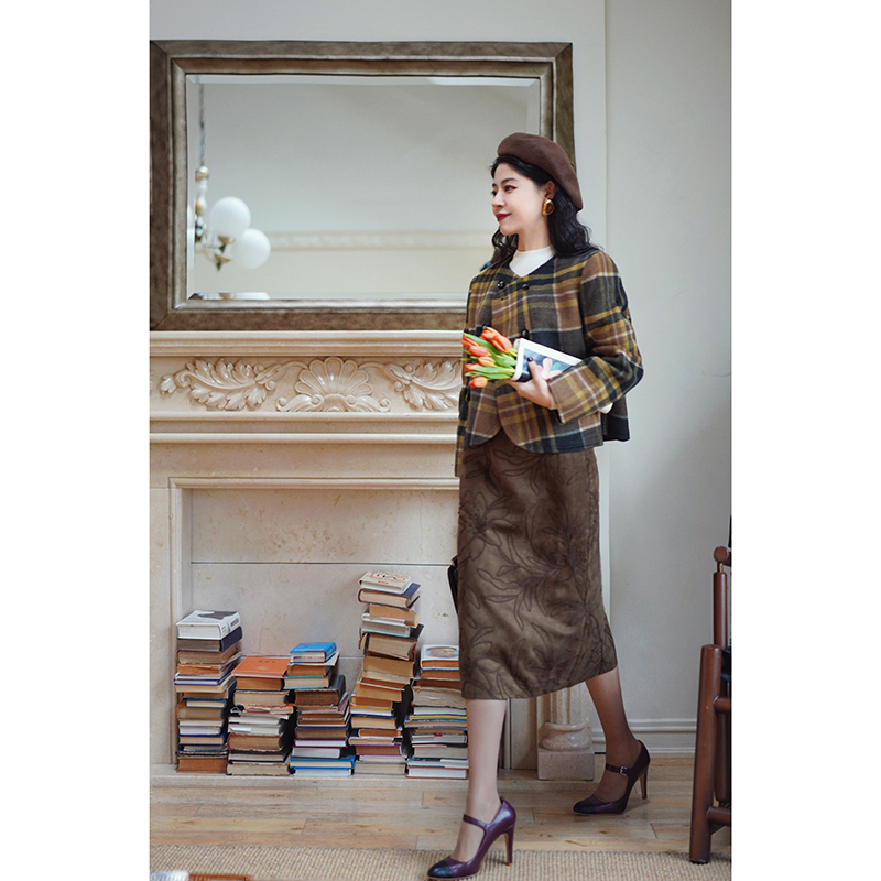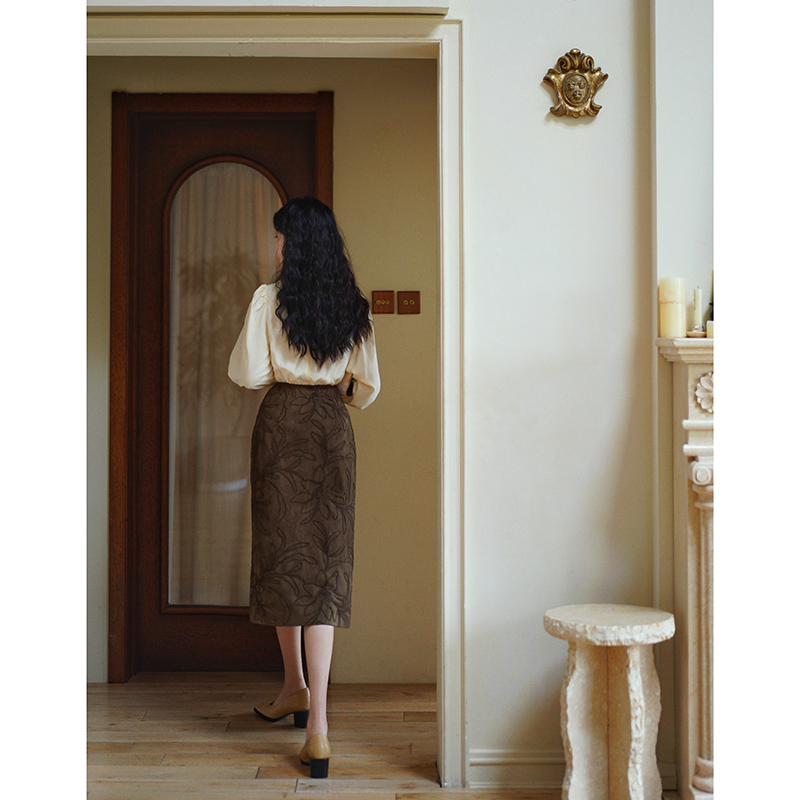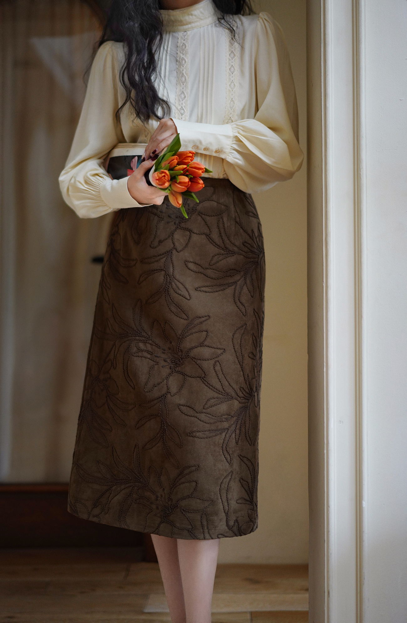 Ching's Closet Floral Embroidered Suede Skirt