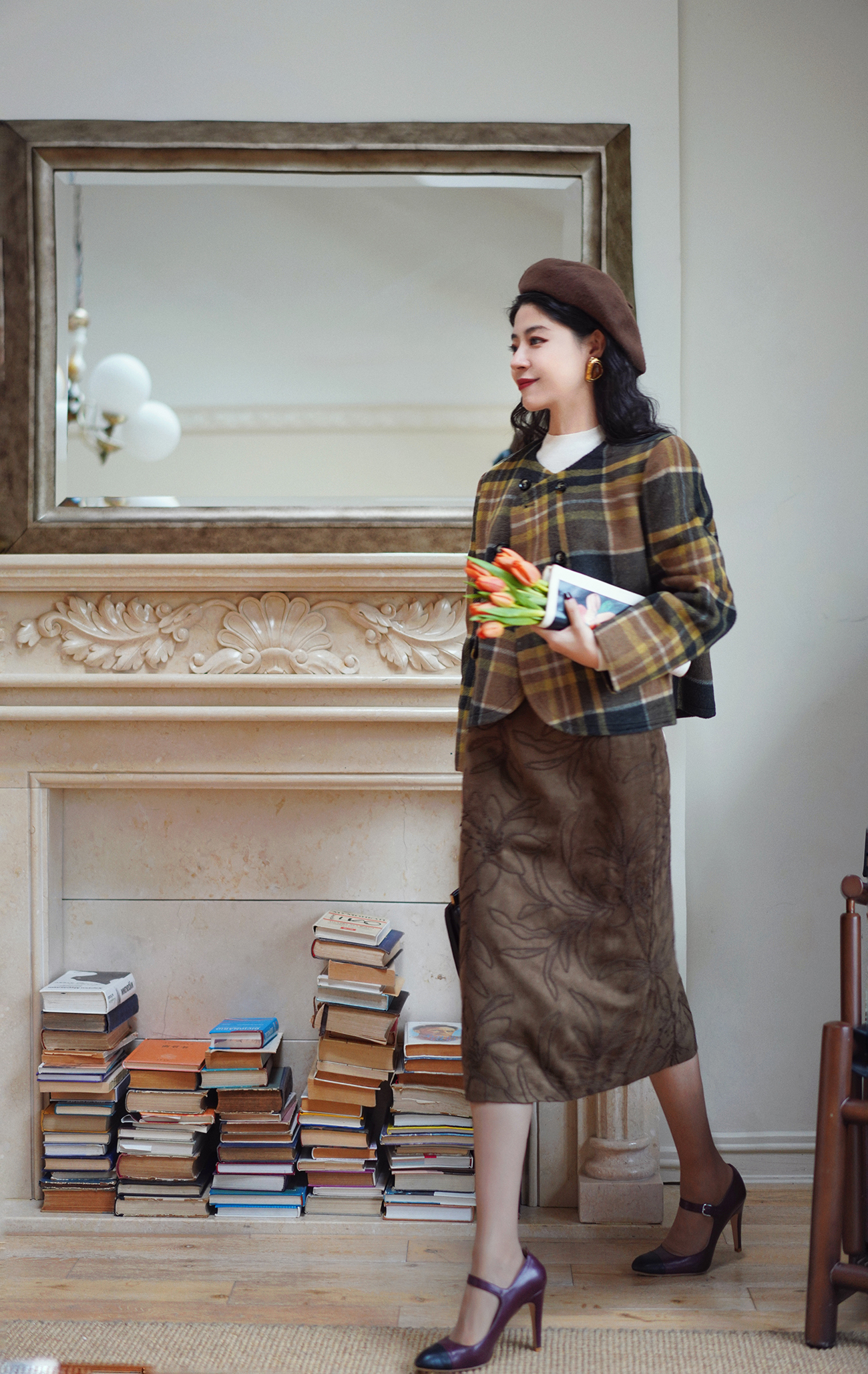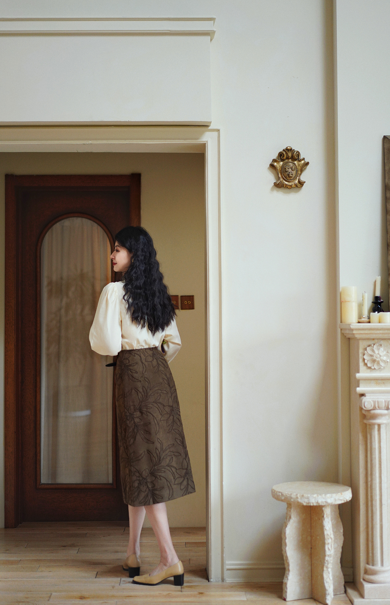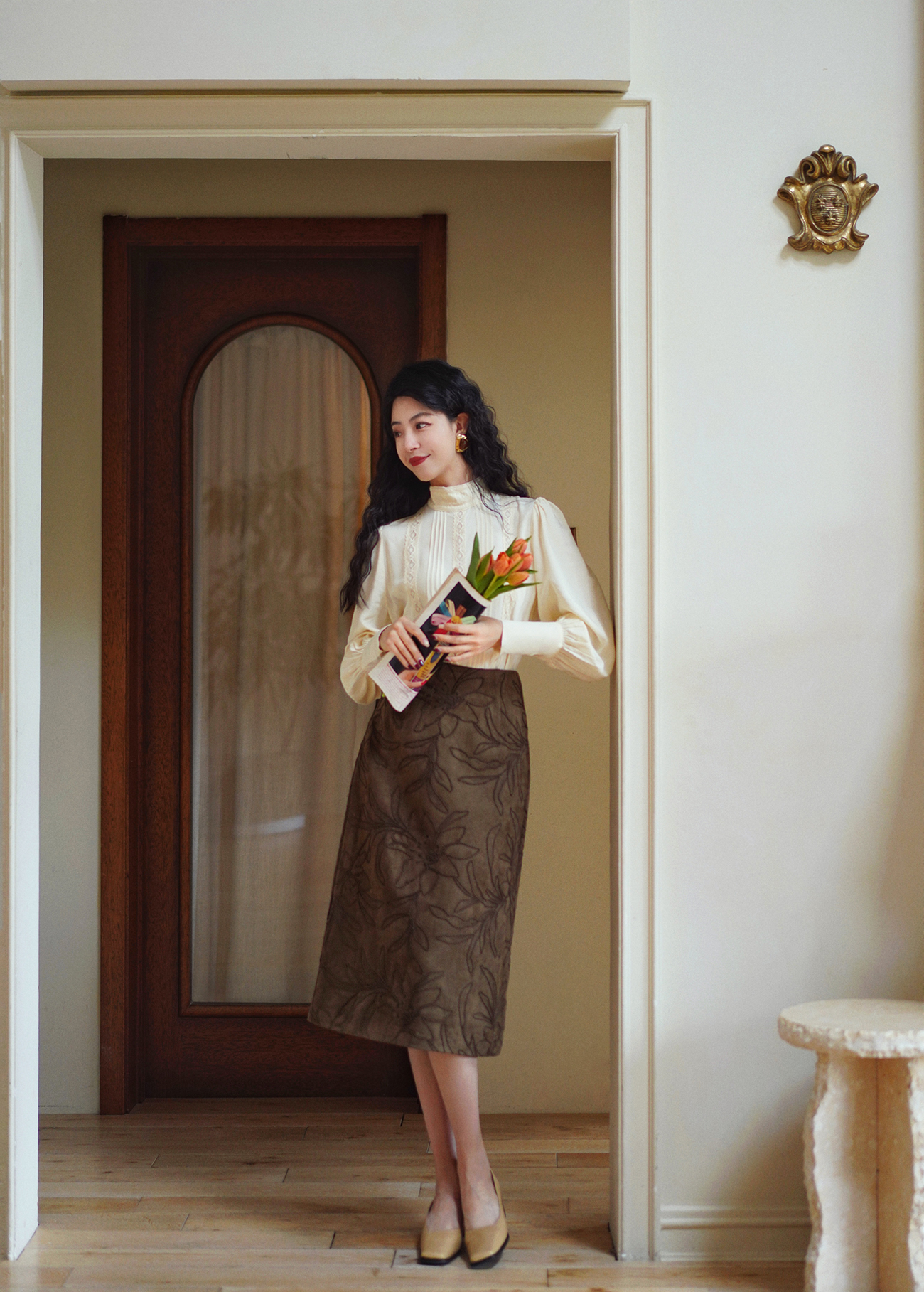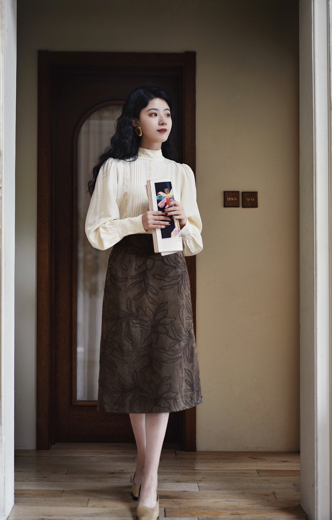 Ching's Closet Floral Embroidered Suede Skirt