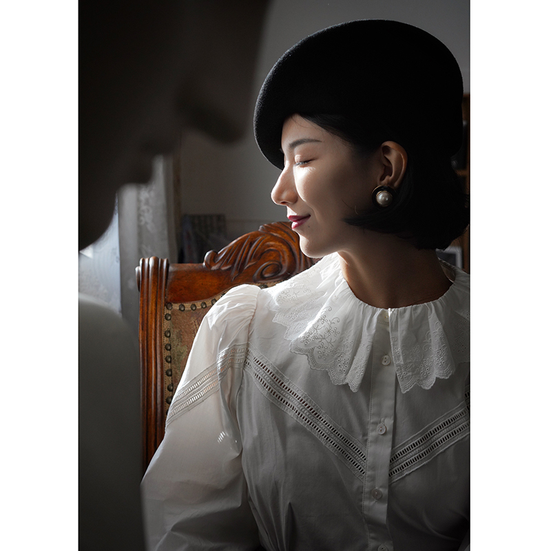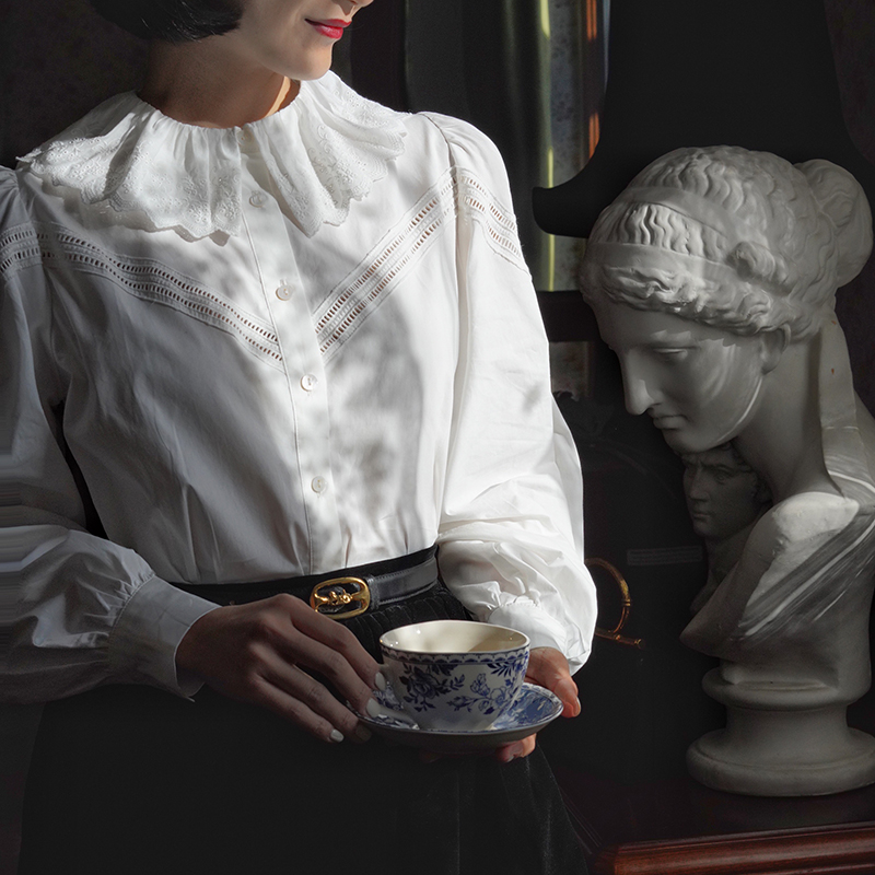 Ching's Closet Lotus Leaf Collar White Shirt
