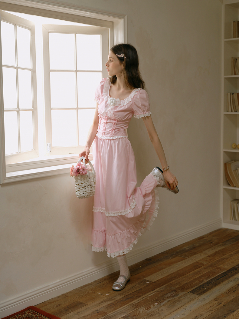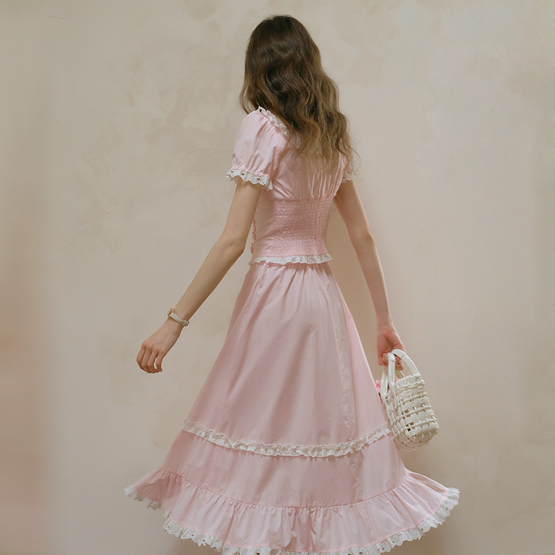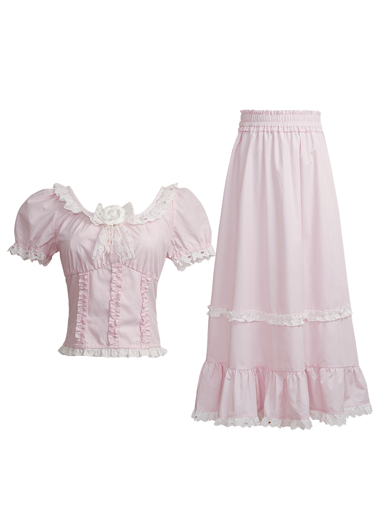 ISISLOVE Pink Vintage 2Piece Skirt Set