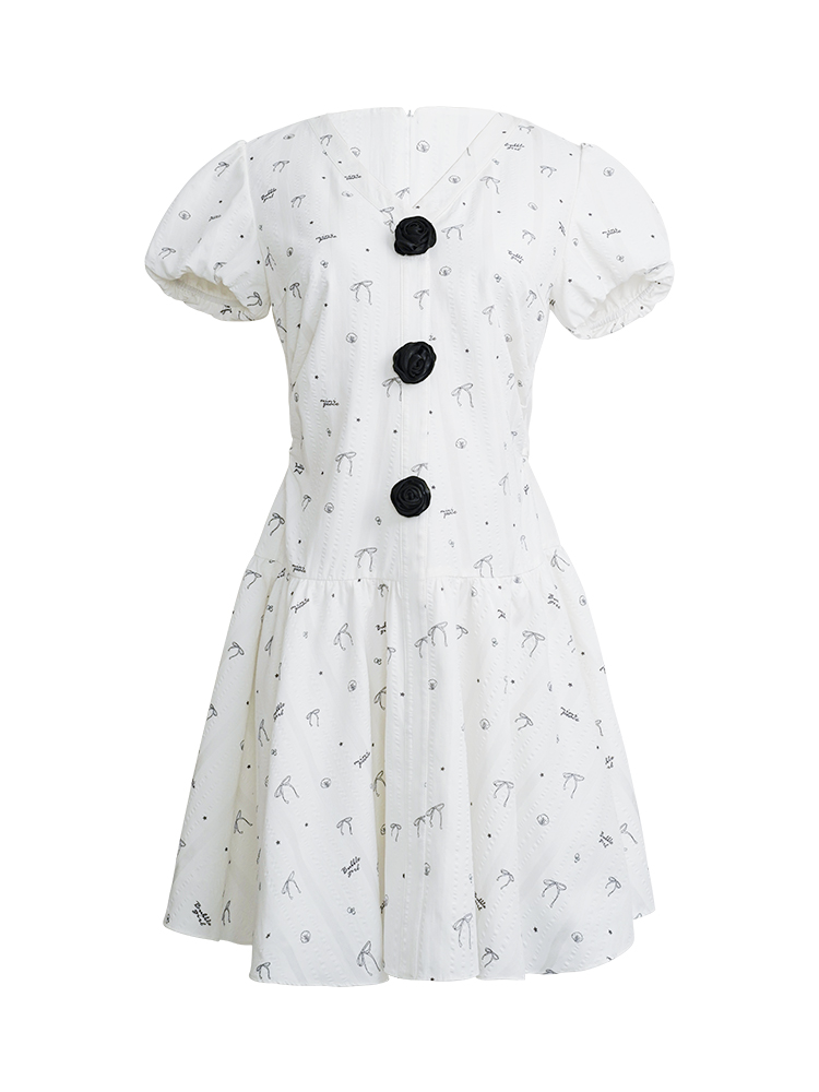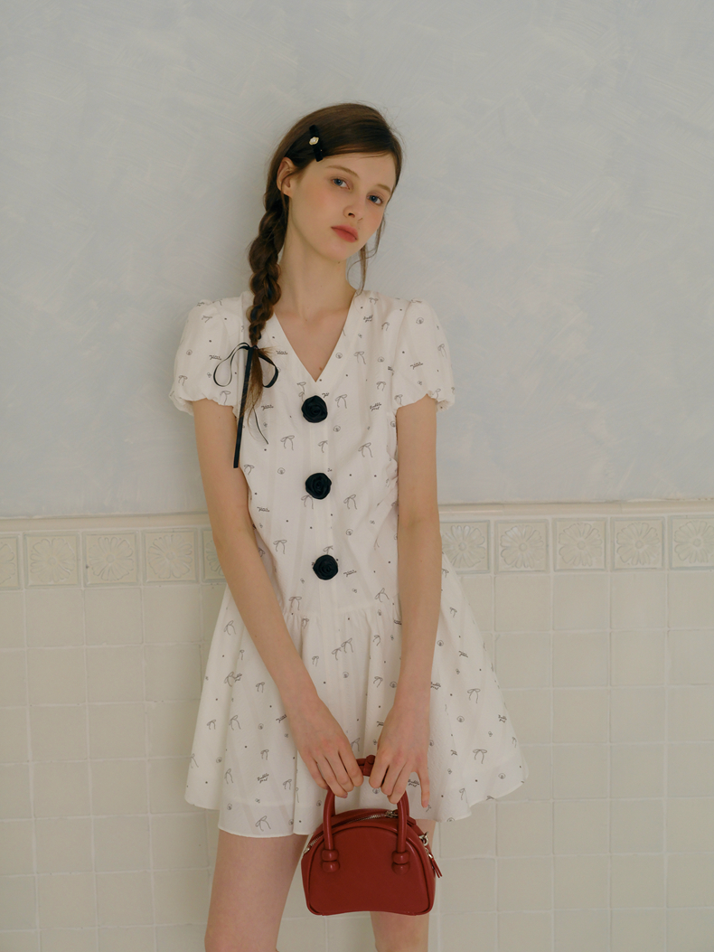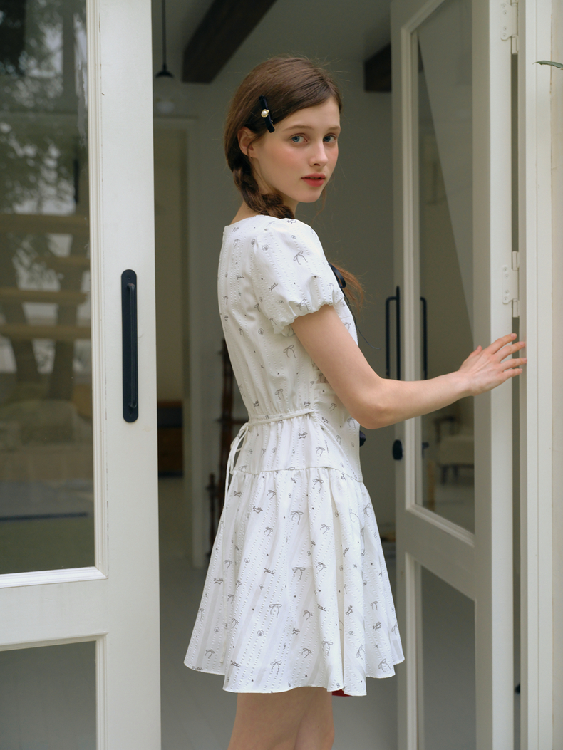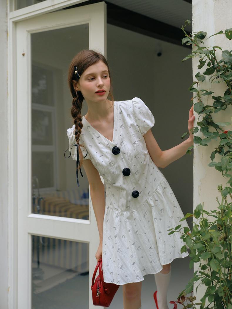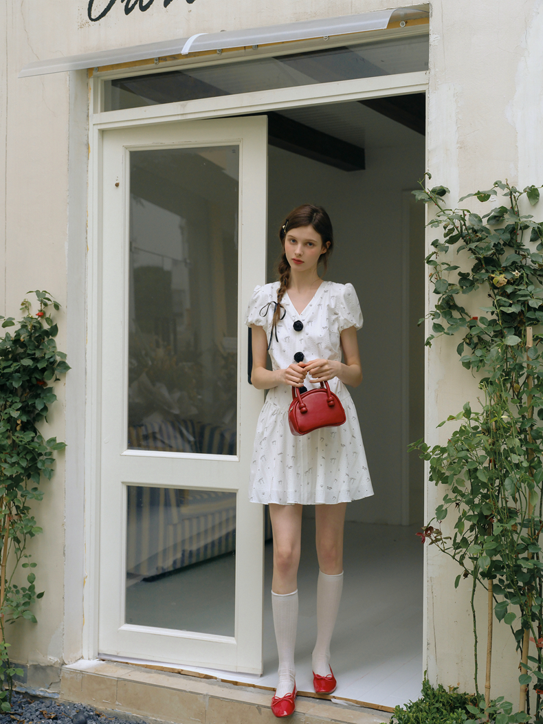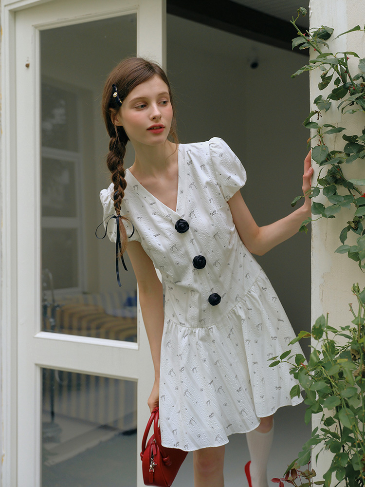 ISISLOVE V-Neck White Puff Sleeve Short Dress