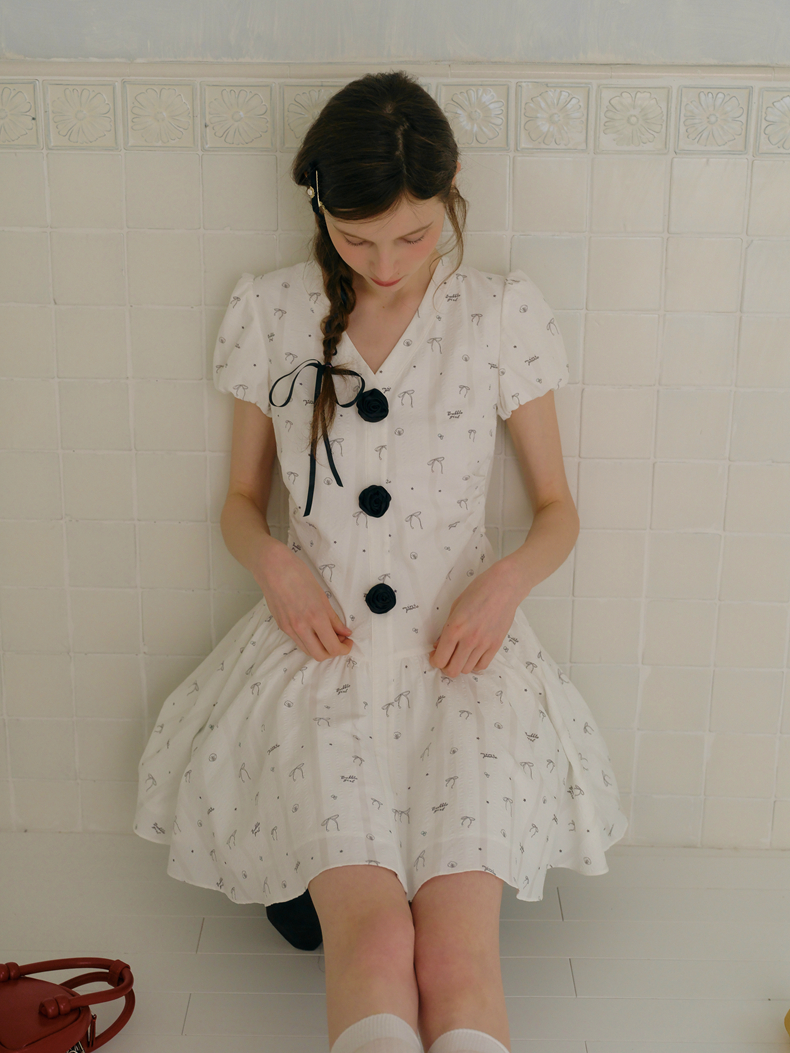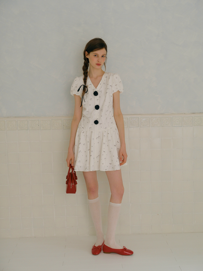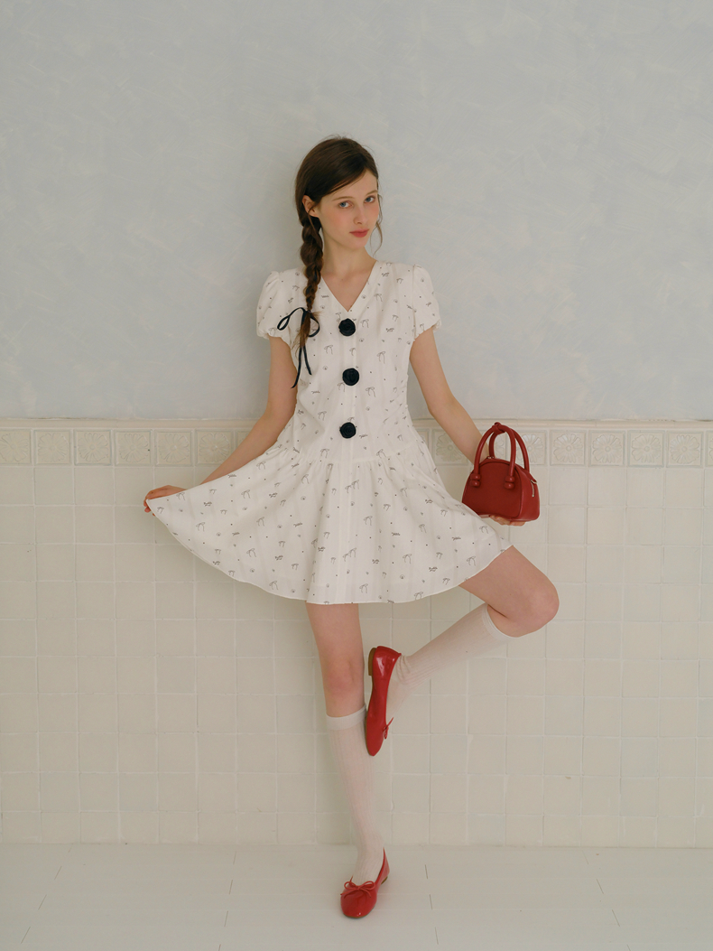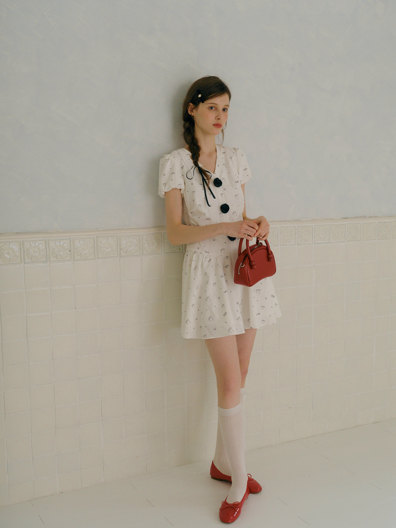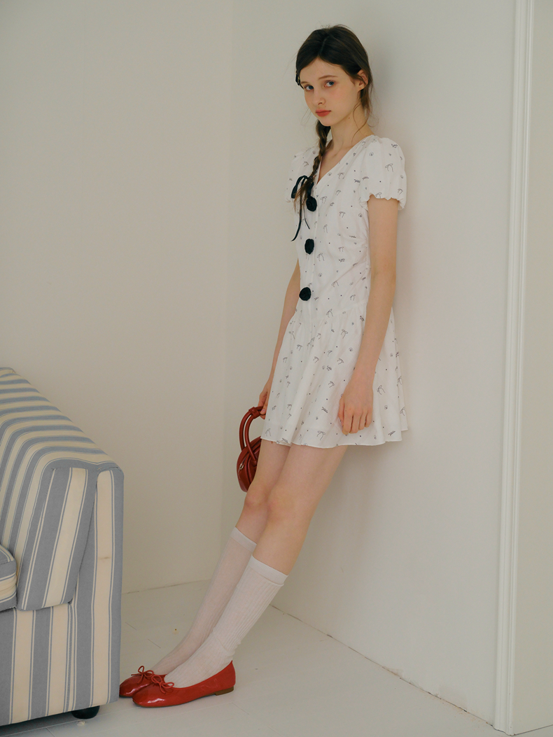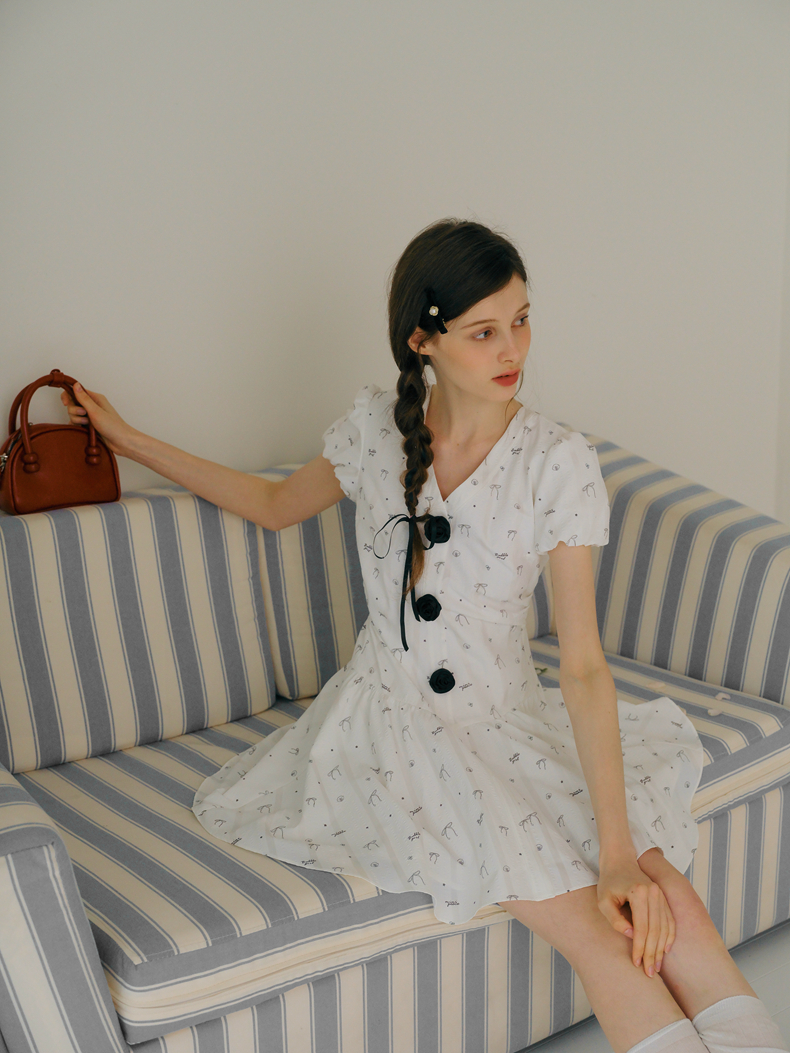 ISISLOVE V-Neck White Puff Sleeve Short Dress
