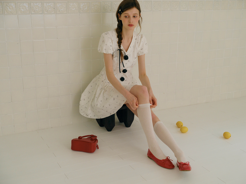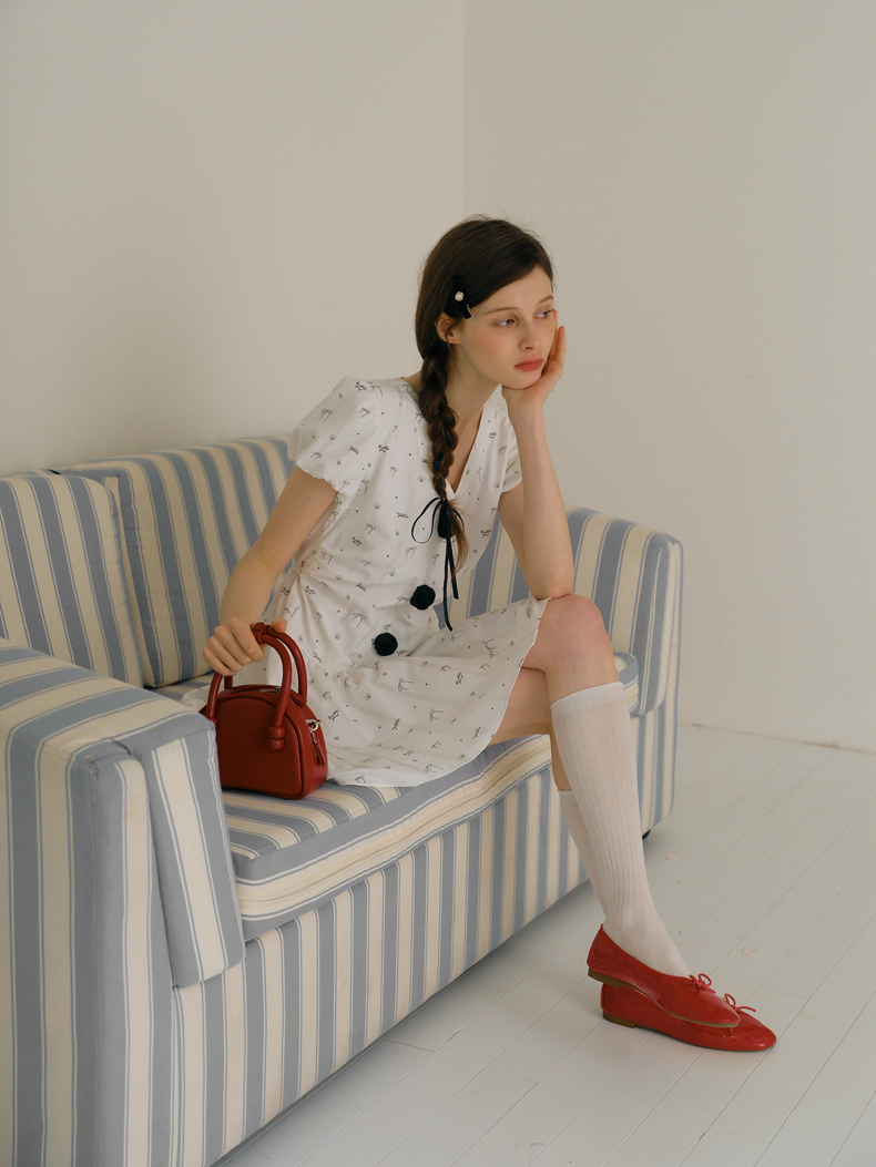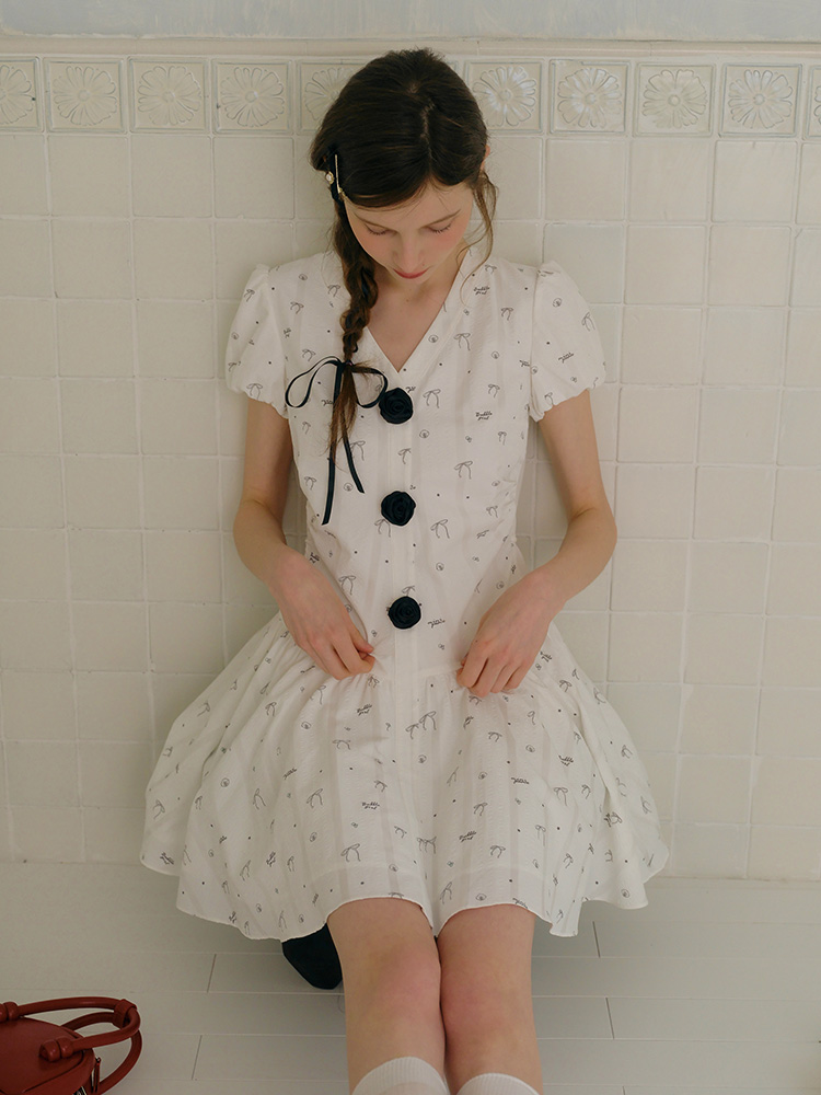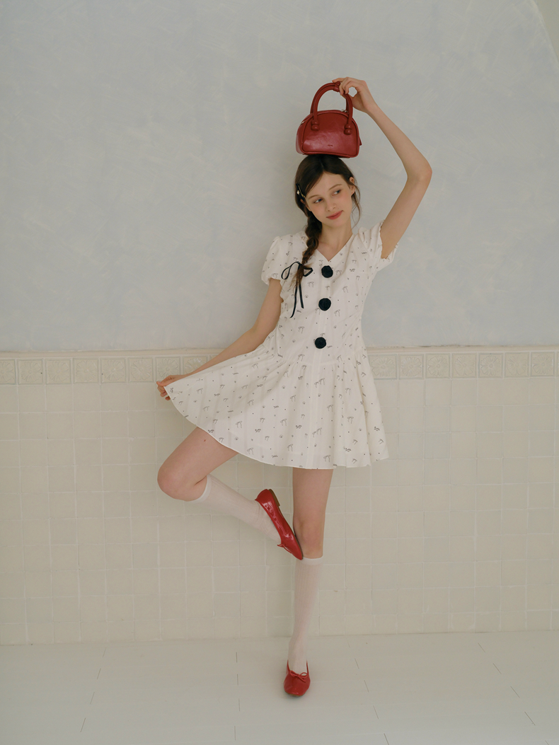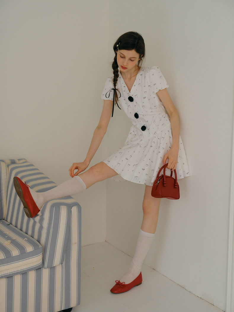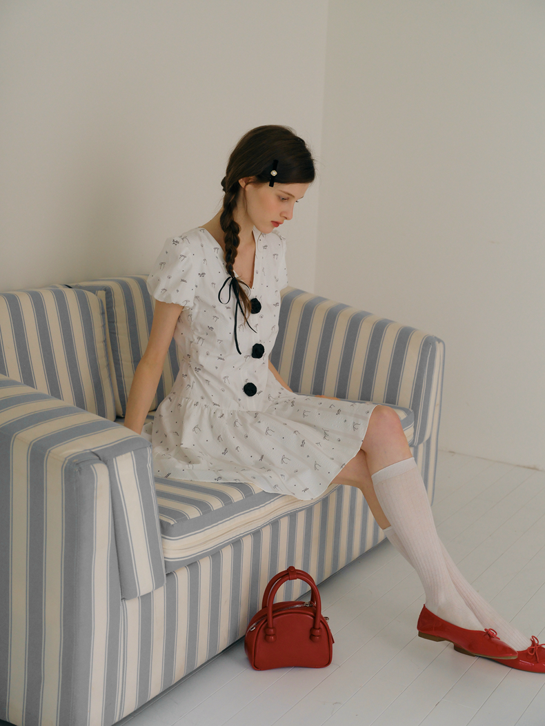 ISISLOVE V-Neck White Puff Sleeve Short Dress