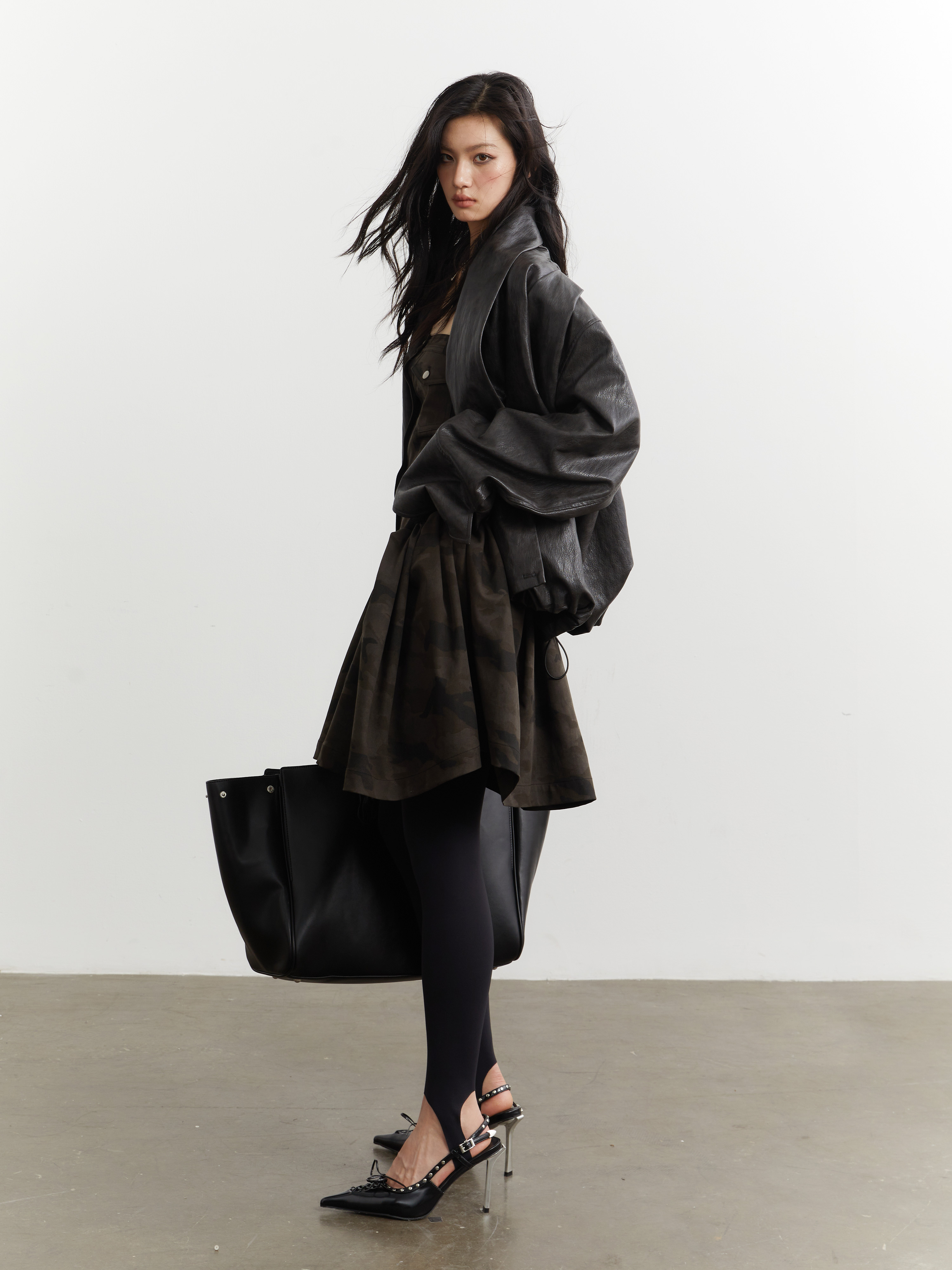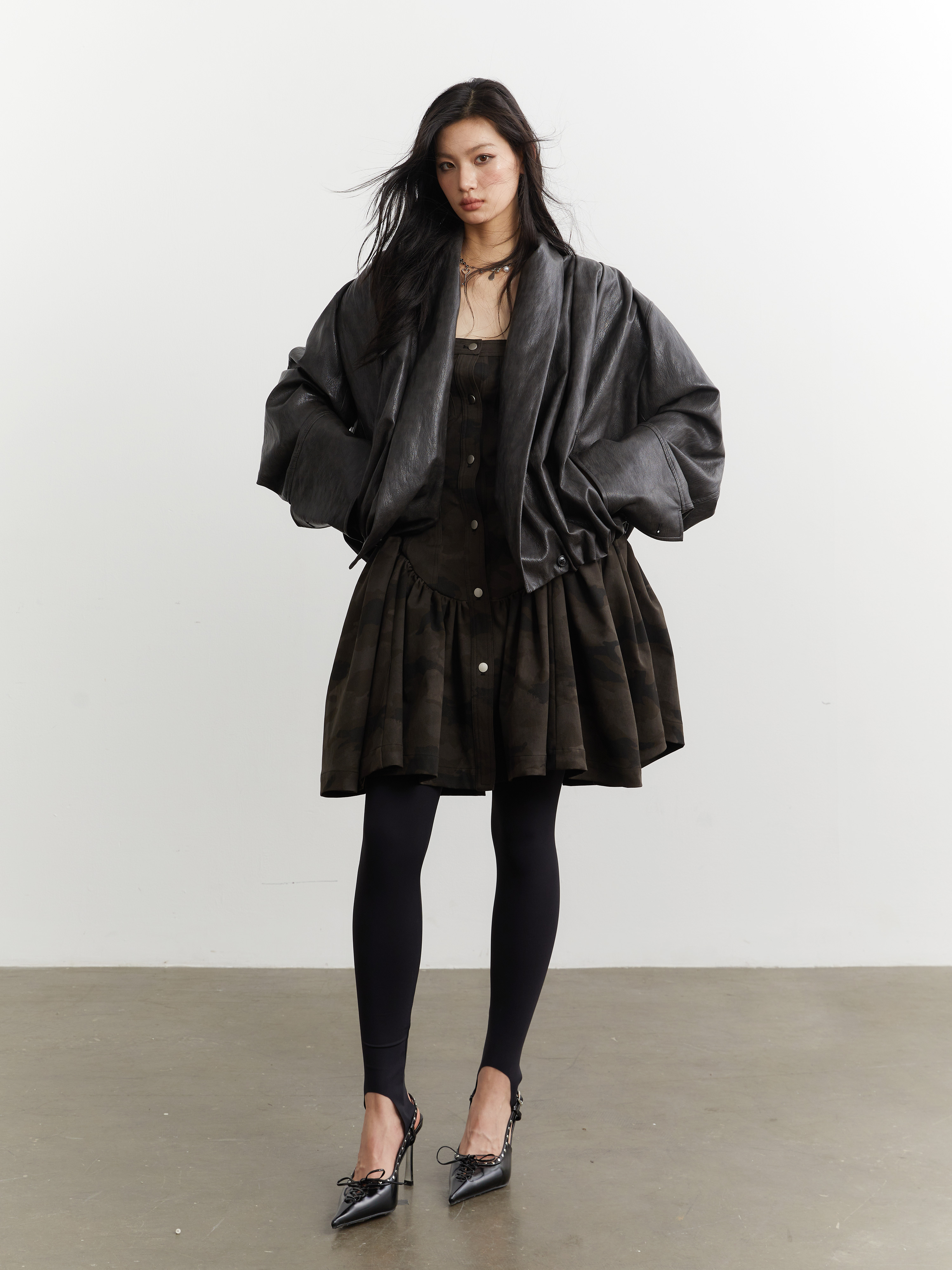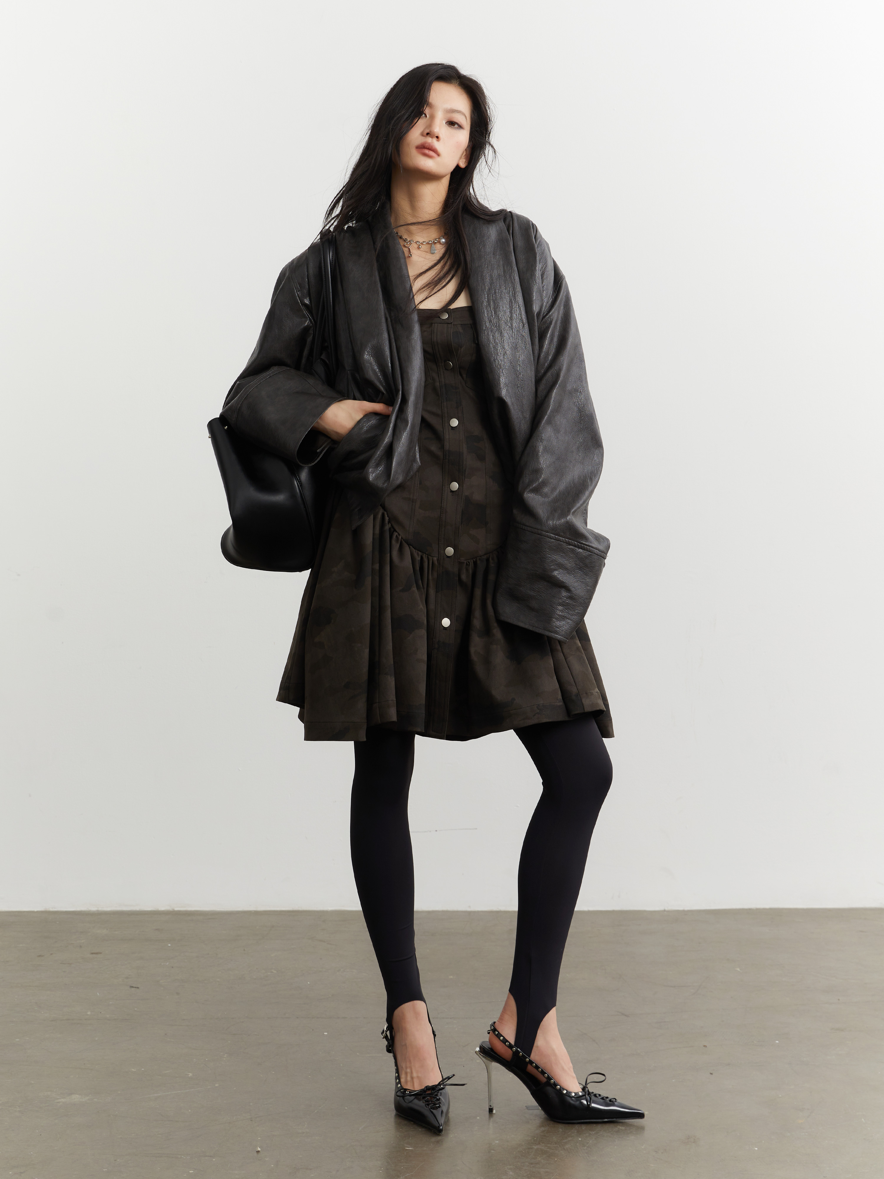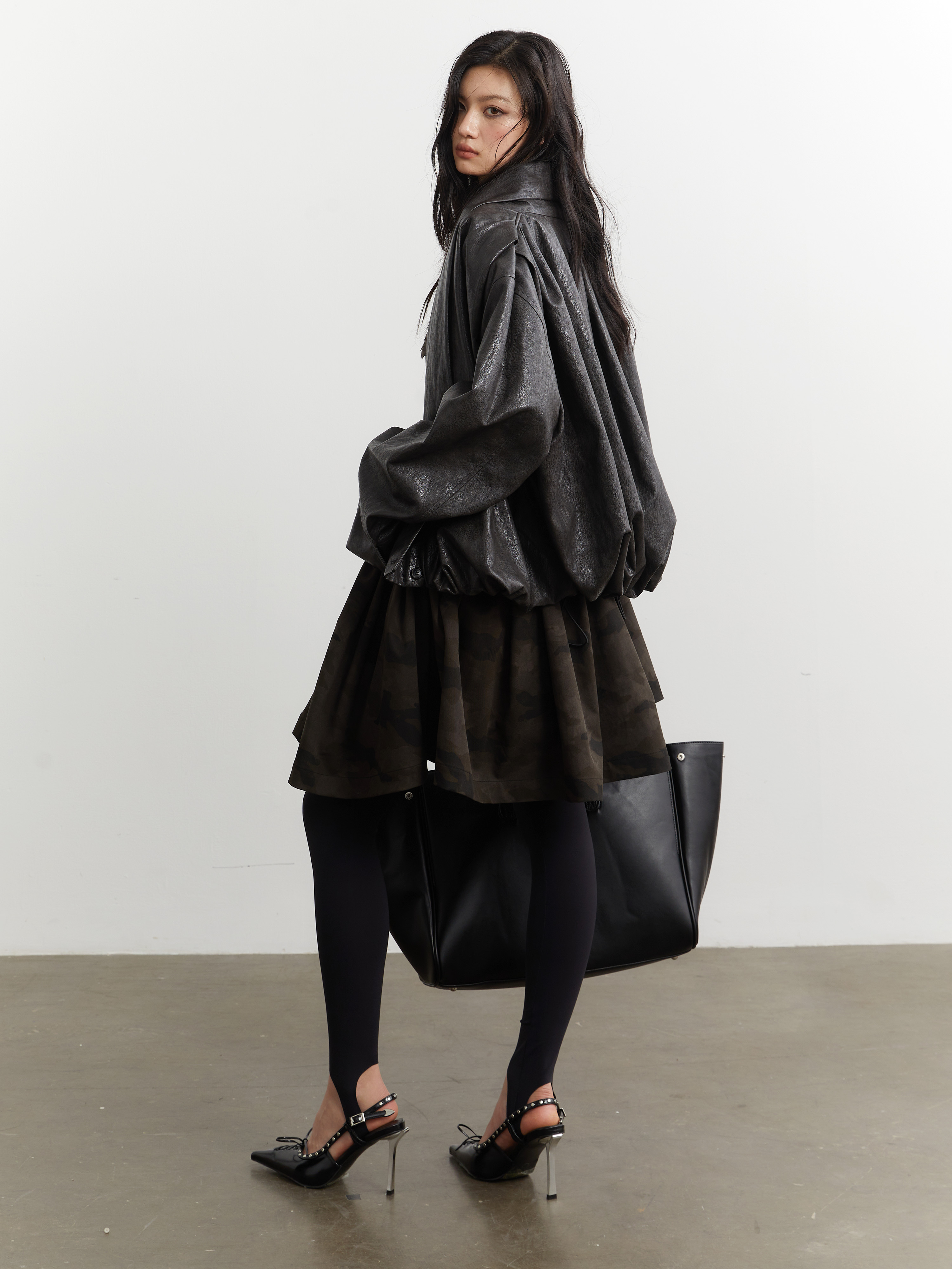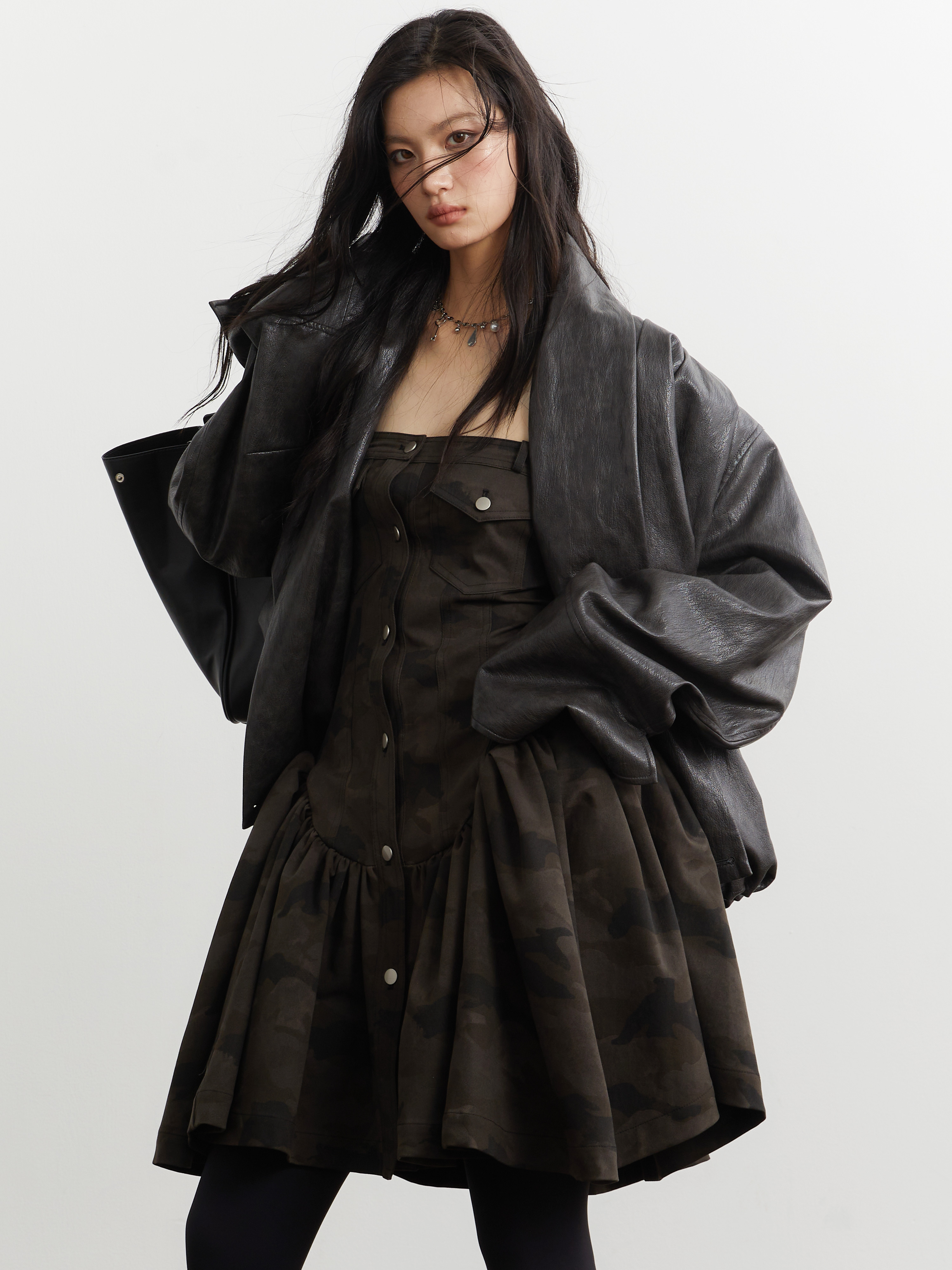 JNYLON Dark Brown PU leather Jacket