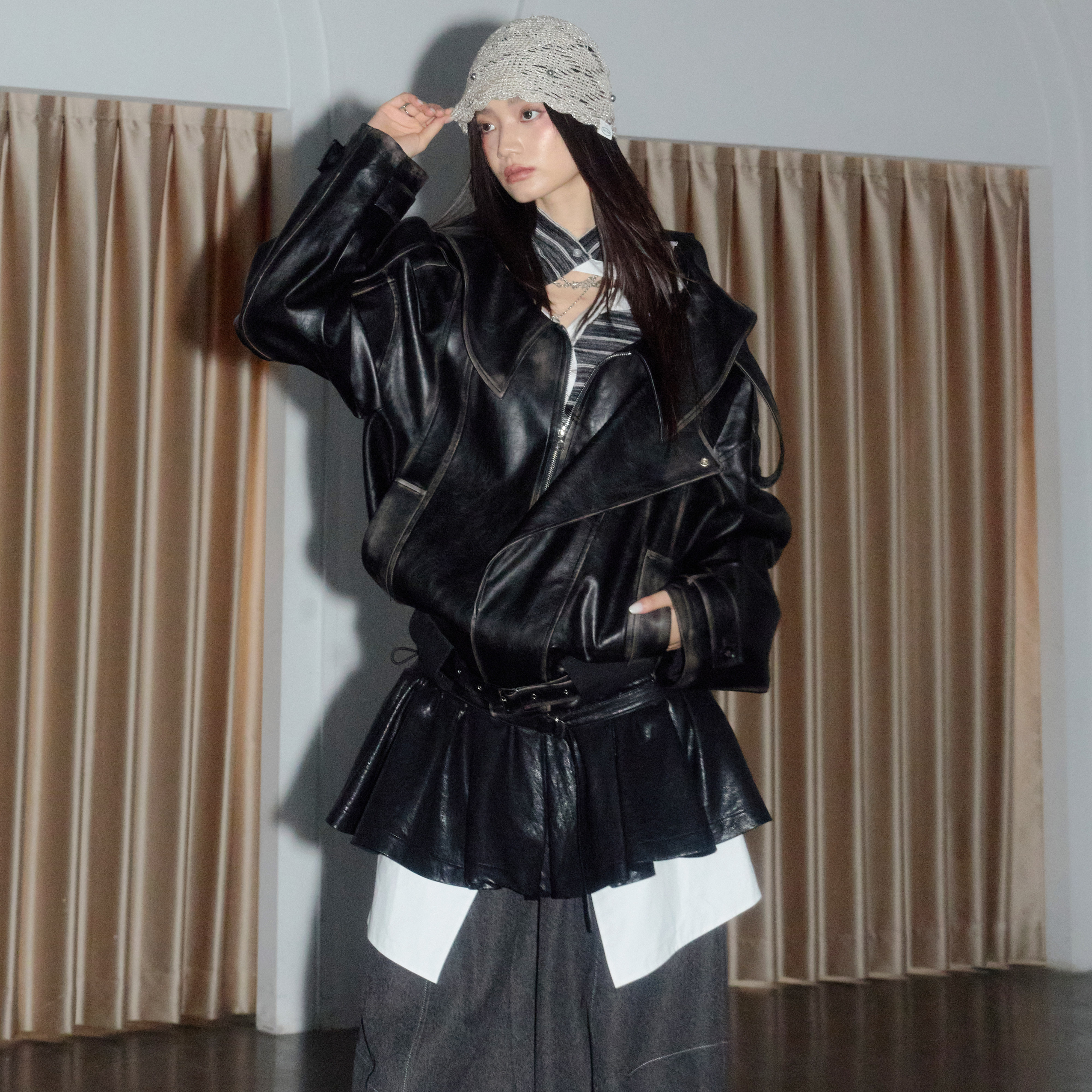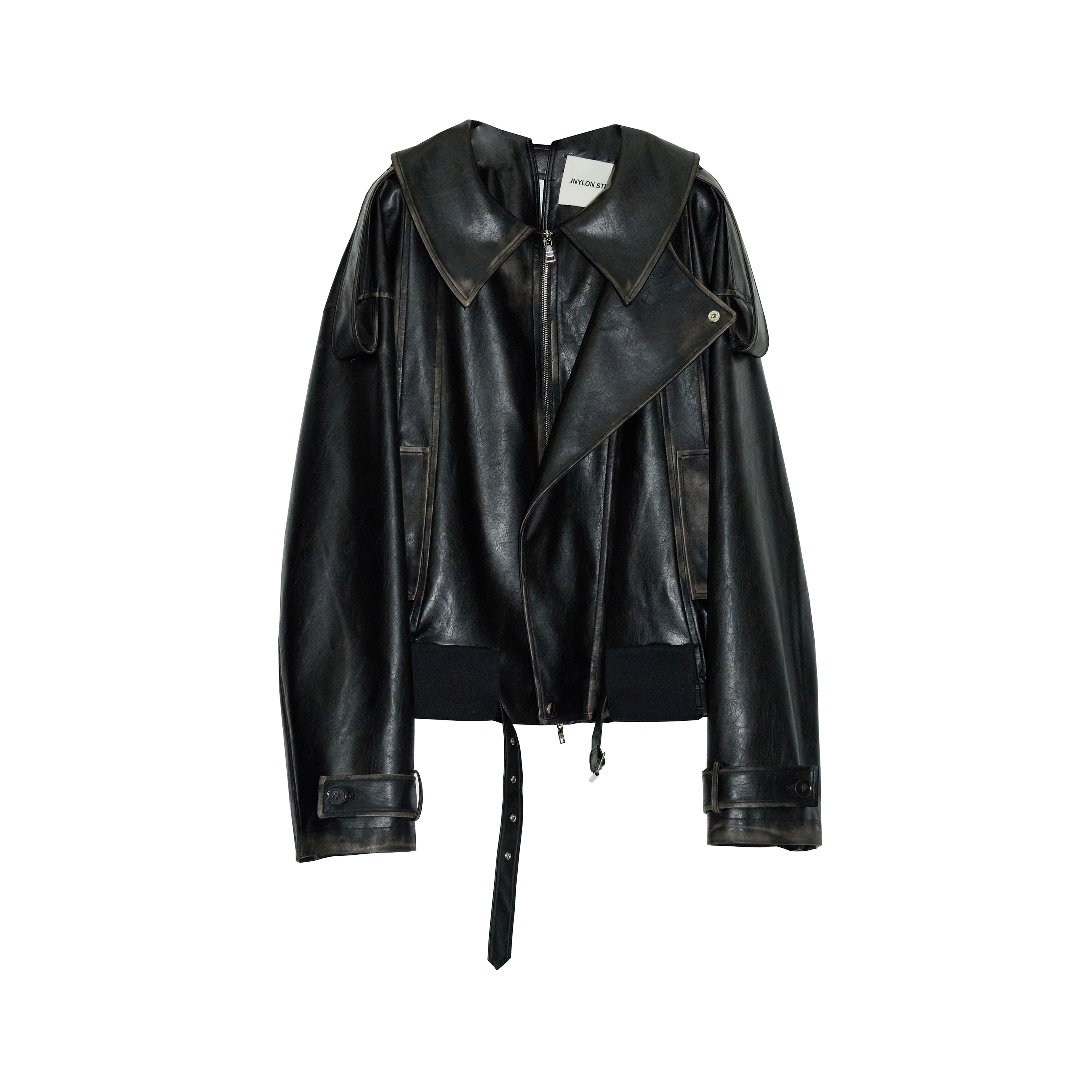 JNYLON Rock Style Black Leather Jacket