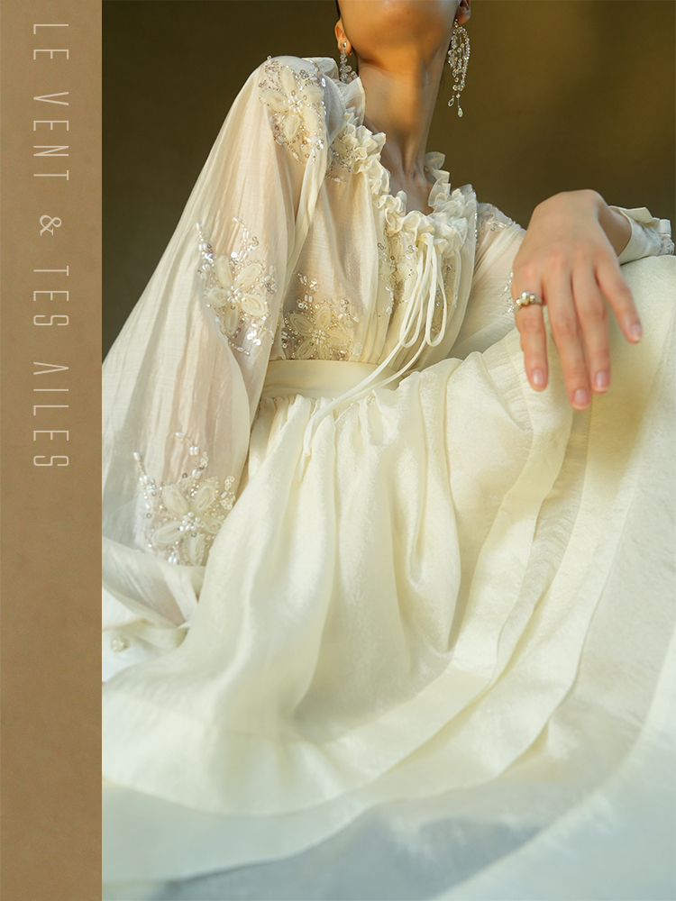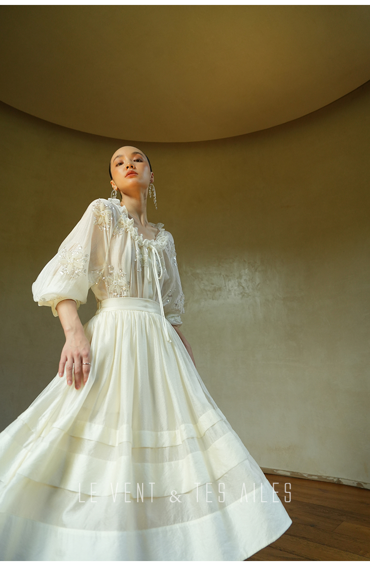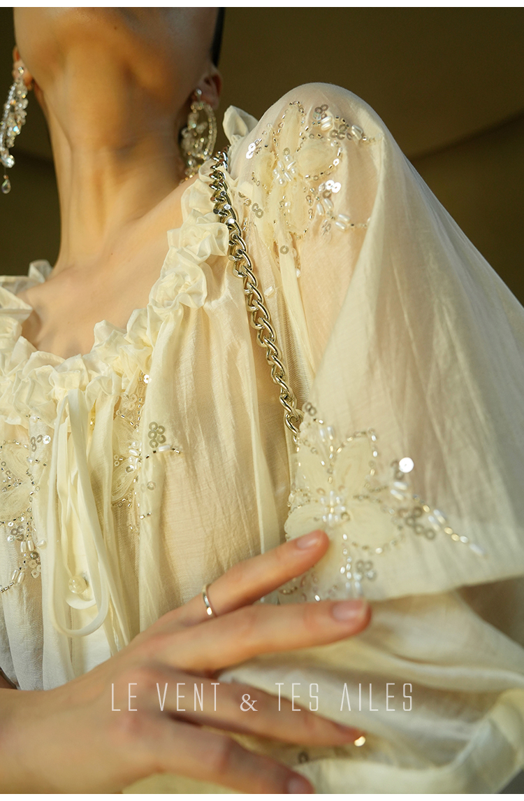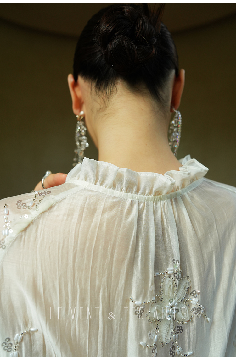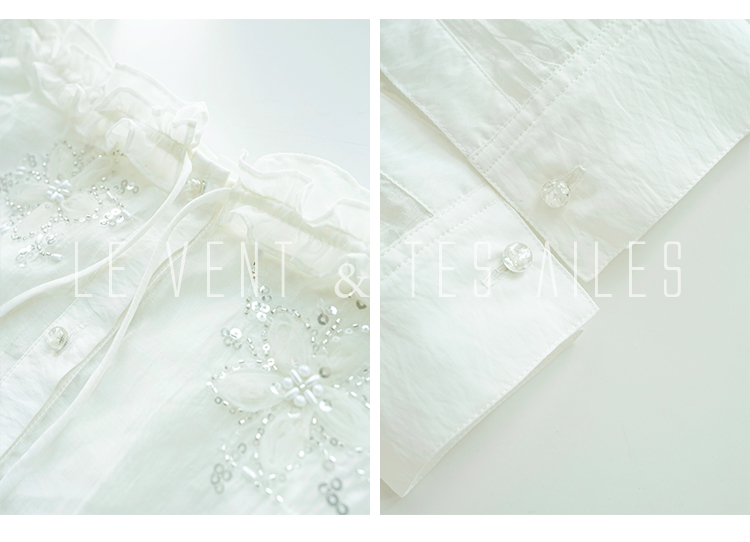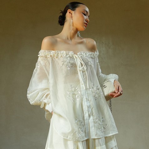 LE VENT& TES AILES White Off Shoulder Embroidered Shirt