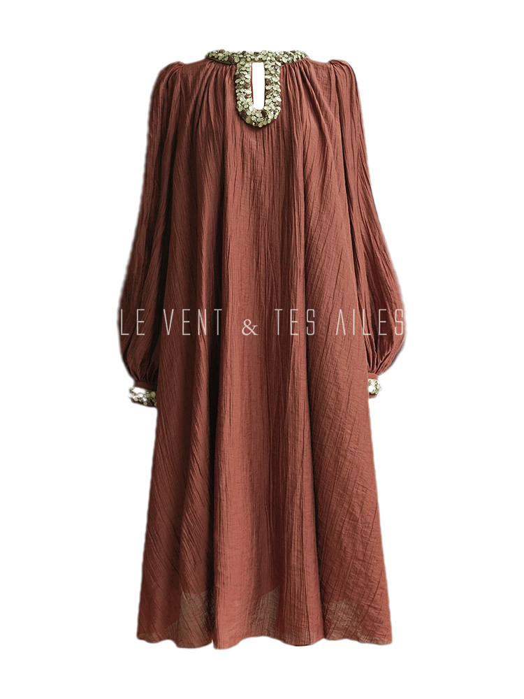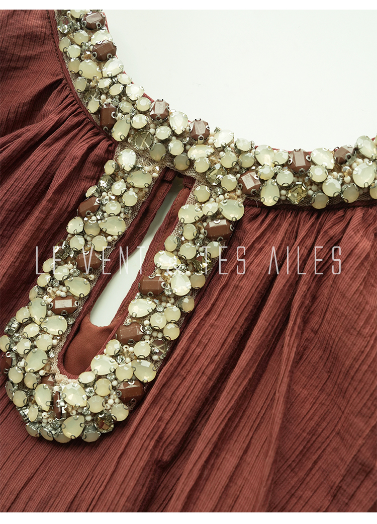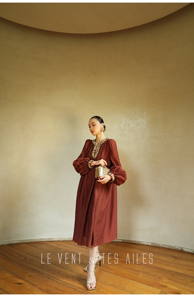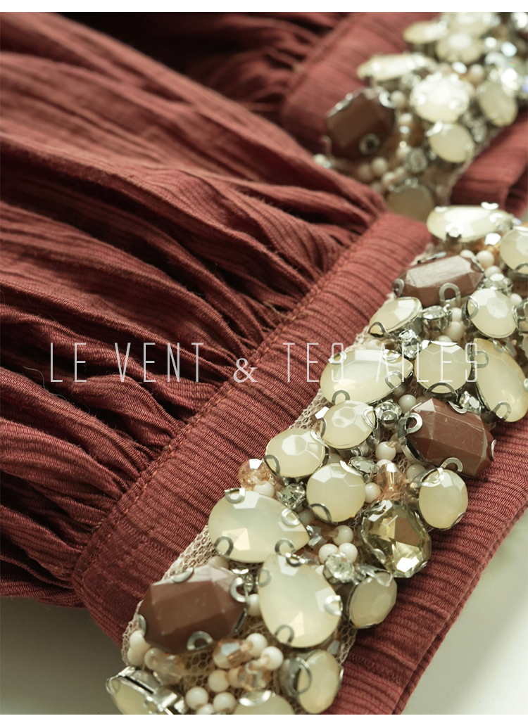 LE VENT&TES AILES Dark Red Elegant Beaded Long Dress