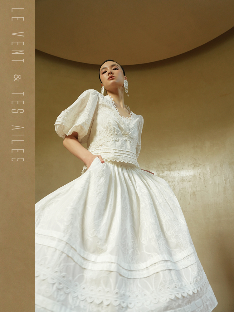LE VENT&TES AILES Embroidered Lace 2Piece Skirt Set