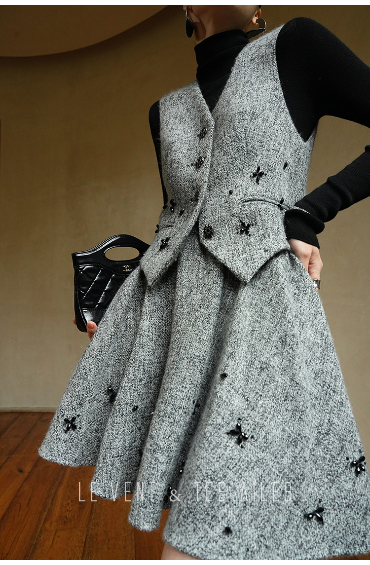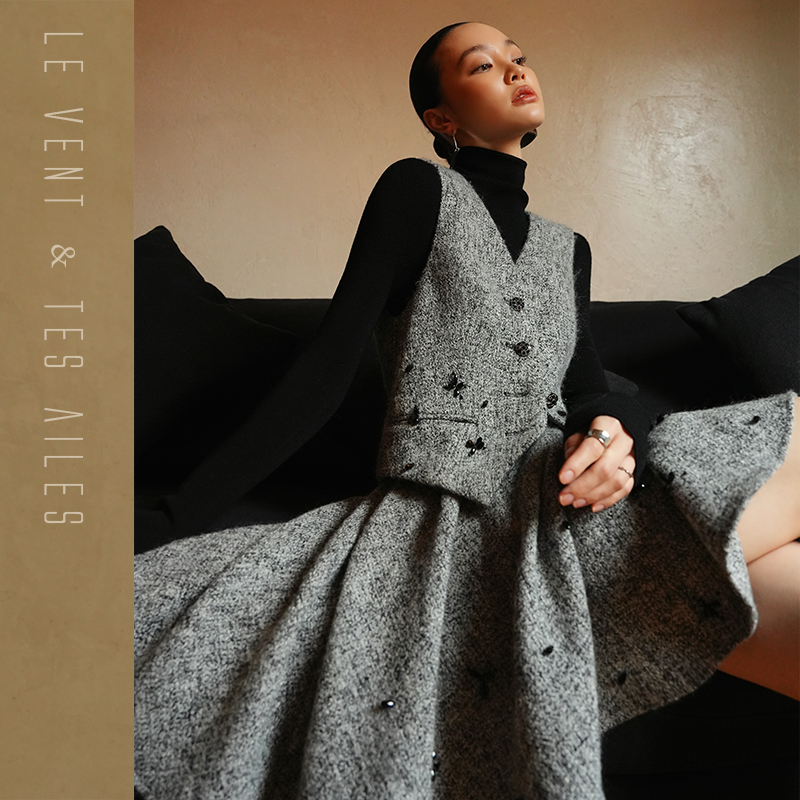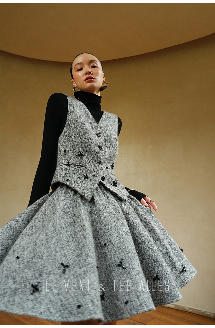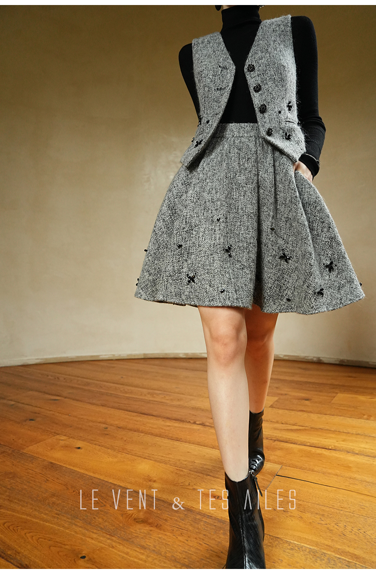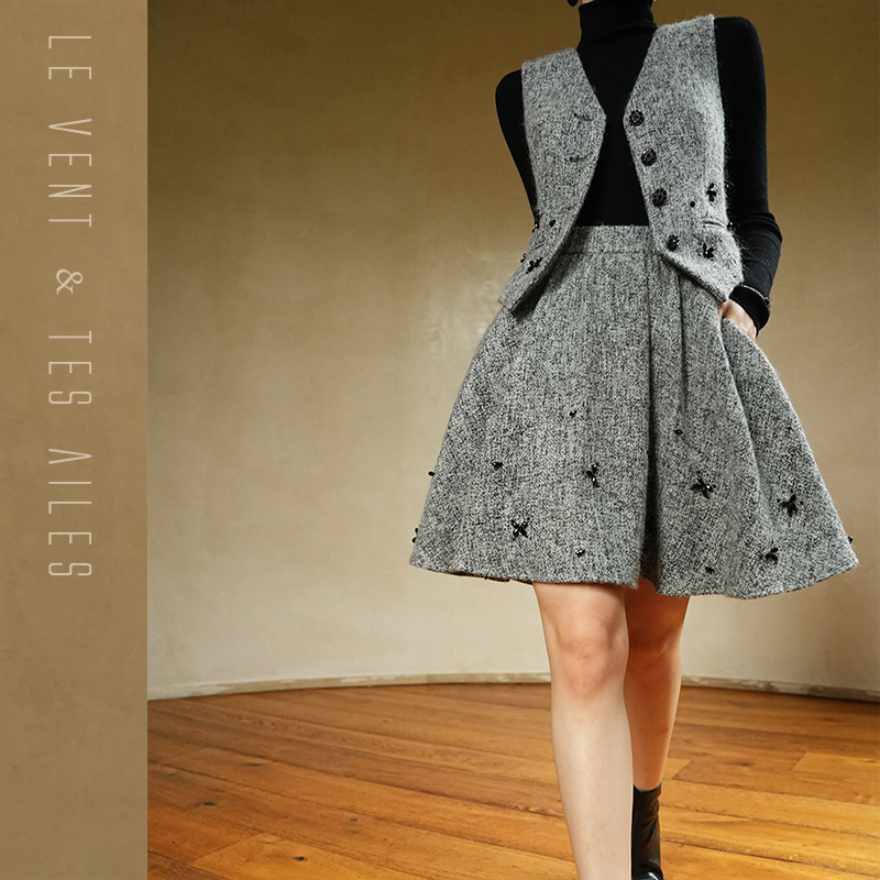 LE VENT&TES AILES Gray 2Piece Skirt Set