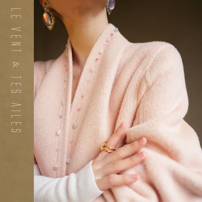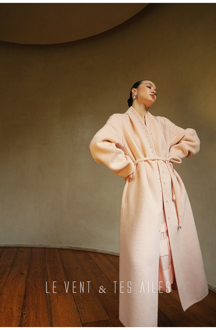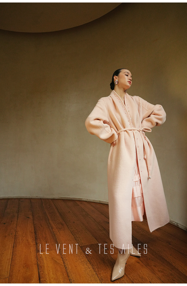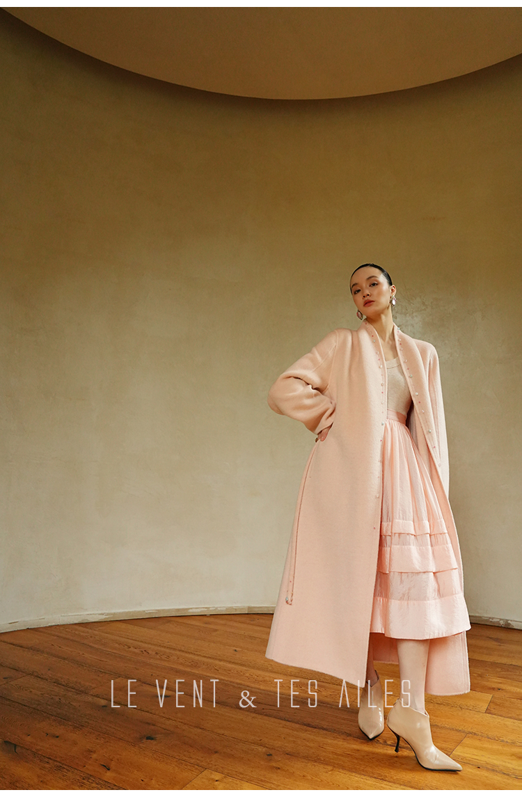 LE VENT&TES AILES Light Pink Woolen Long Coat