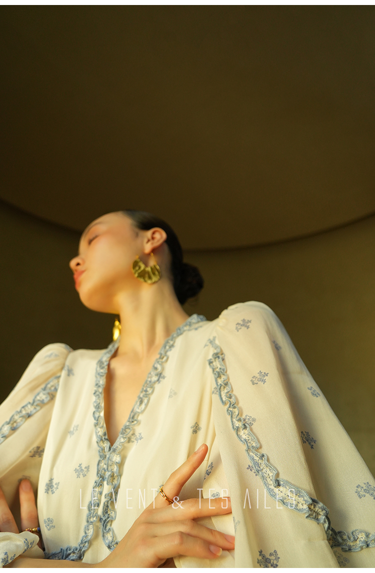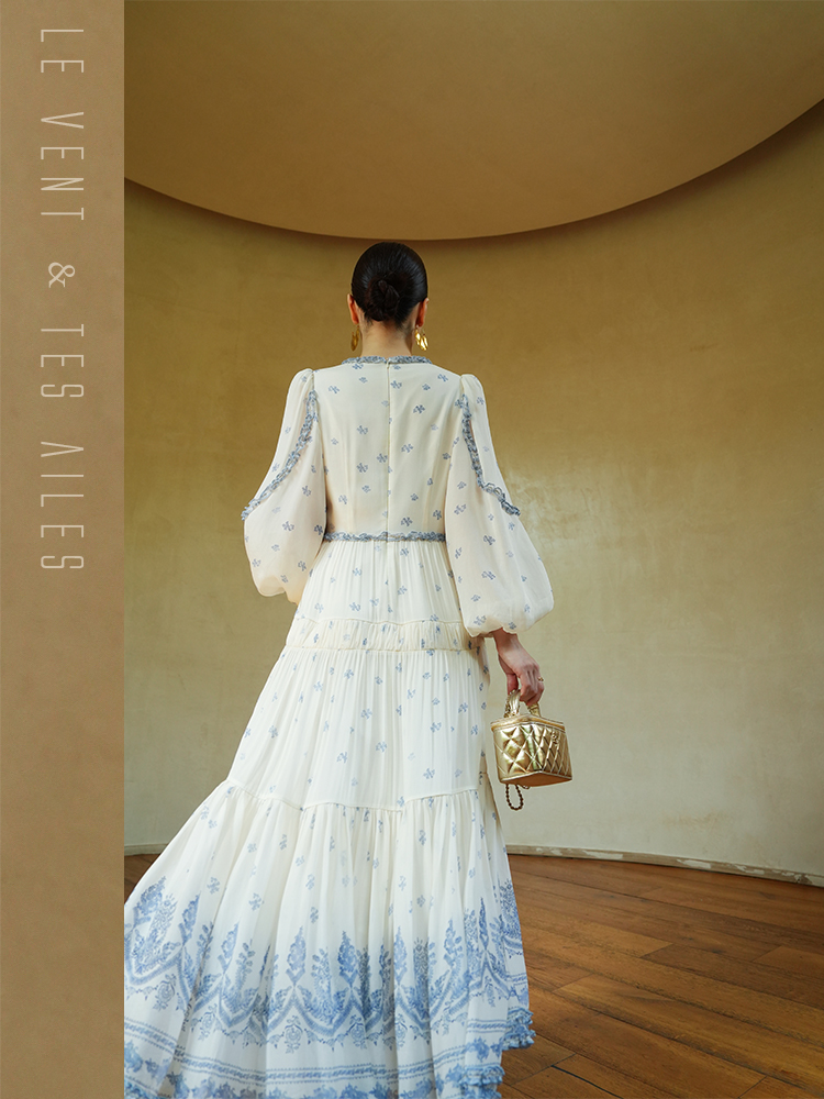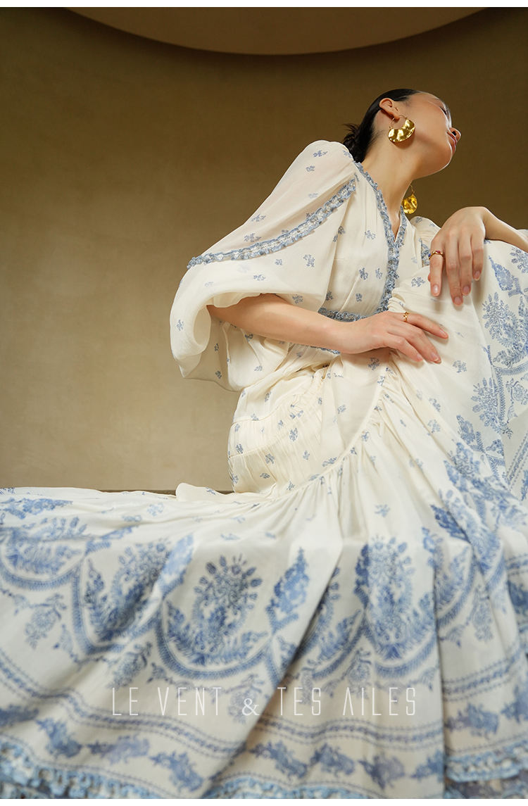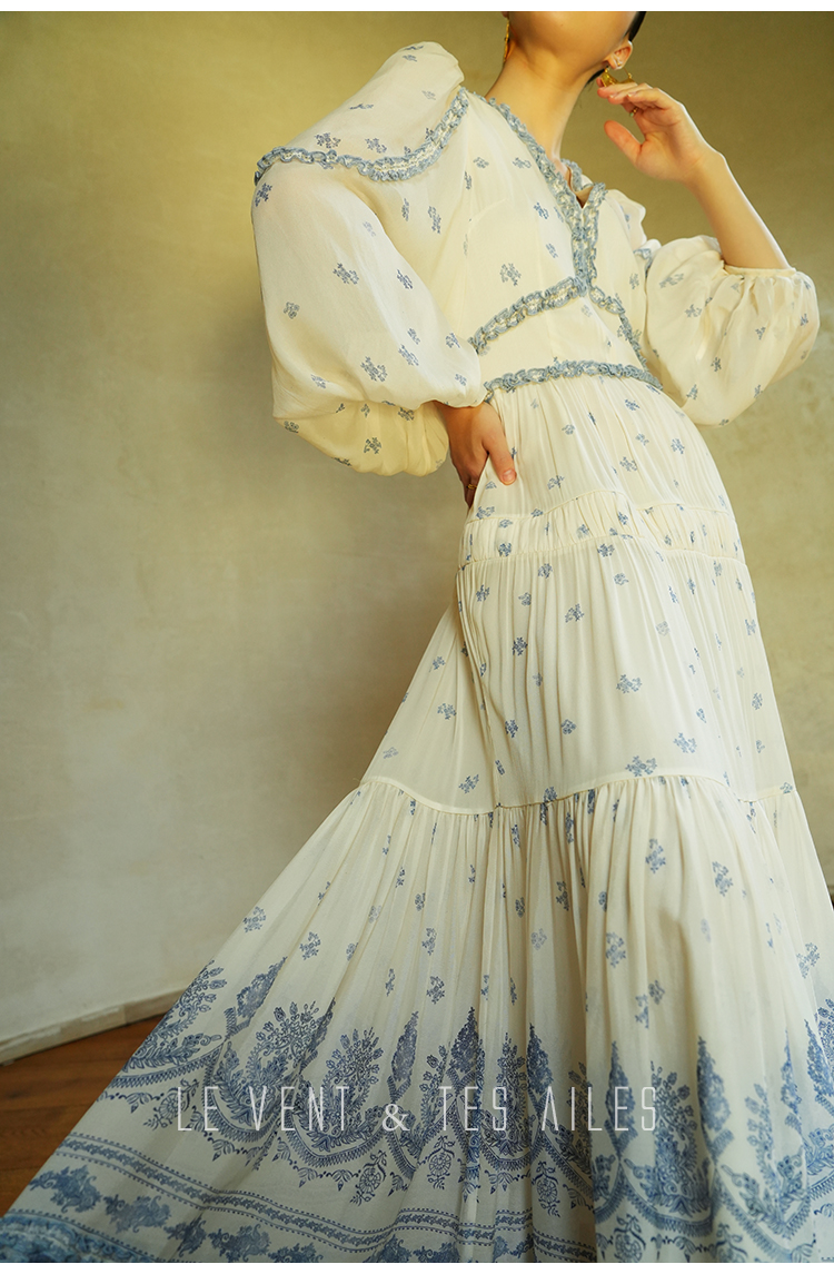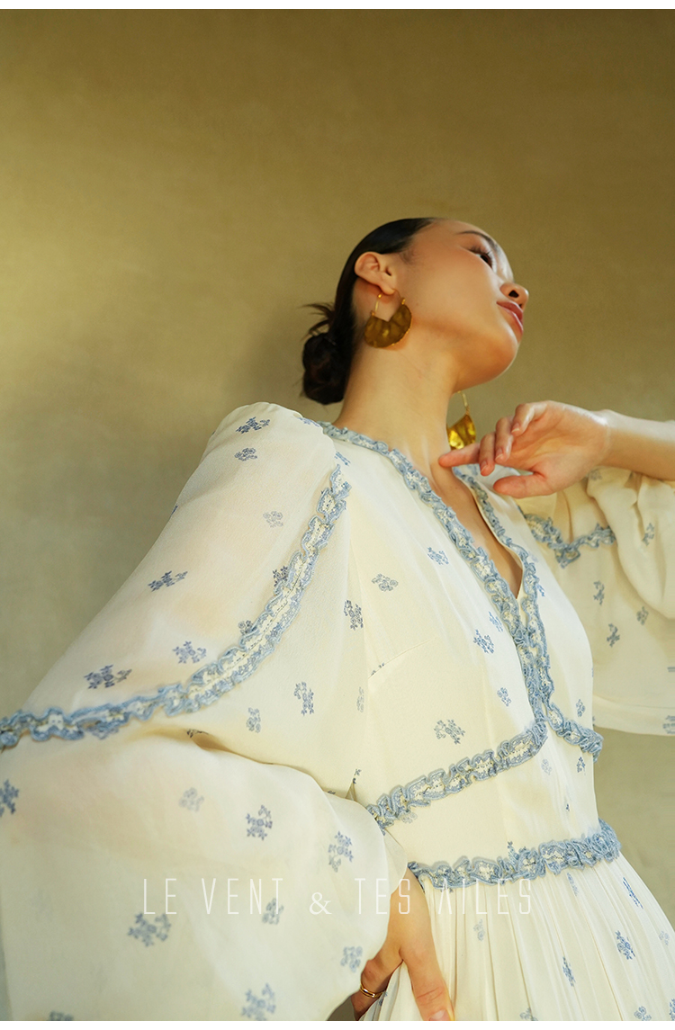 LE VENT&TES AILES V-Neck Embroidered Maxi Dress