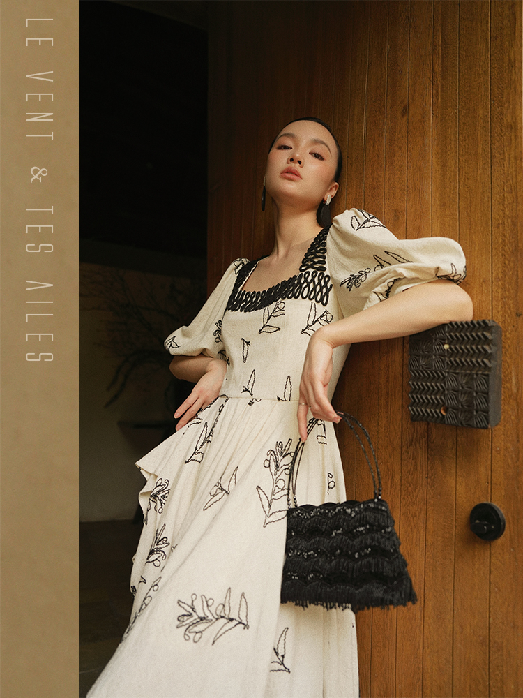 LE VENT&TES AILES White Square Neck Embroidered Dress