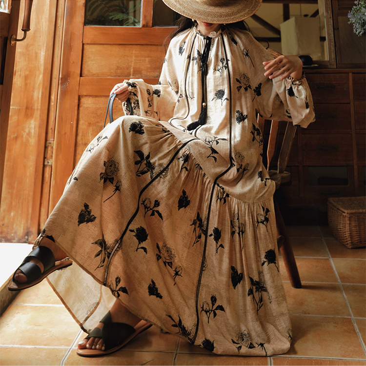 Mai Xu V-Neck Bohemian Long Dress