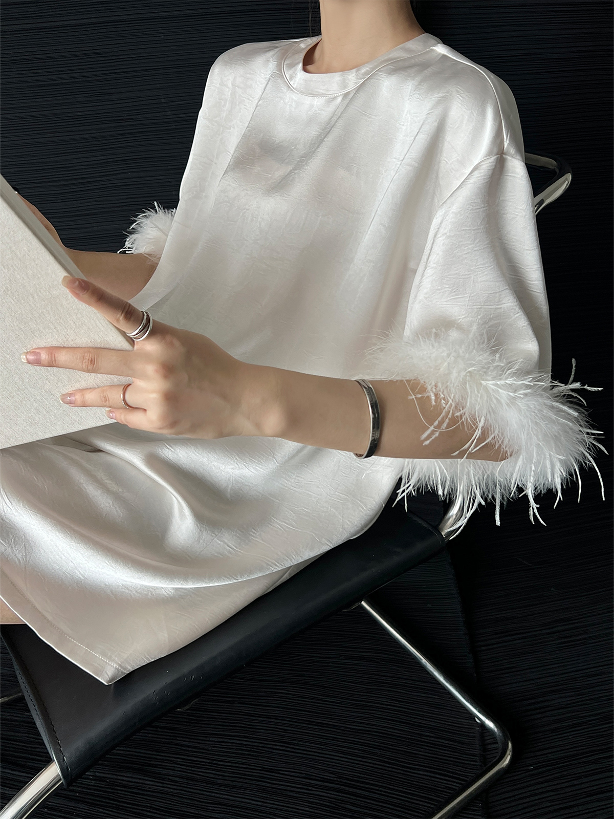 PAPERLLL Black/White Feather Sleeves T-Shirt