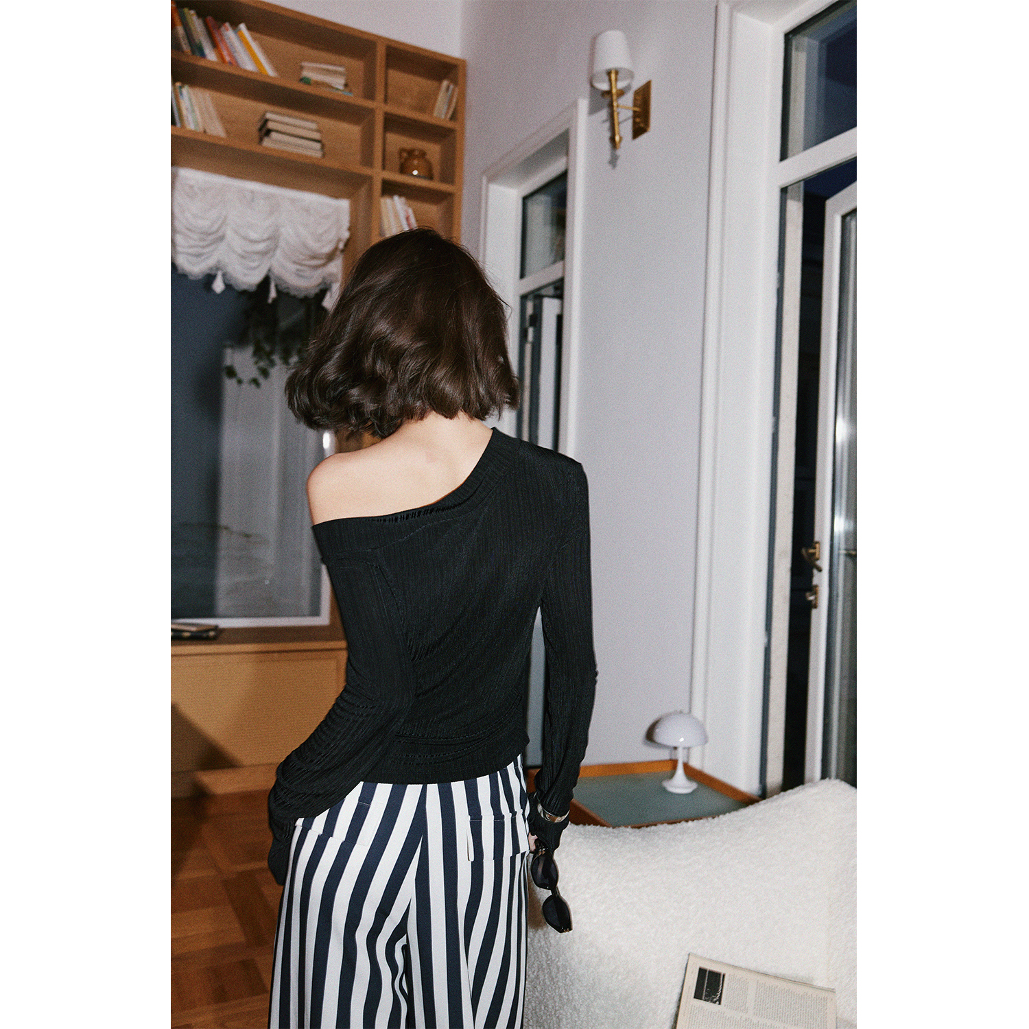 Rosebanks Black Off Shoulder Long Sleeve Tee