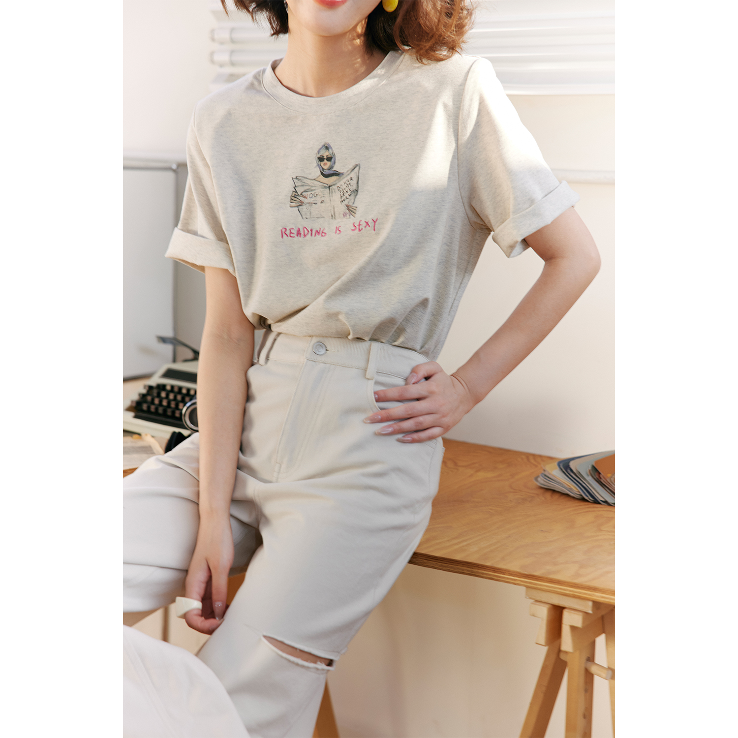 Rosebanks Gray Embroidered T-Shirt