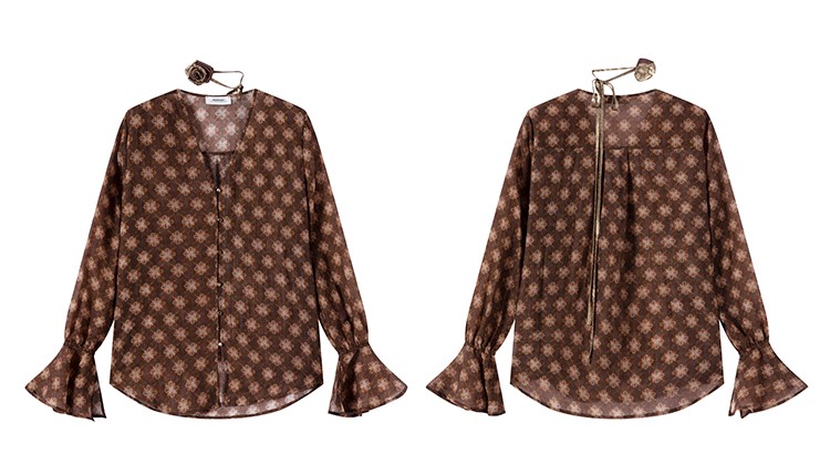 Rosebanks V-Neck Floral Brown Shirt