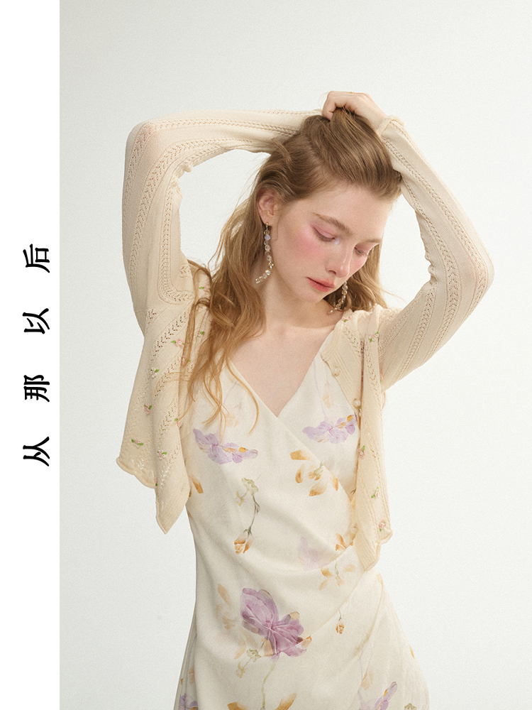 ST Beige Floral Knitted Cardigan
